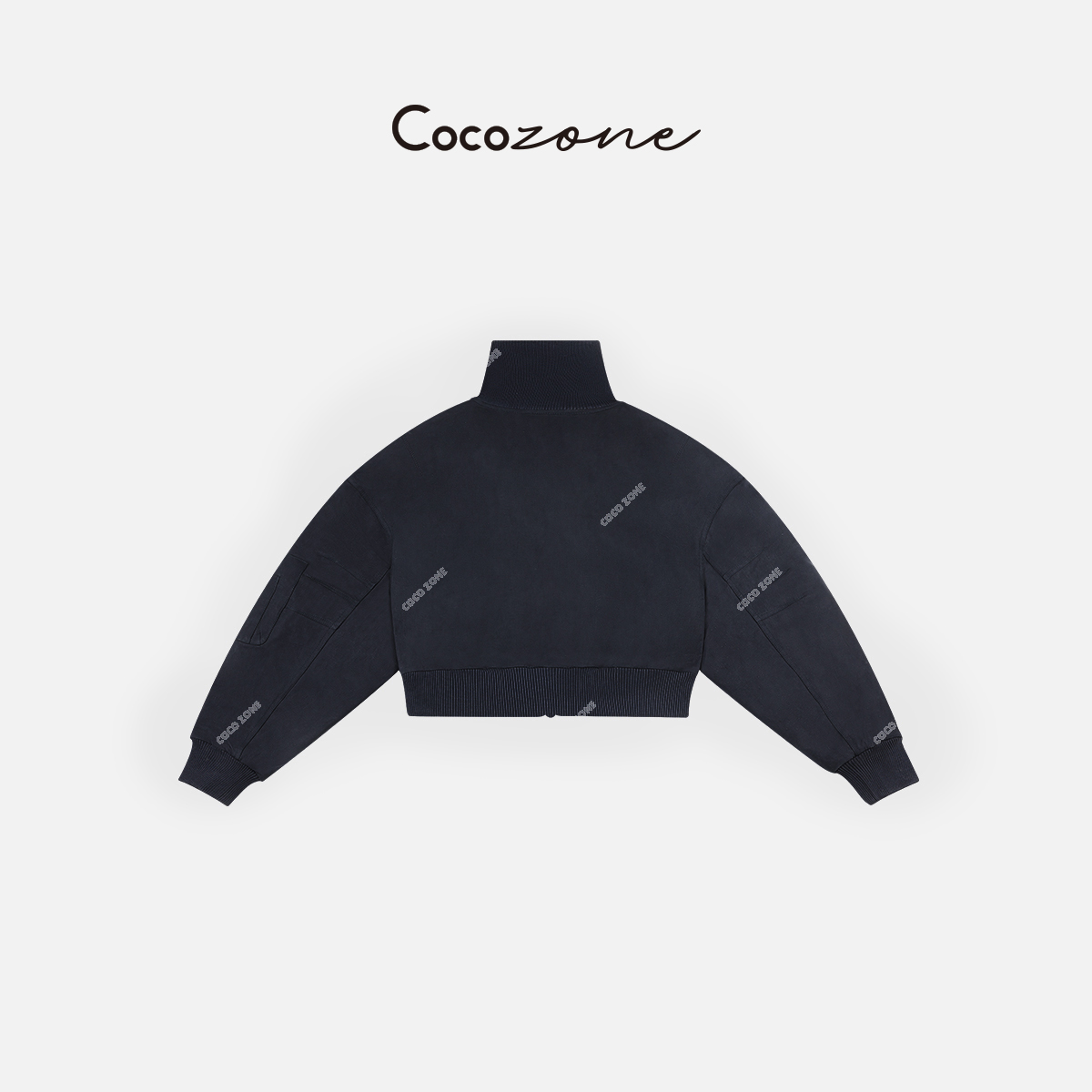 COCO ZONE美式复古飞行员夹克翻领拉链开衫短外套23C30318