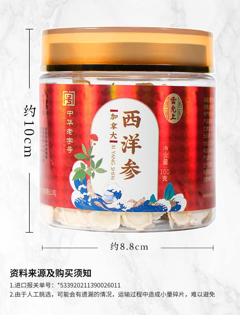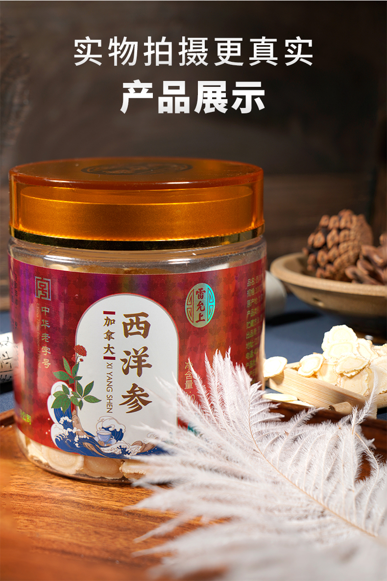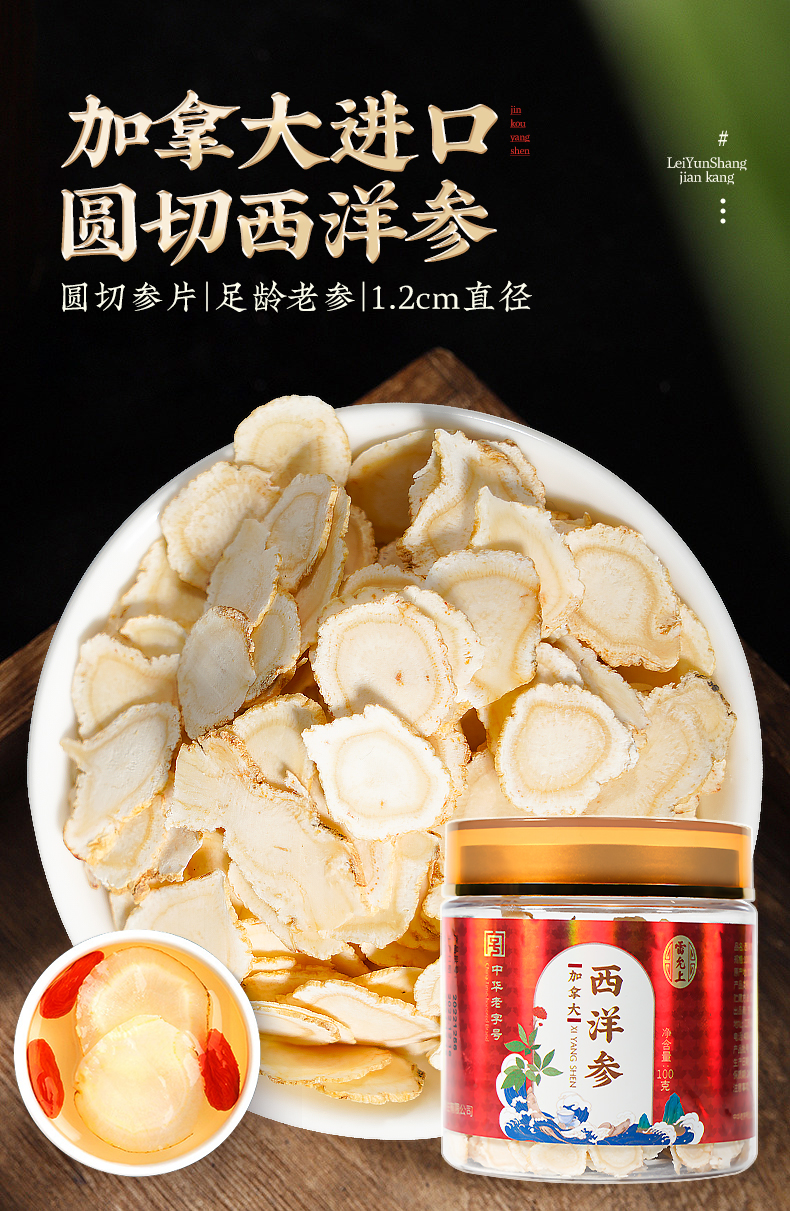 雷允上加拿大西洋参片100g/瓶(1.2-1.4cm)