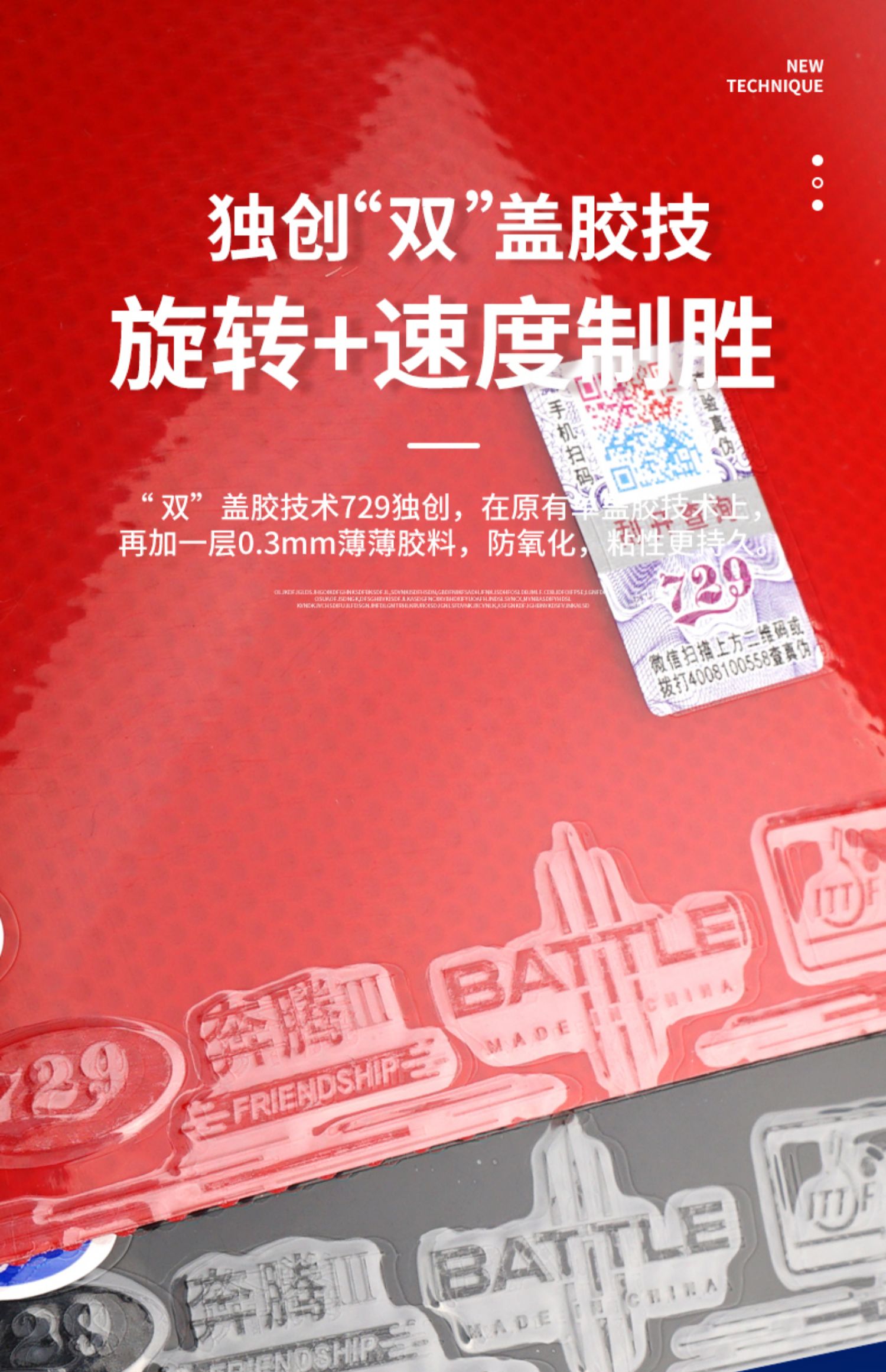 友谊729 奔腾3省队乒乓球拍胶皮奔腾III