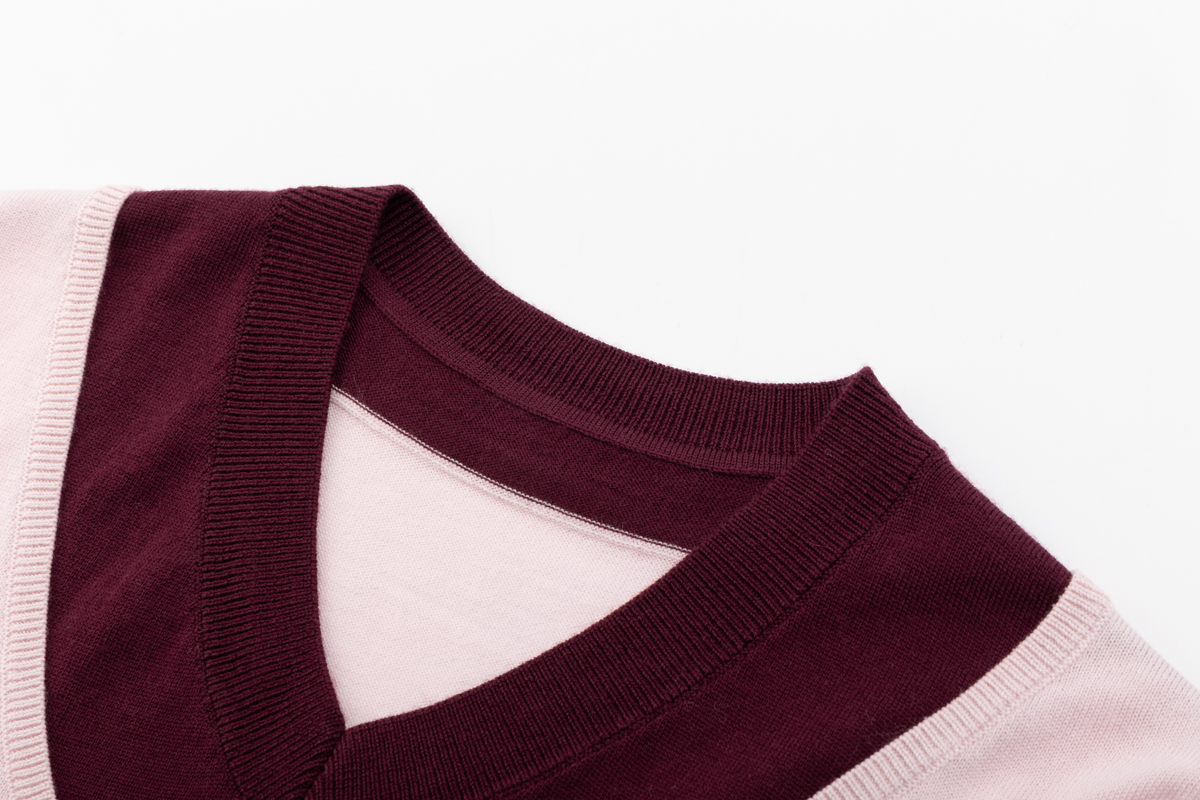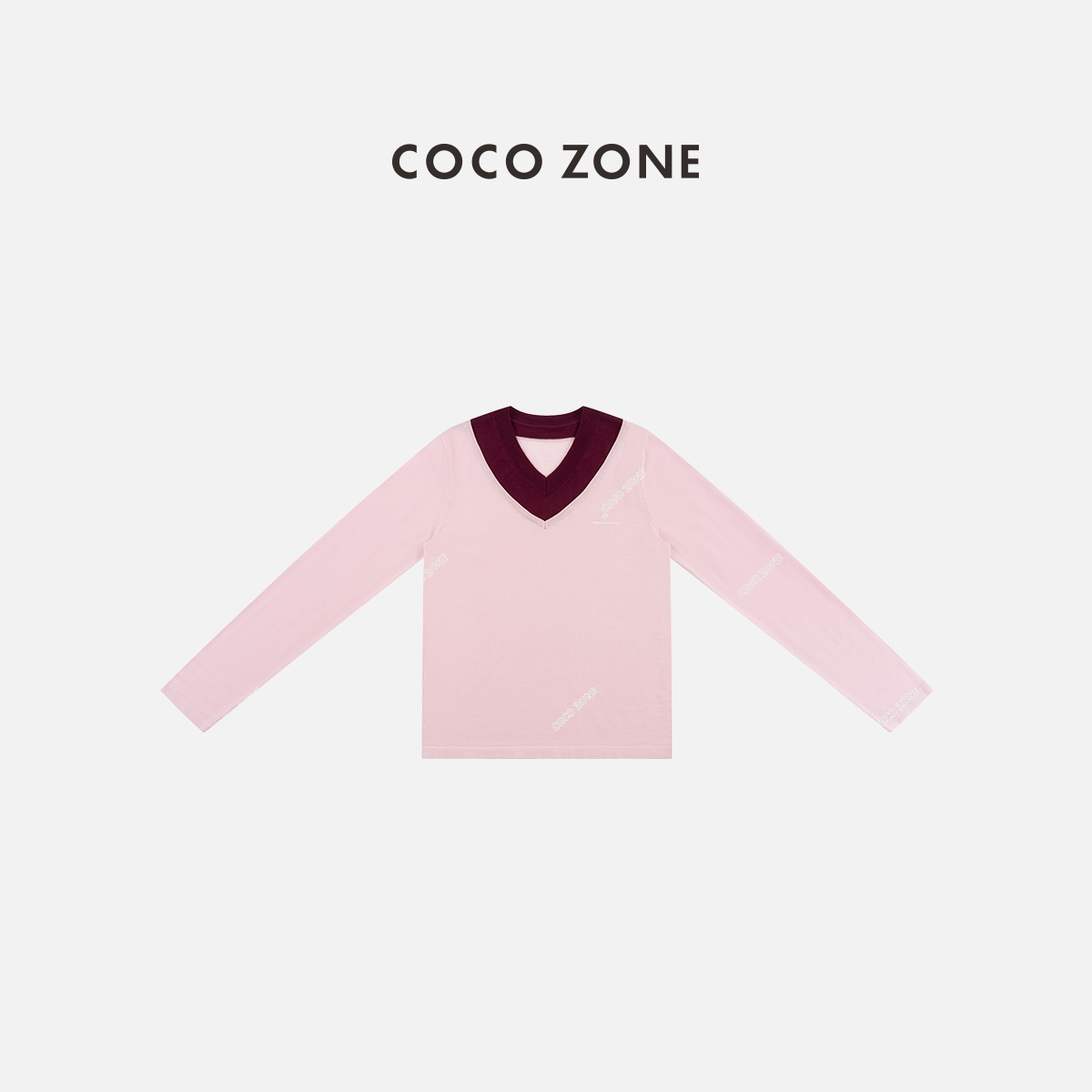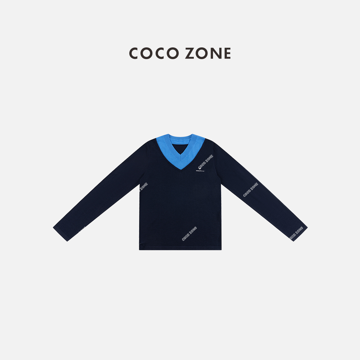 COCO ZONE 设计感假两件撞色V领字母长袖针织衫CD1A0028