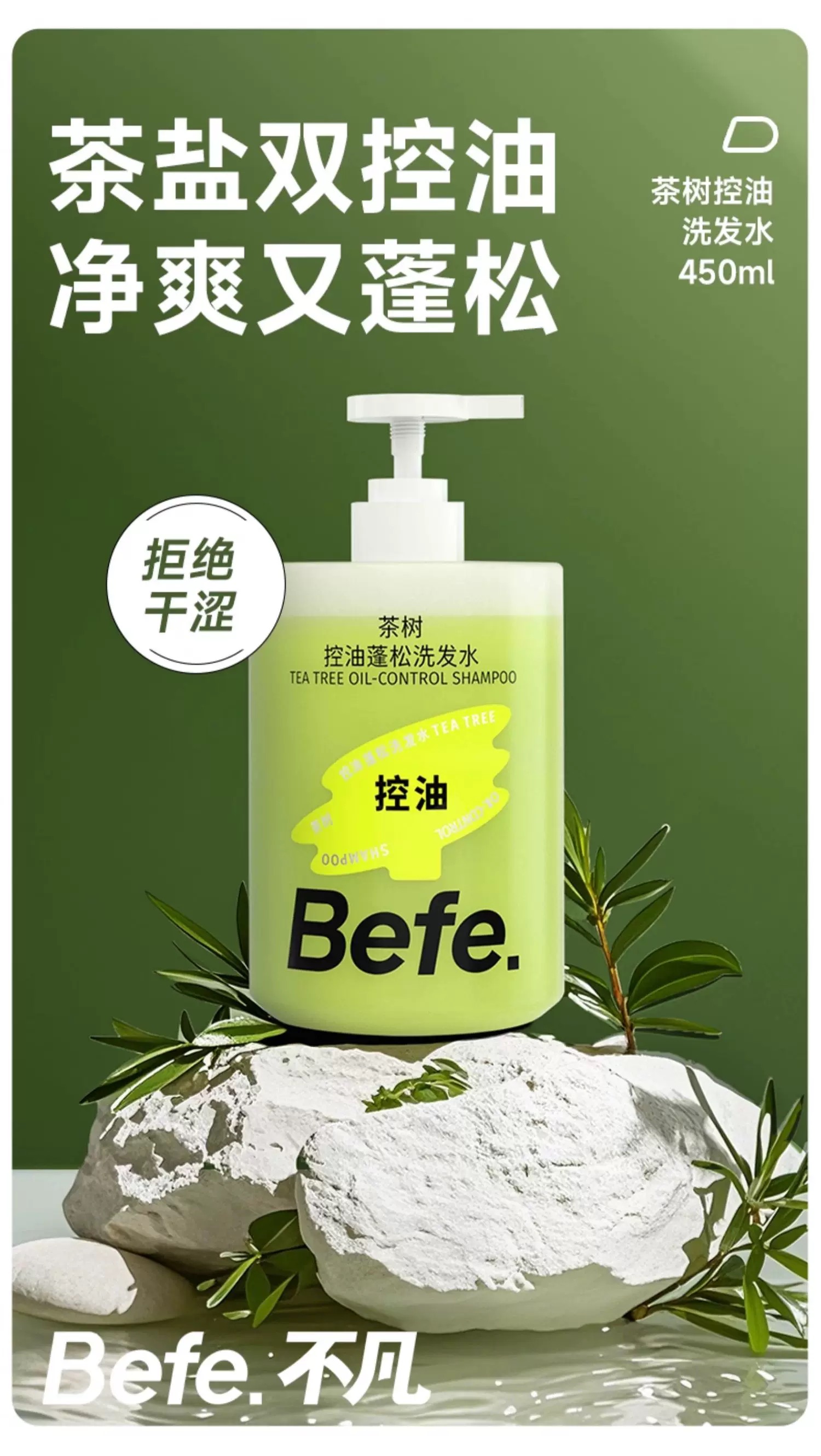 Befe茶树控油蓬松洗发水450mL【宝库优选】