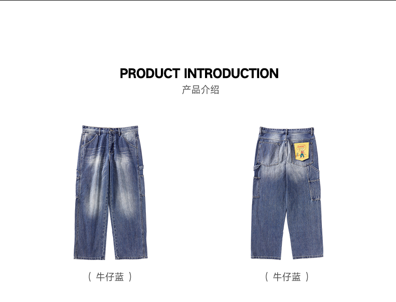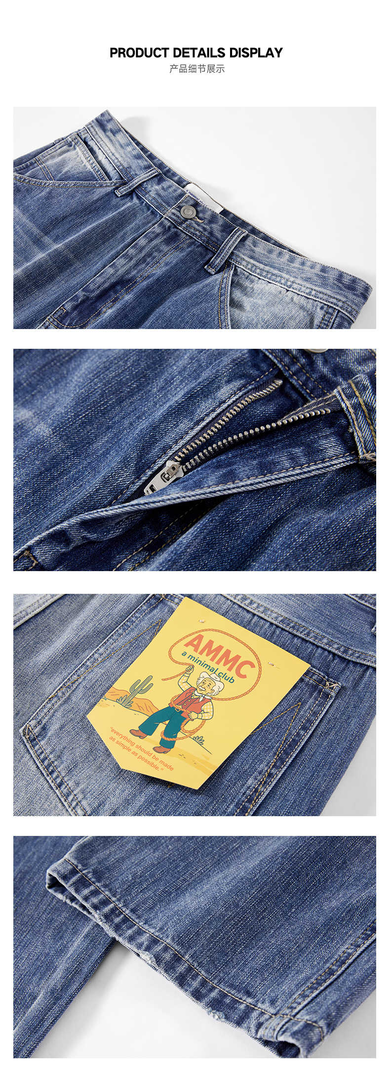 a minimal club复古重水洗工装牛仔裤大口袋可拆卡通纸AM59DT08