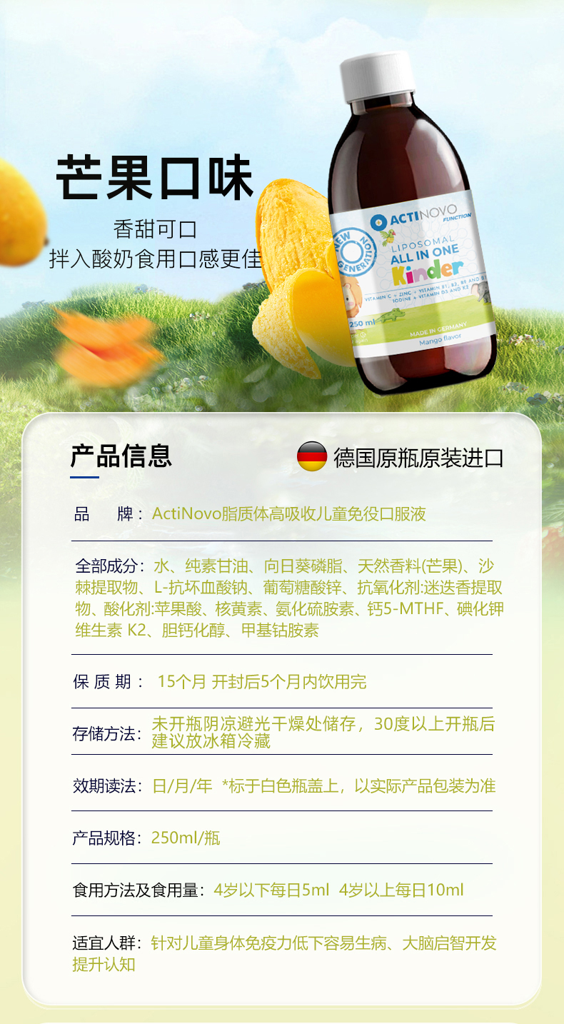德国ActiNovo二水槲皮素脂质体养肺护肺高端保健品清润内服营养液250ml