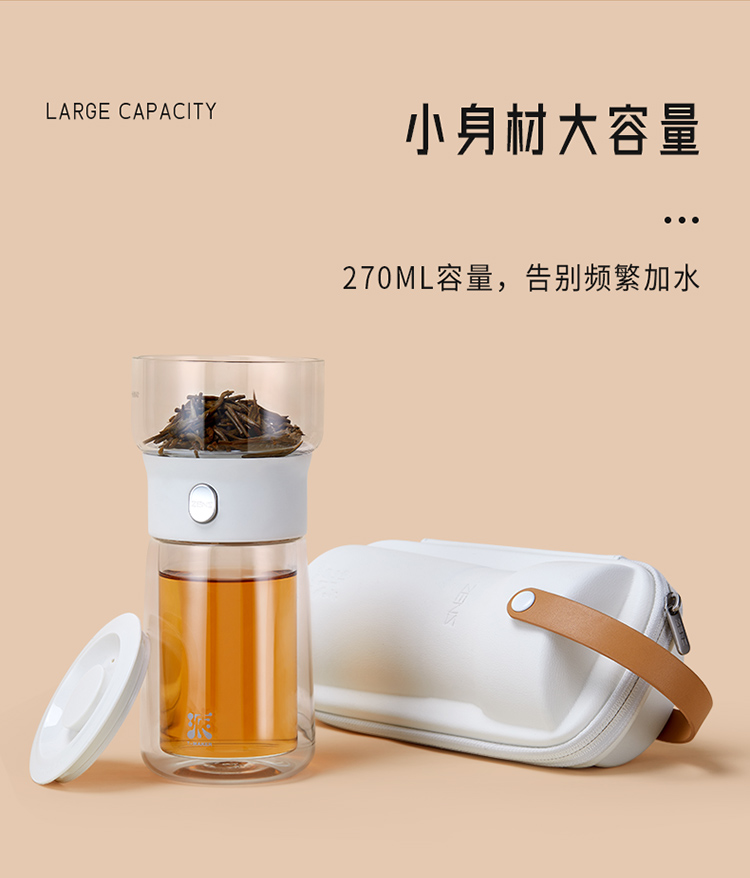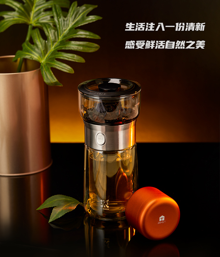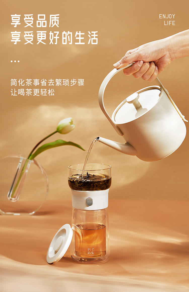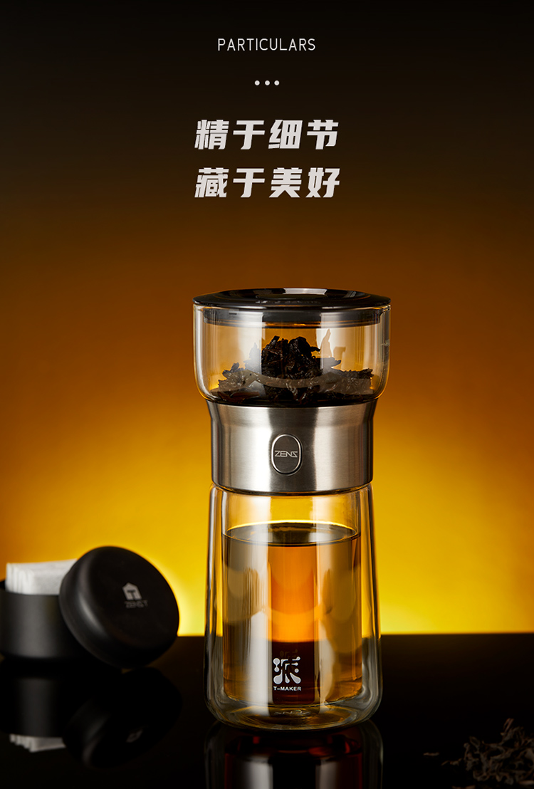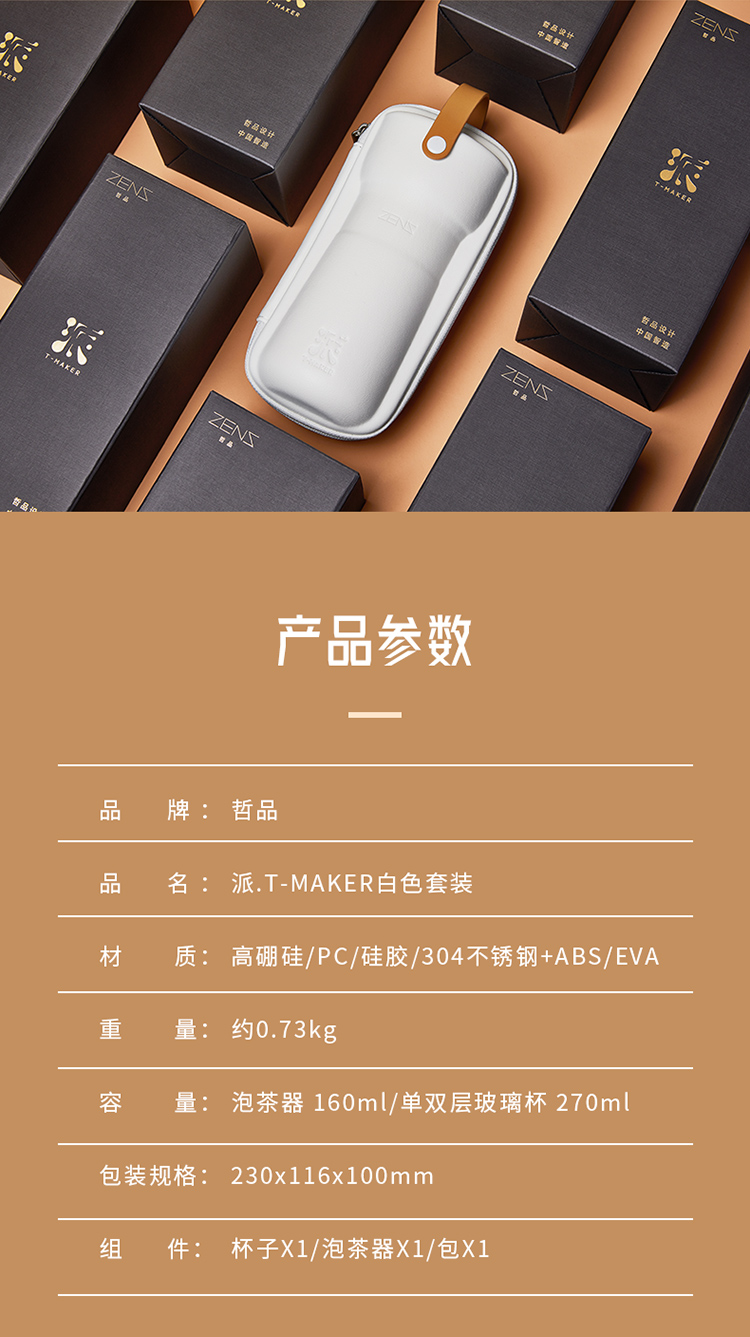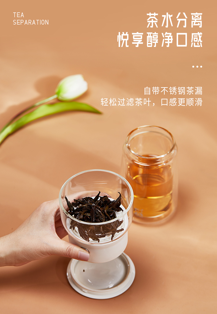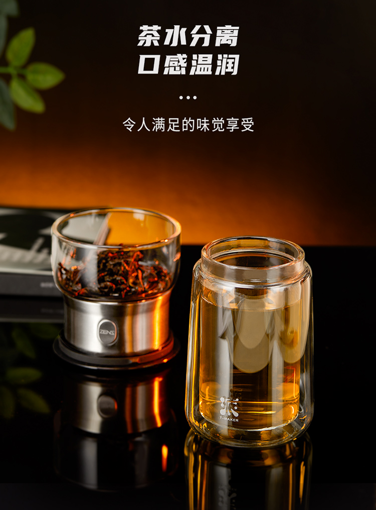 哲品丨派杯 派.T-MAKER 玻璃版 茶水分离 泡茶杯 玻璃杯 白色/黑色套装 270ml