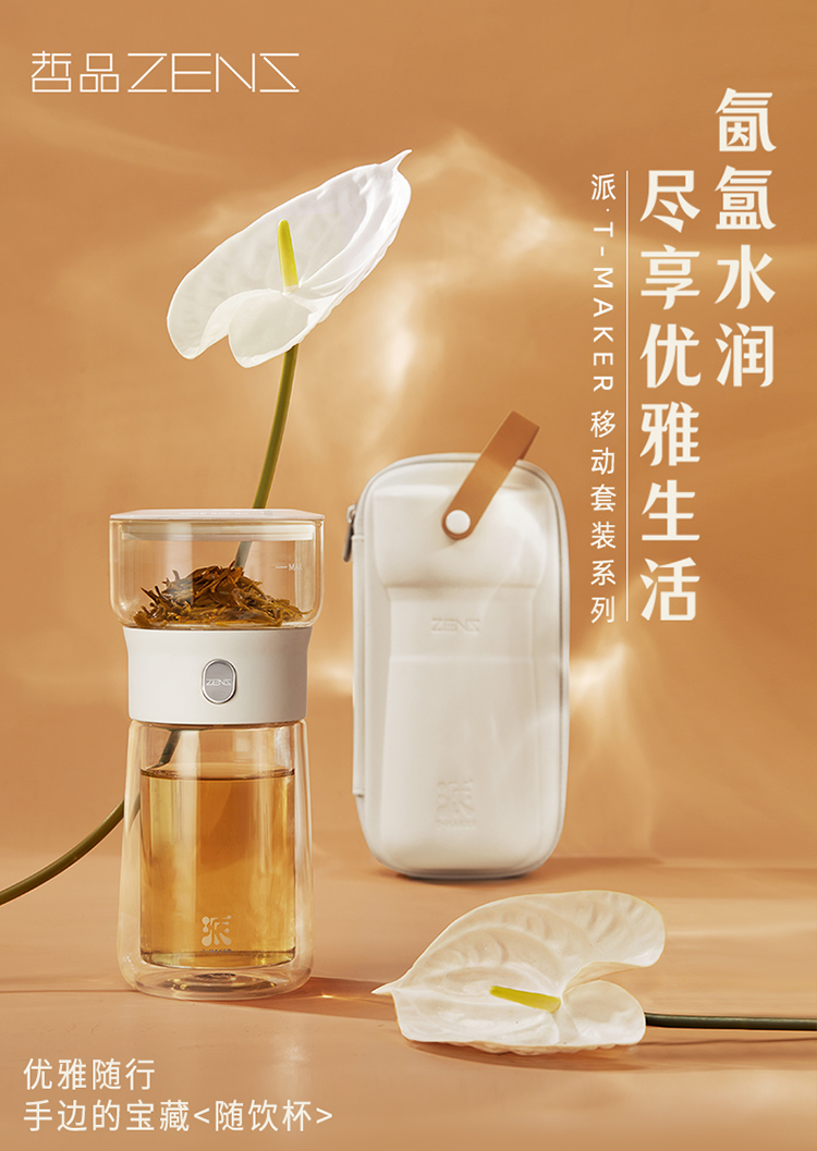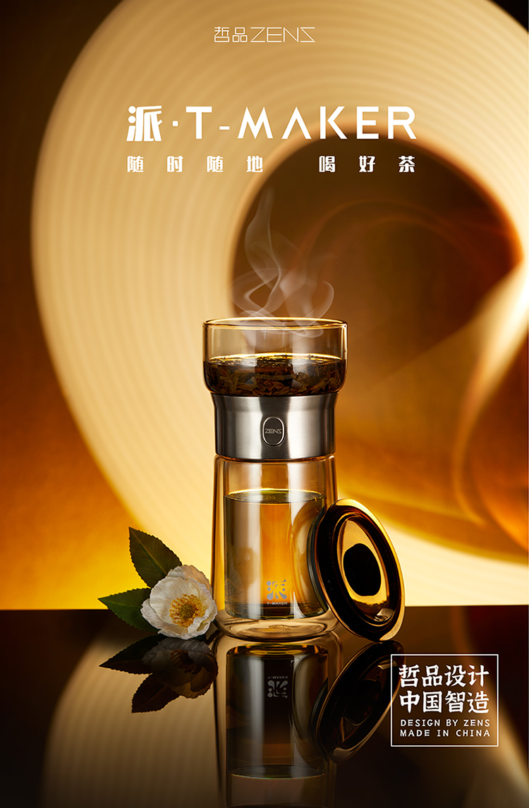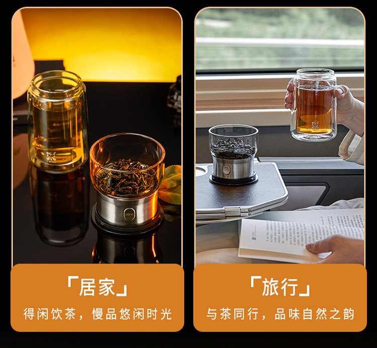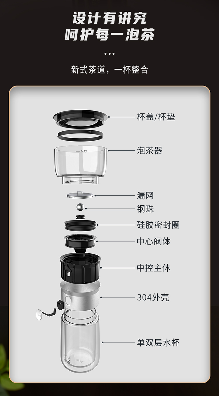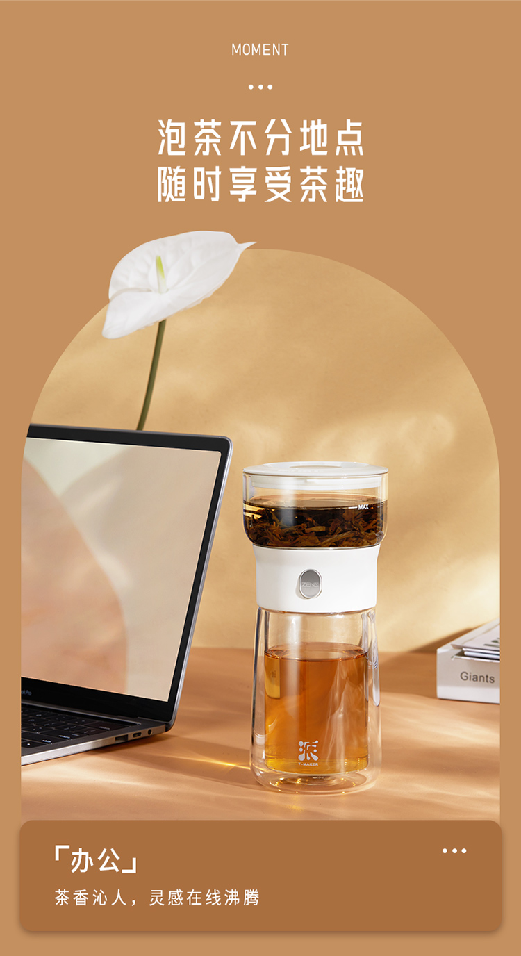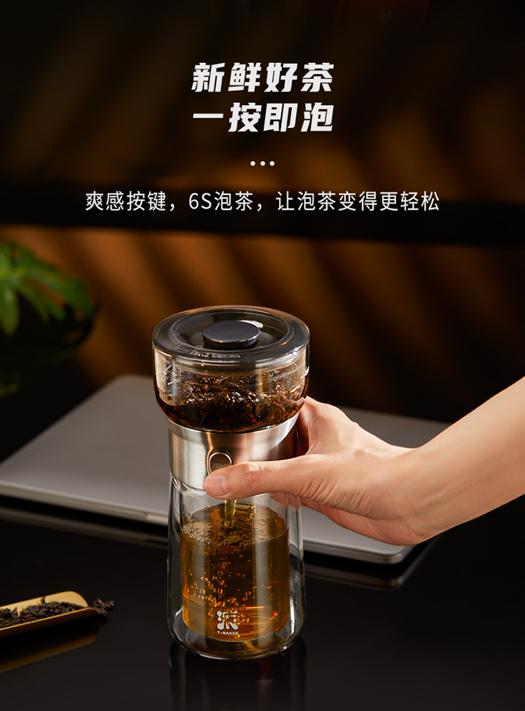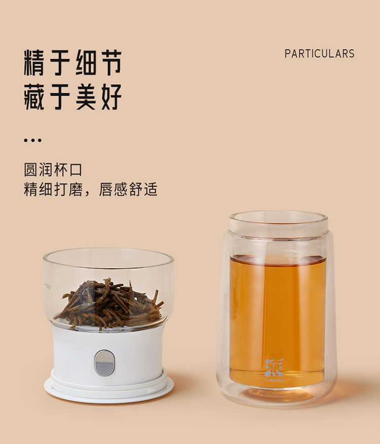 哲品丨派杯 派.T-MAKER 玻璃版 茶水分离 泡茶杯 玻璃杯 白色/黑色套装 270ml