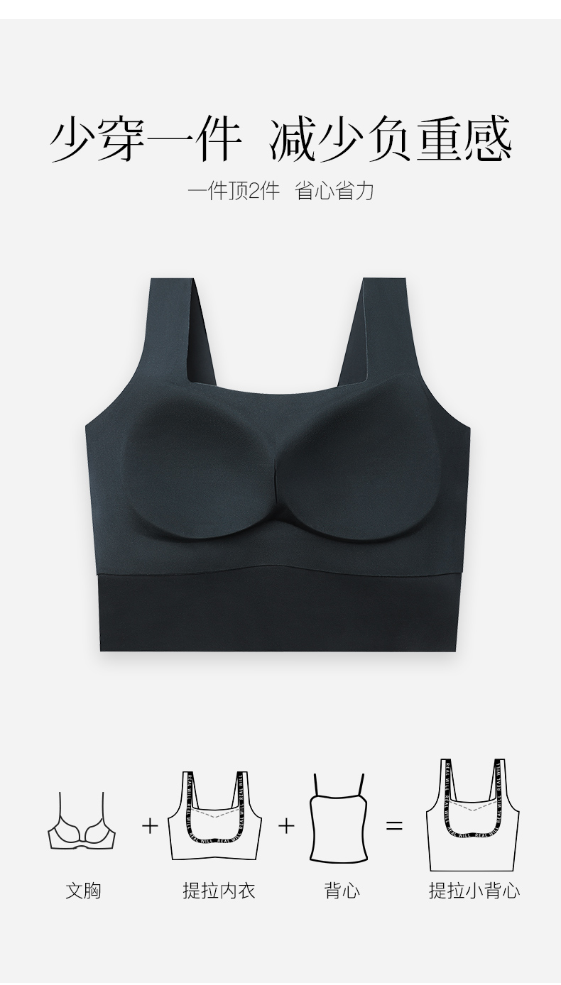 T2-💗【A-D杯】【全罩圆润款,不显小】润微内衣女小胸聚拢提拉防下垂收副乳外穿简约背心带胸垫文胸胸罩 提拉摩登【提拉系列】