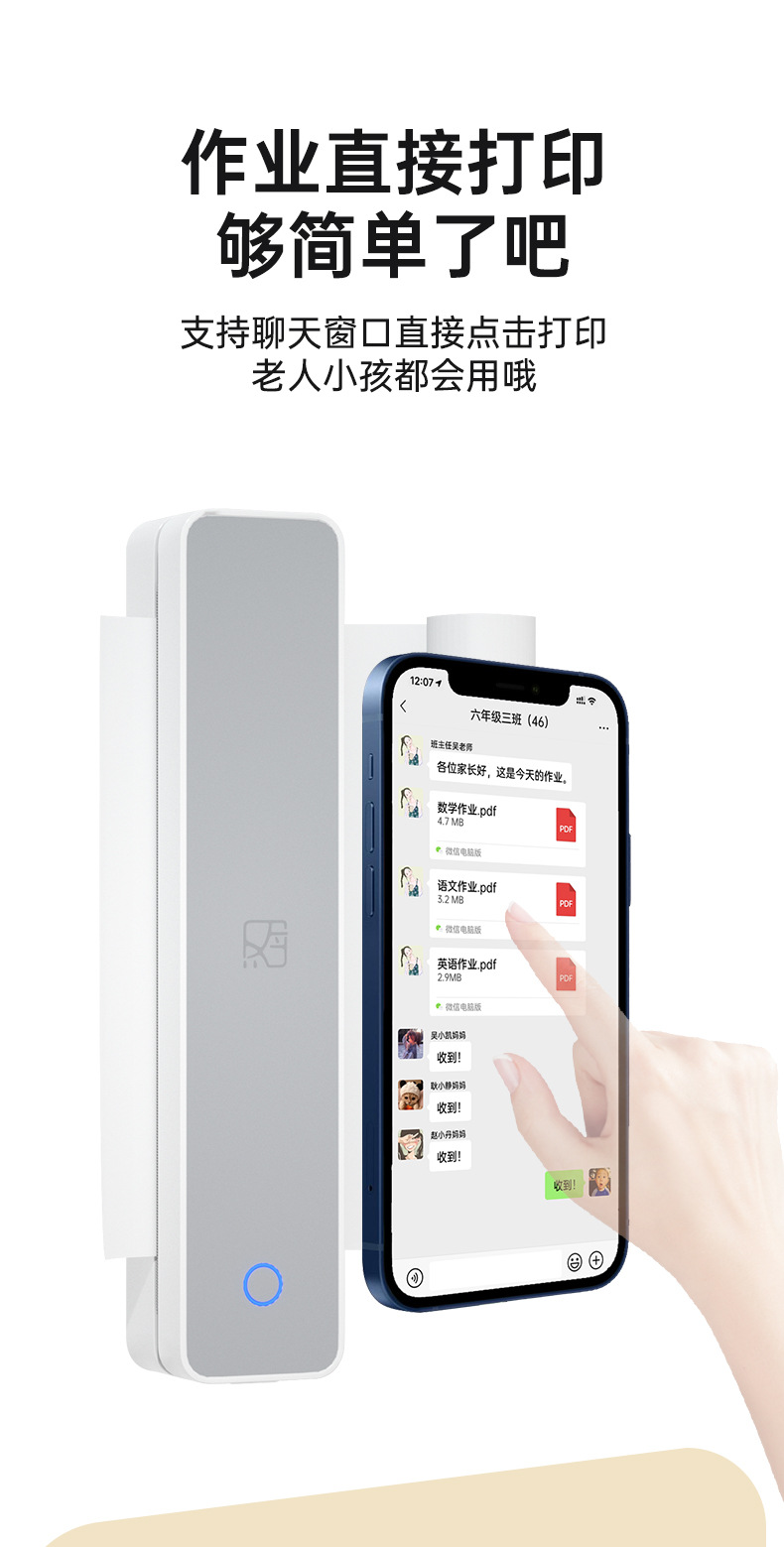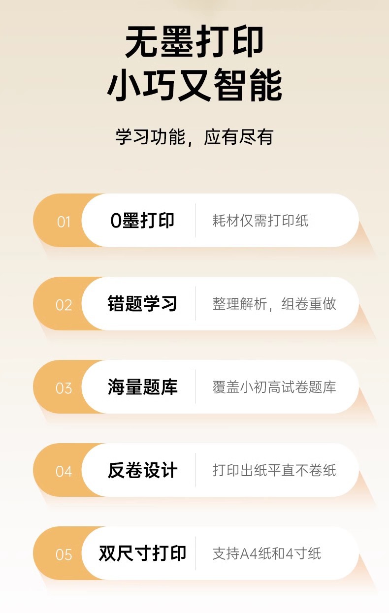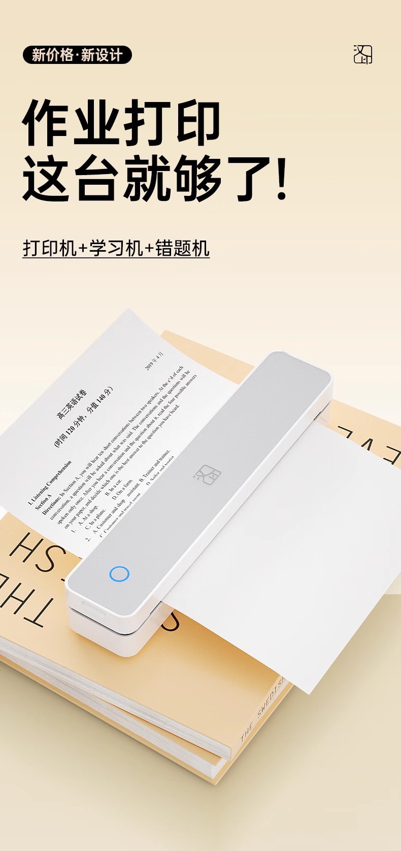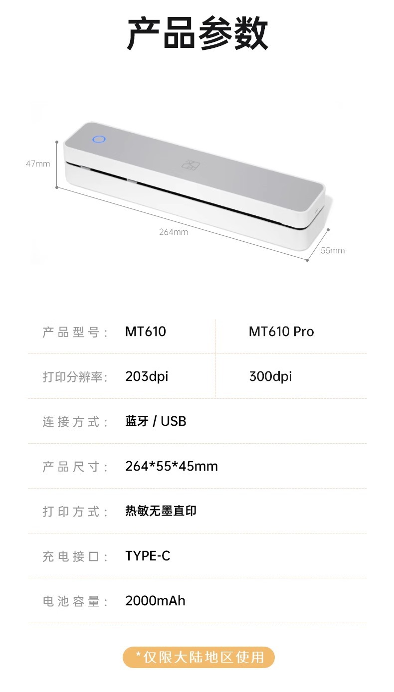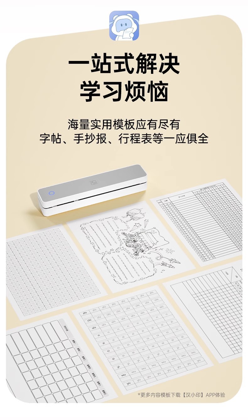 【汉印MT610家用作业打印机】手机蓝牙无线 便携A4学生热敏试卷错题