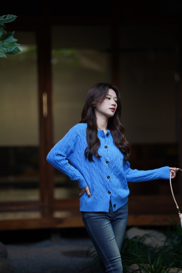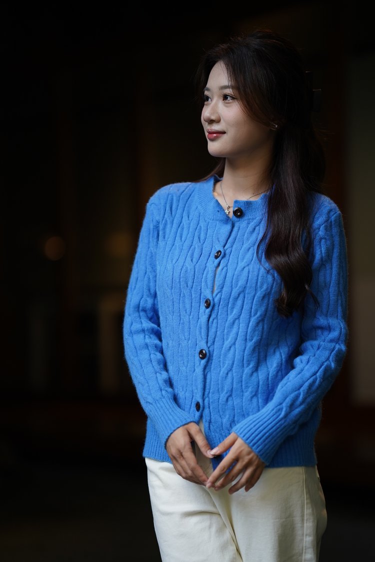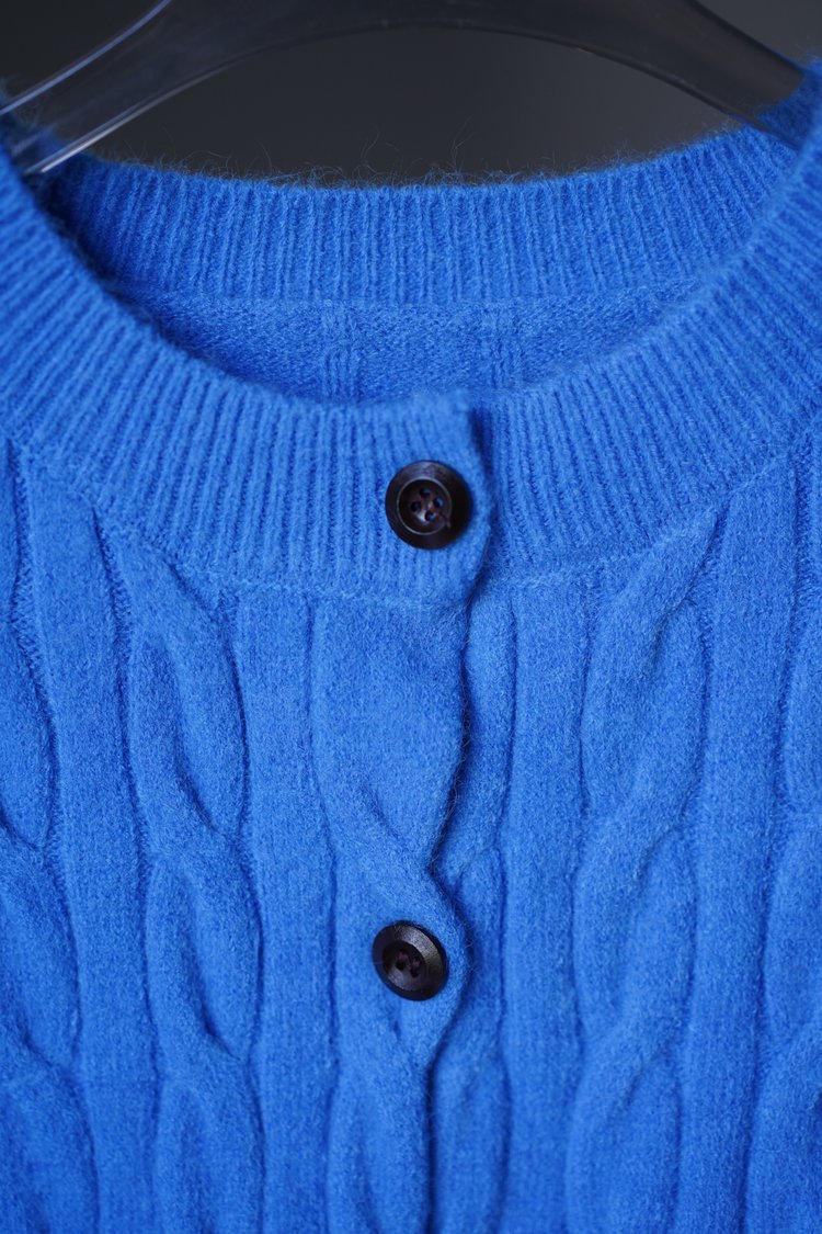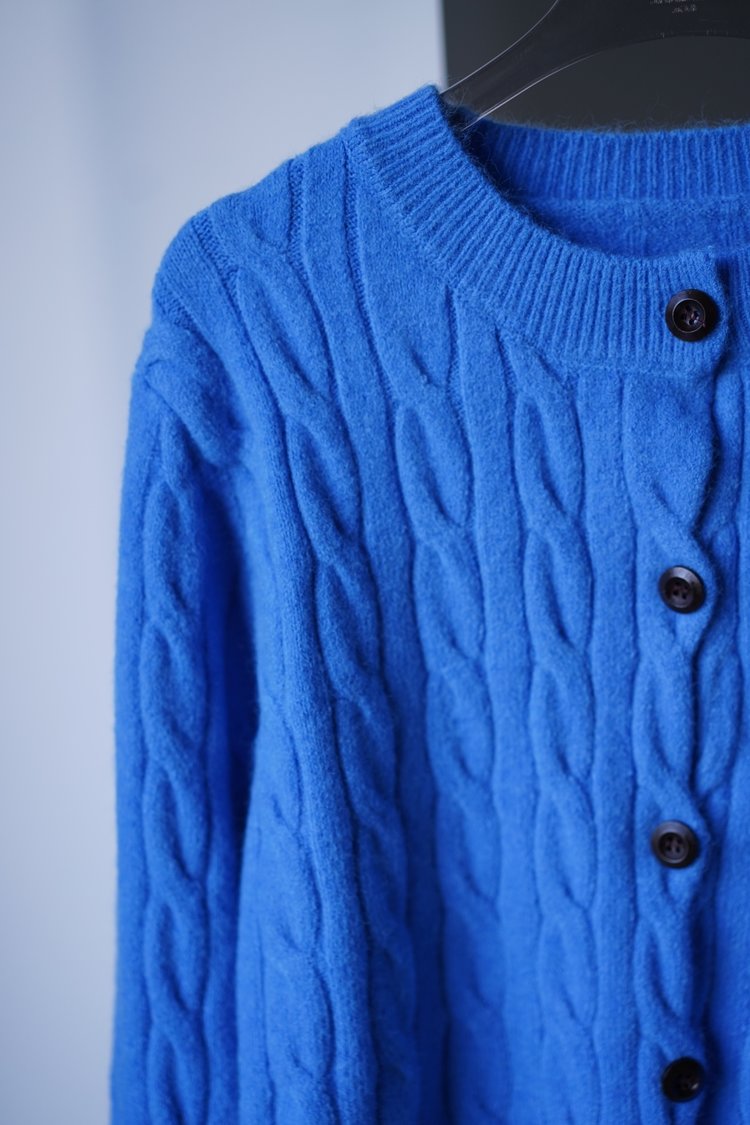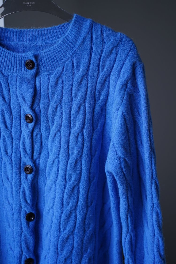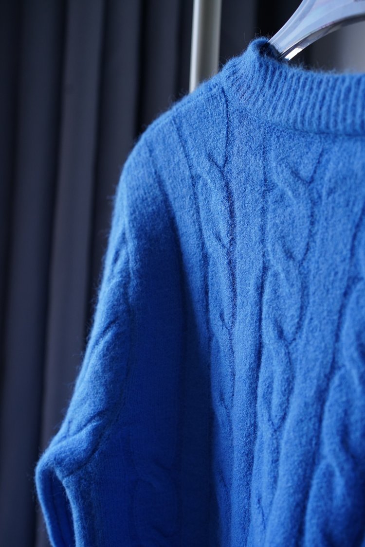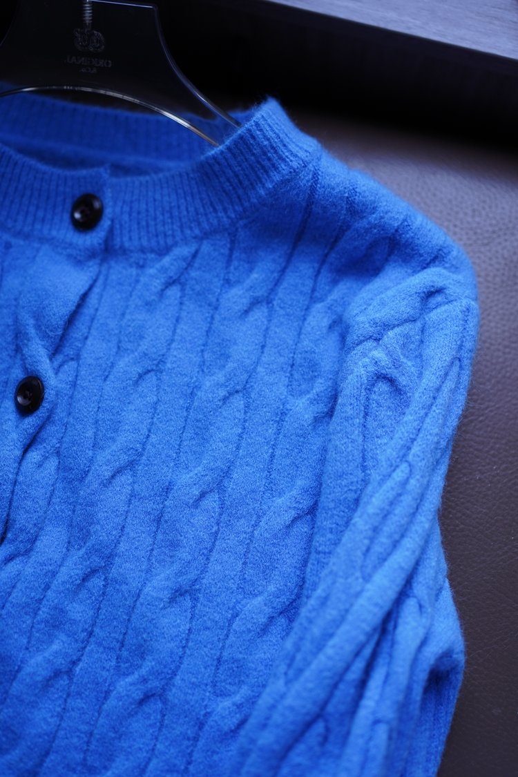 ORIGNAL&CO 克莱因蓝经典复古绞花羊毛开衫 进口马海毛+绵羊毛,手感绵密舒适柔软,显瘦版型,高饱和度颜色初秋更显白
