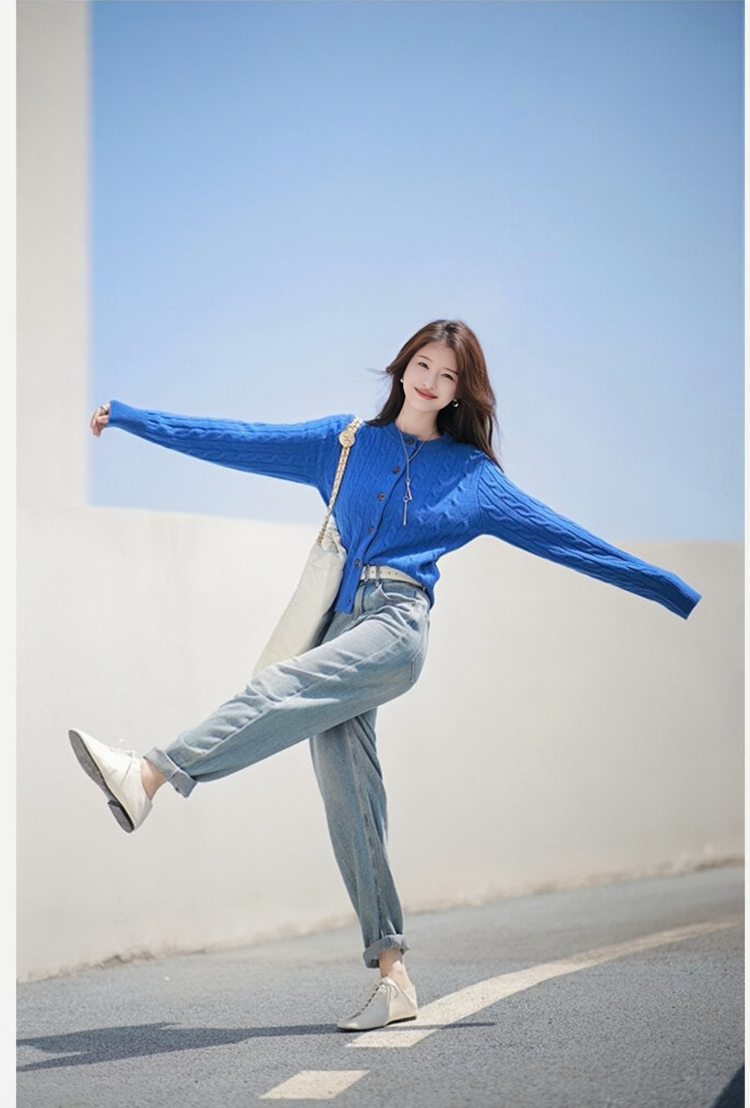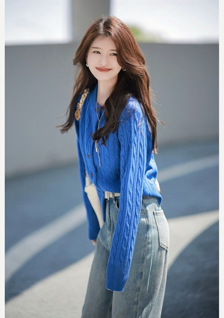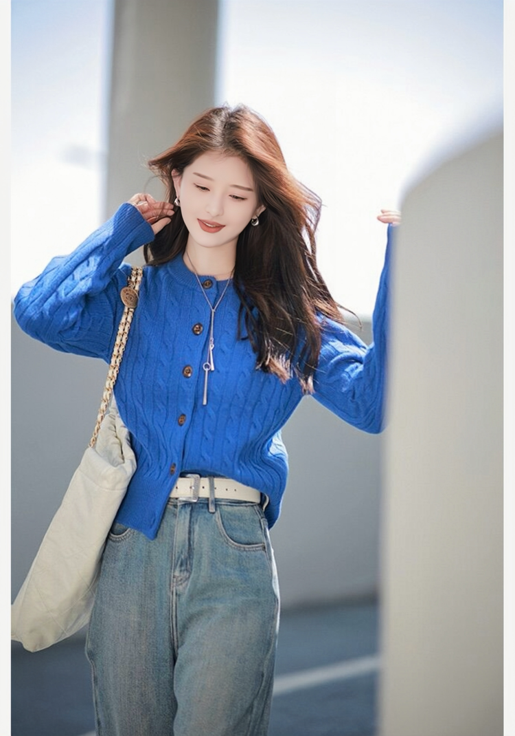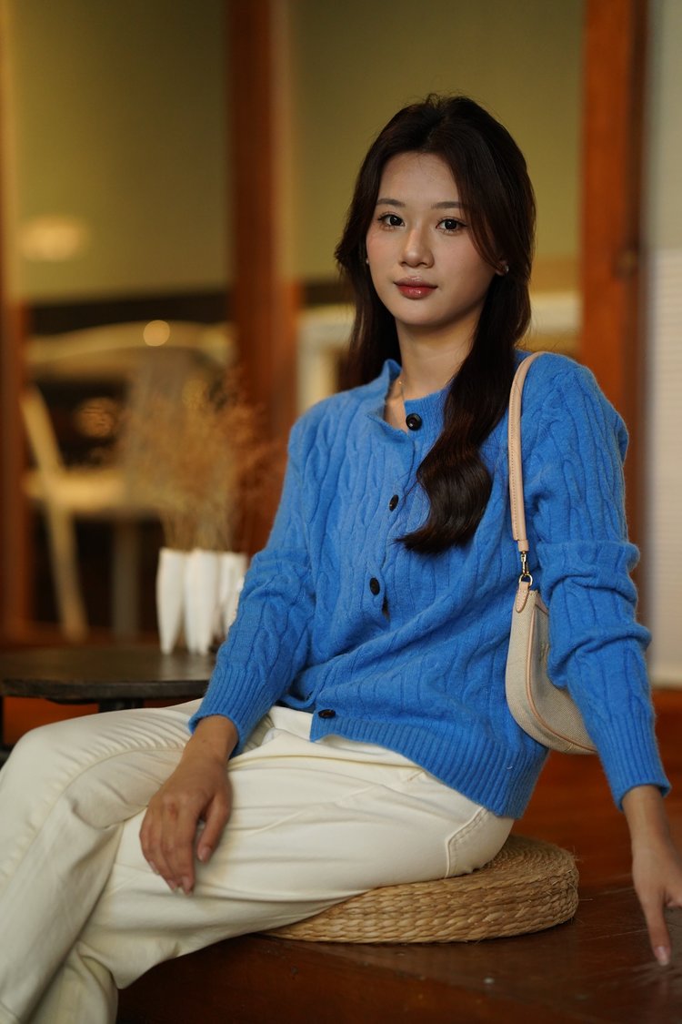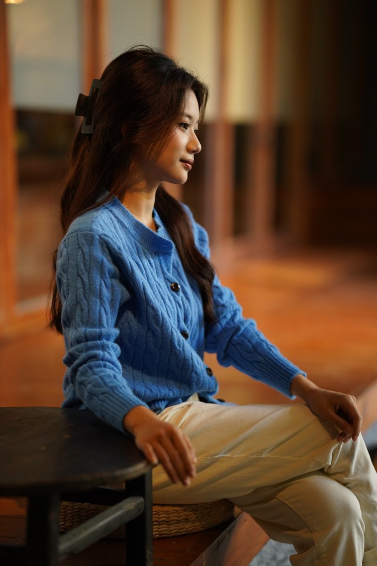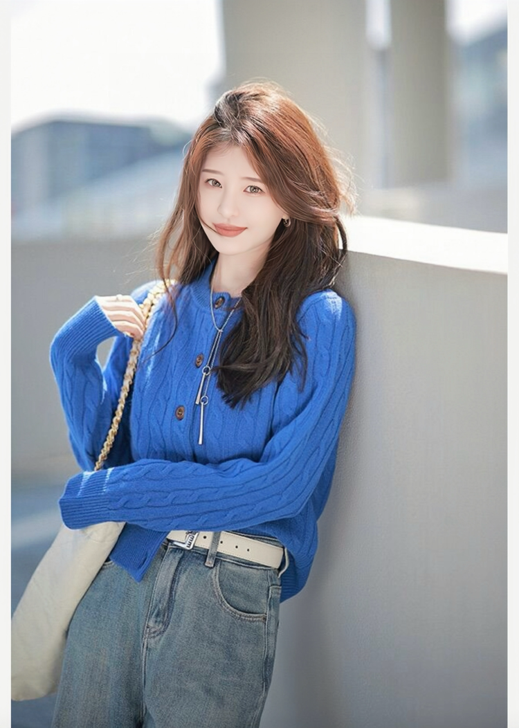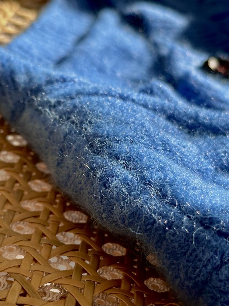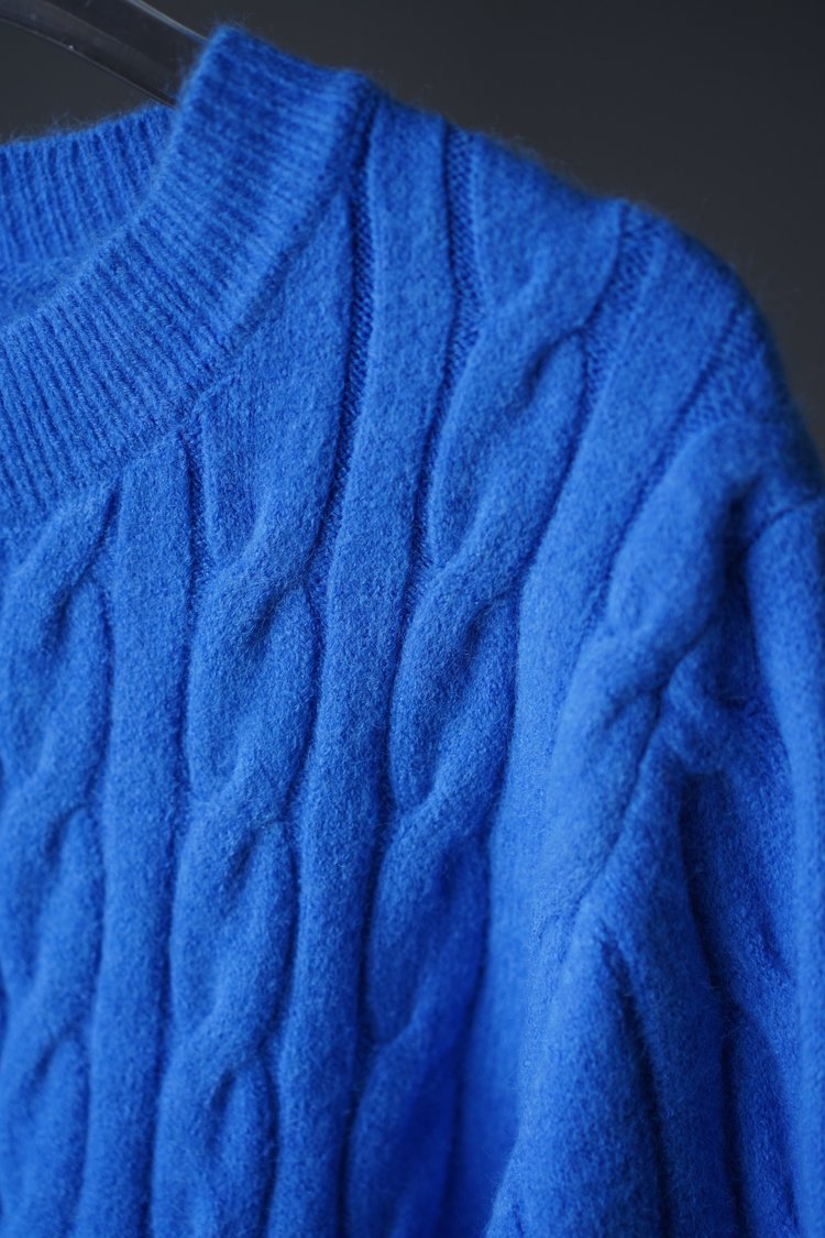 ORIGNAL&CO 克莱因蓝经典复古绞花羊毛开衫 进口马海毛+绵羊毛,手感绵密舒适柔软,显瘦版型,高饱和度颜色初秋更显白