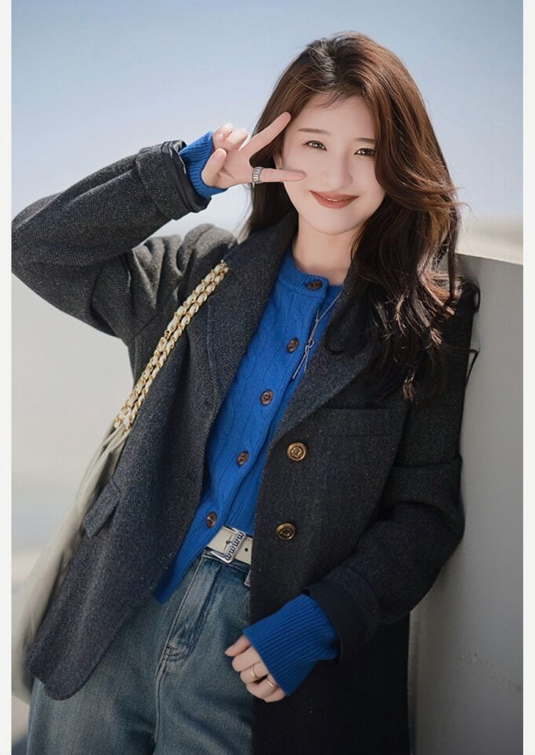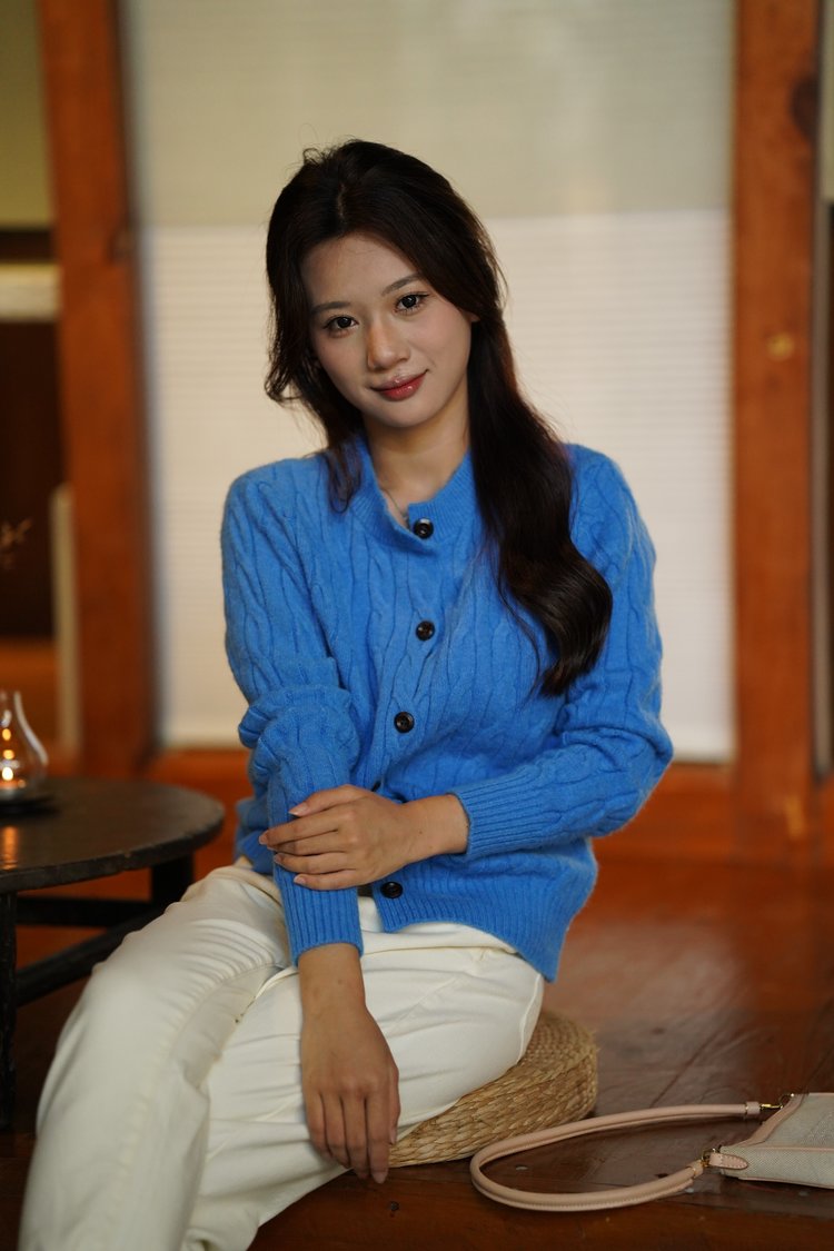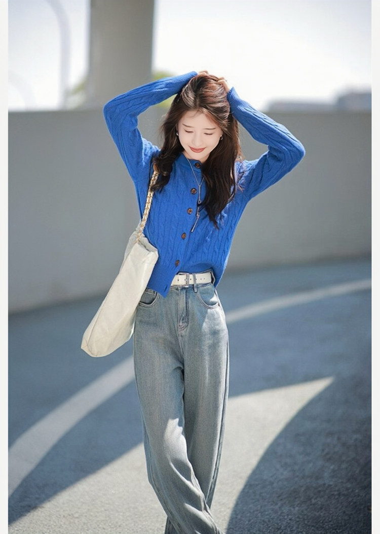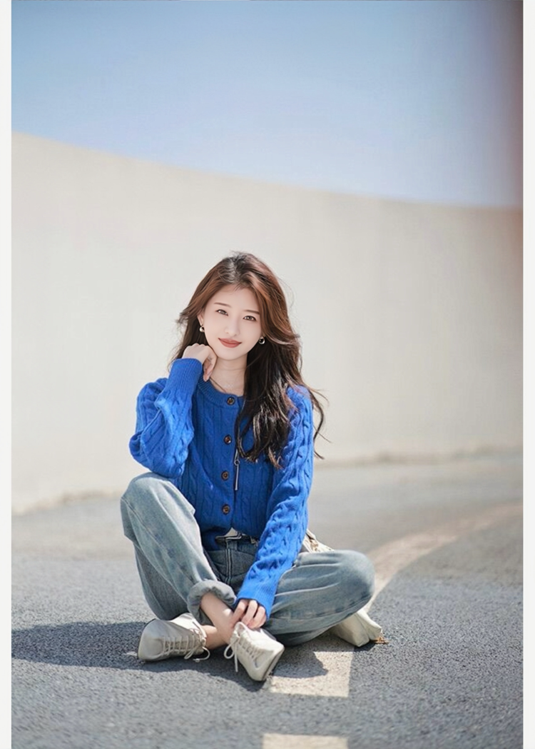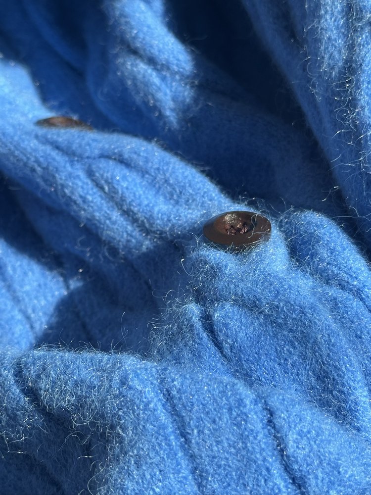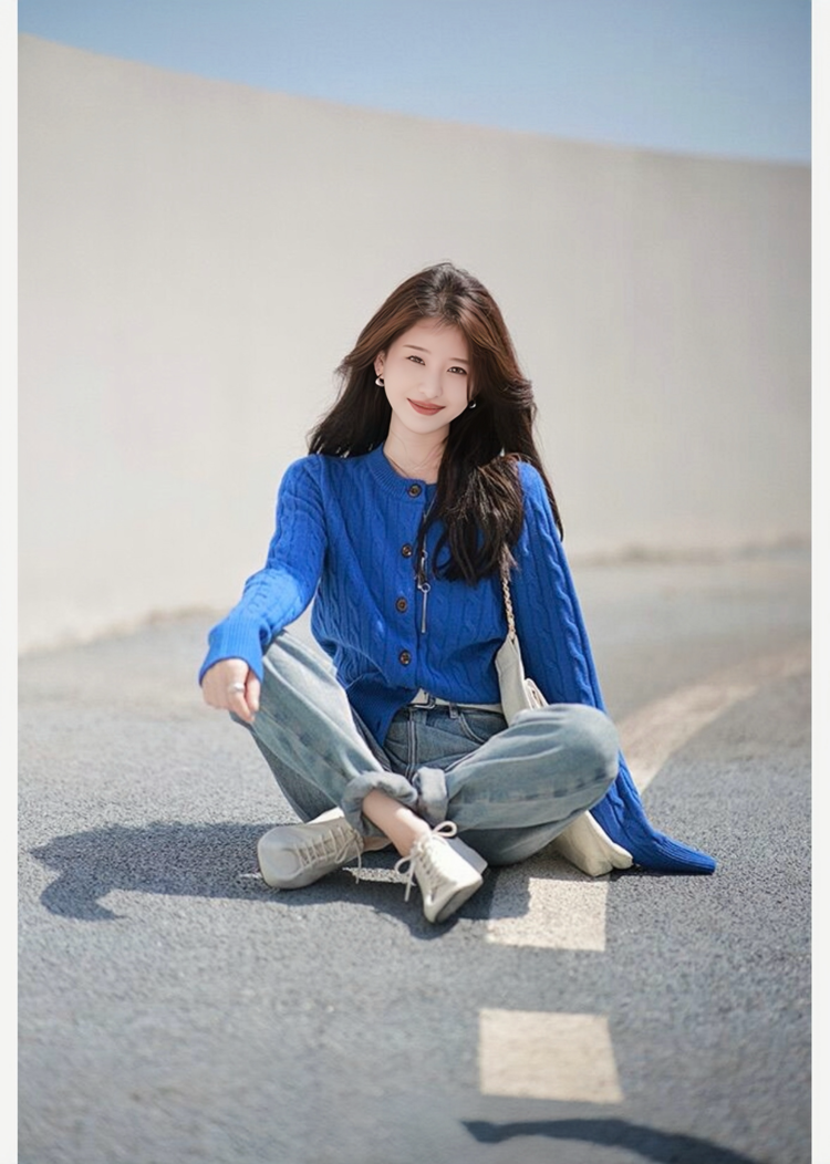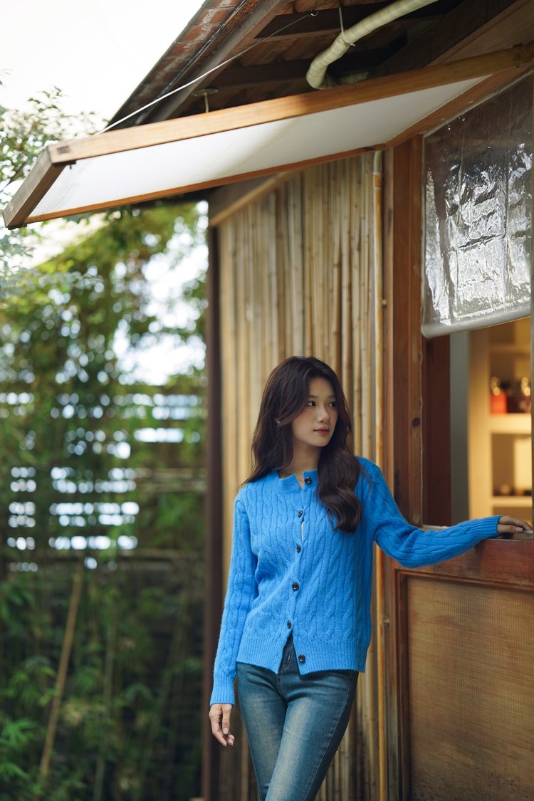 ORIGNAL&CO 克莱因蓝经典复古绞花羊毛开衫 进口马海毛+绵羊毛,手感绵密舒适柔软,显瘦版型,高饱和度颜色初秋更显白