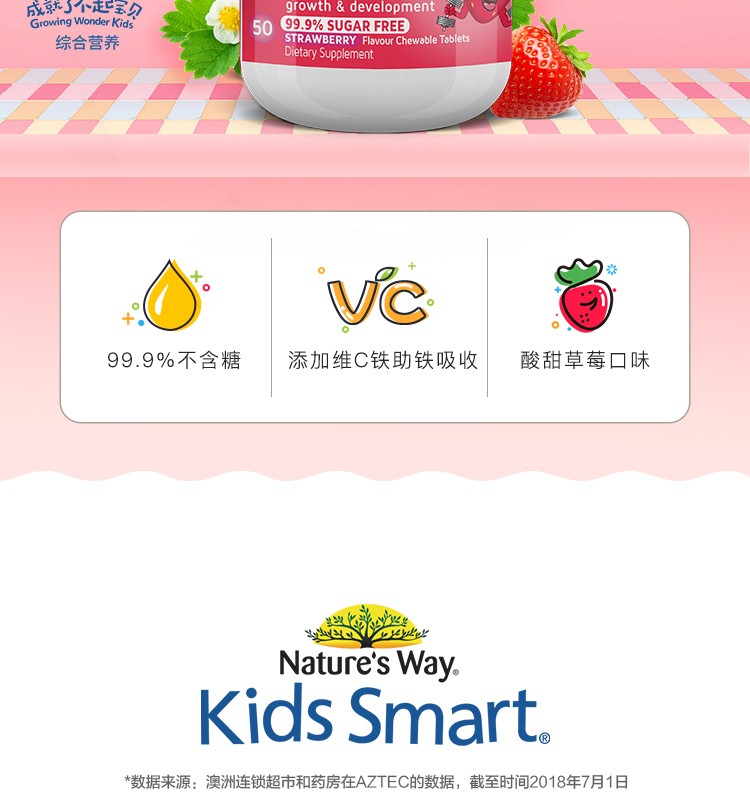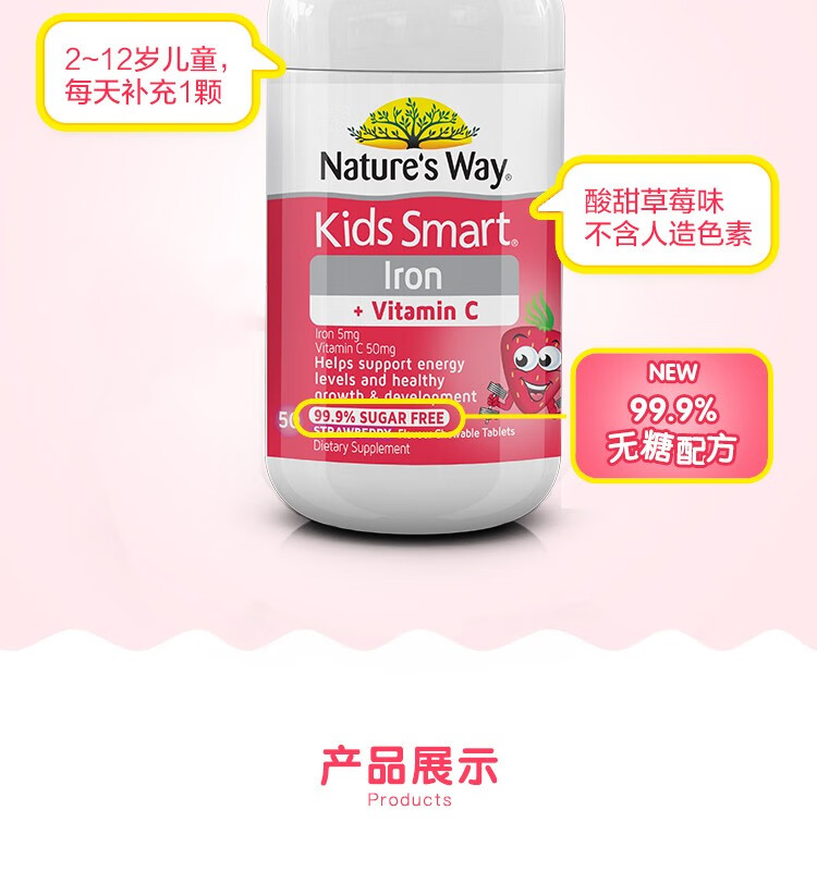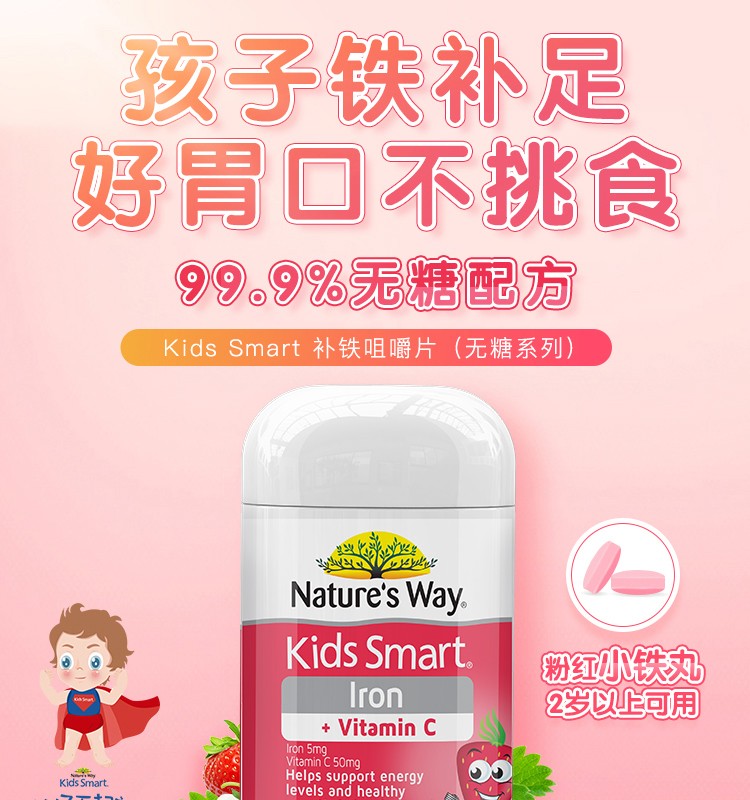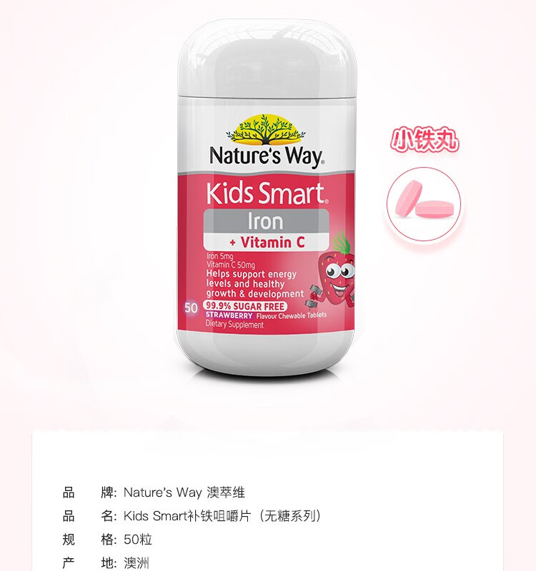 【保税仓】澳洲 Natures way 佳思敏儿童铁+維生素C咀嚼片50片