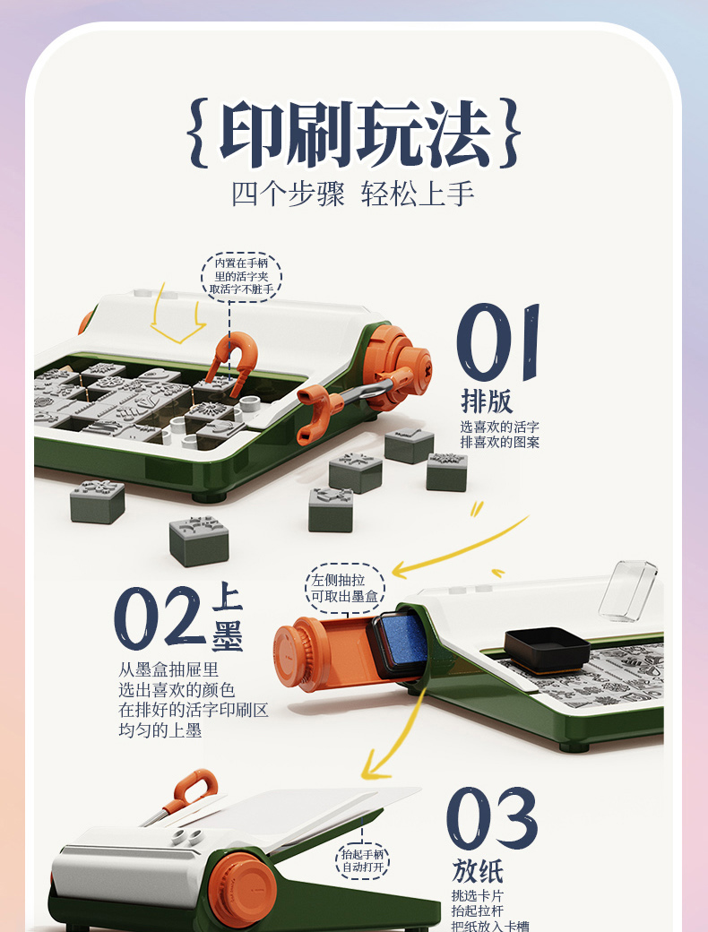 欢乐客活字印刷机玩具儿童仿真四大发明之印刷术套装~