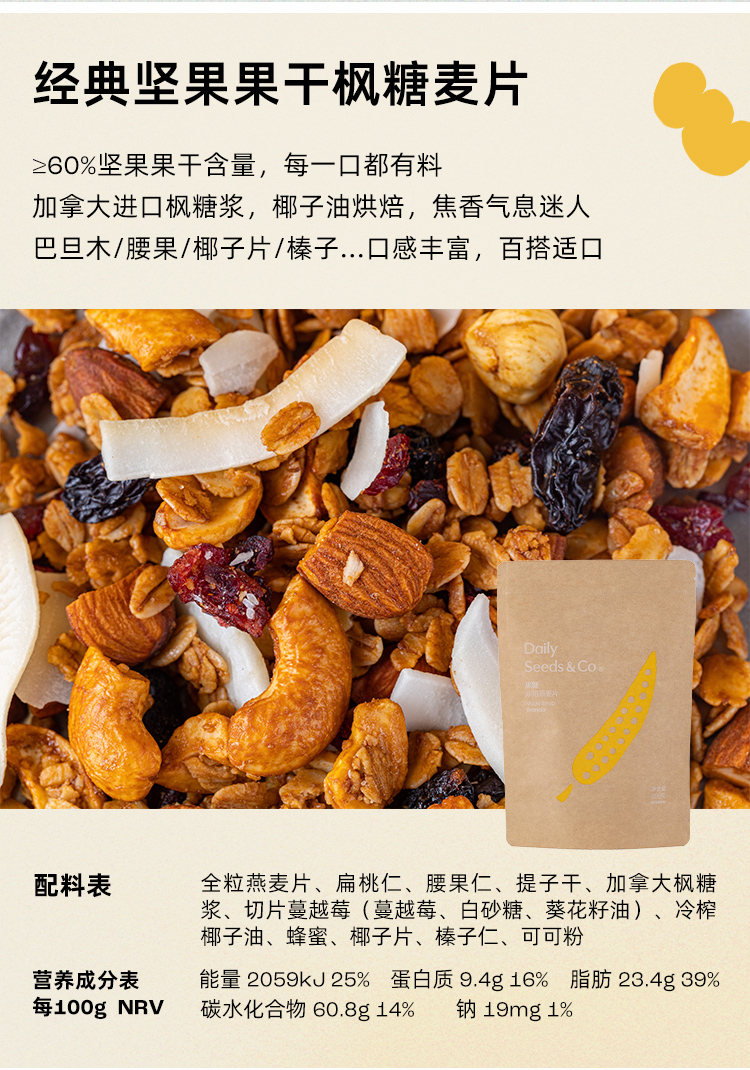7天内发 企鹅市集|Daily Seeds&Co 烘焙燕麦麦片258g 多口味可选 granola麦片 巴旦木腰果仁椰子油