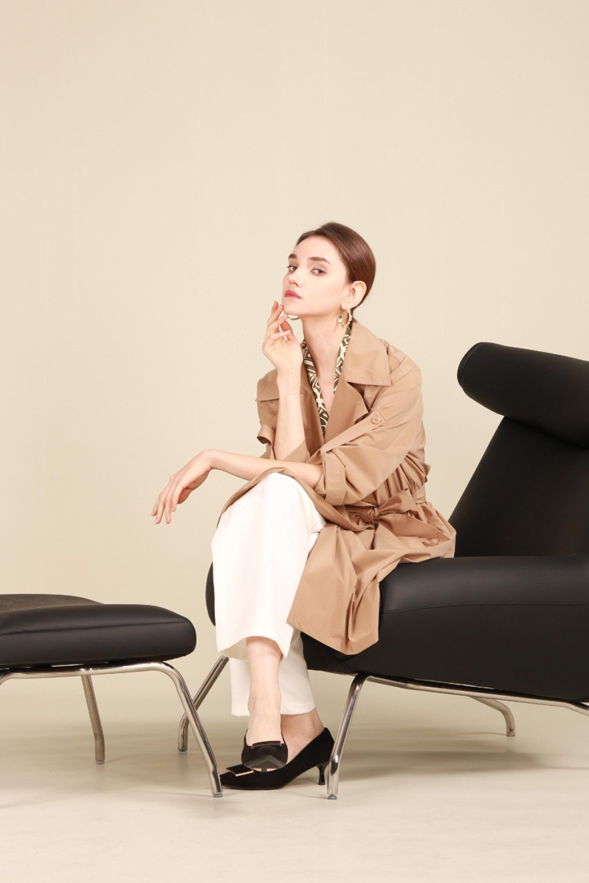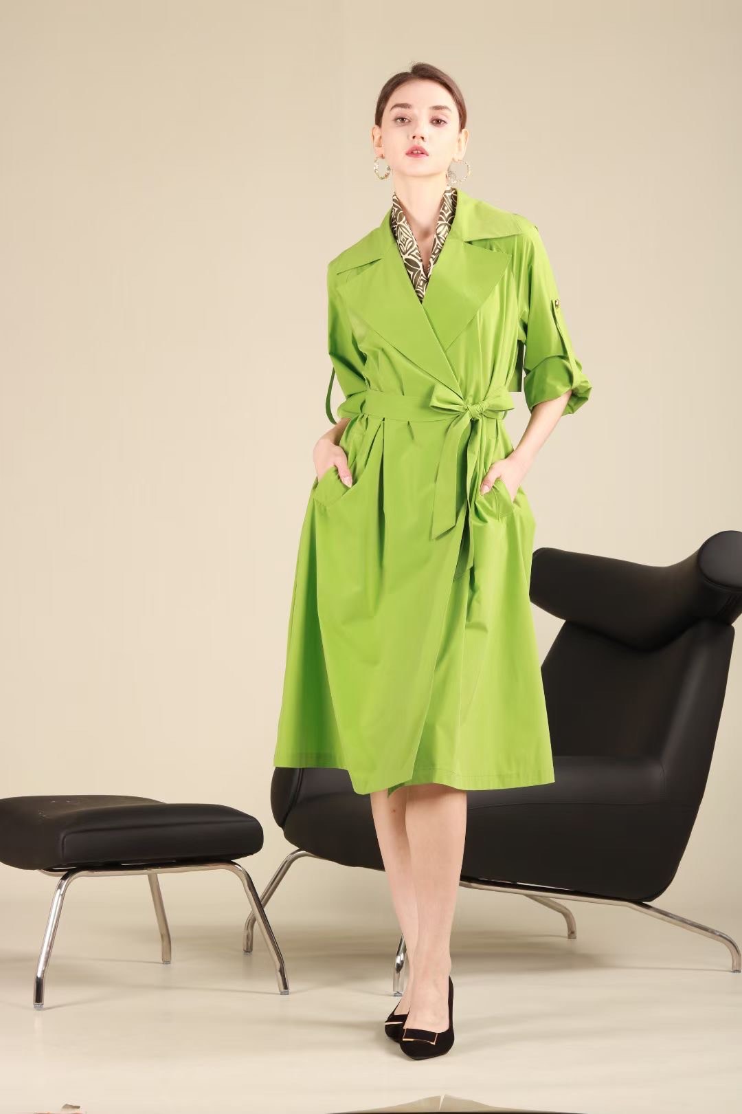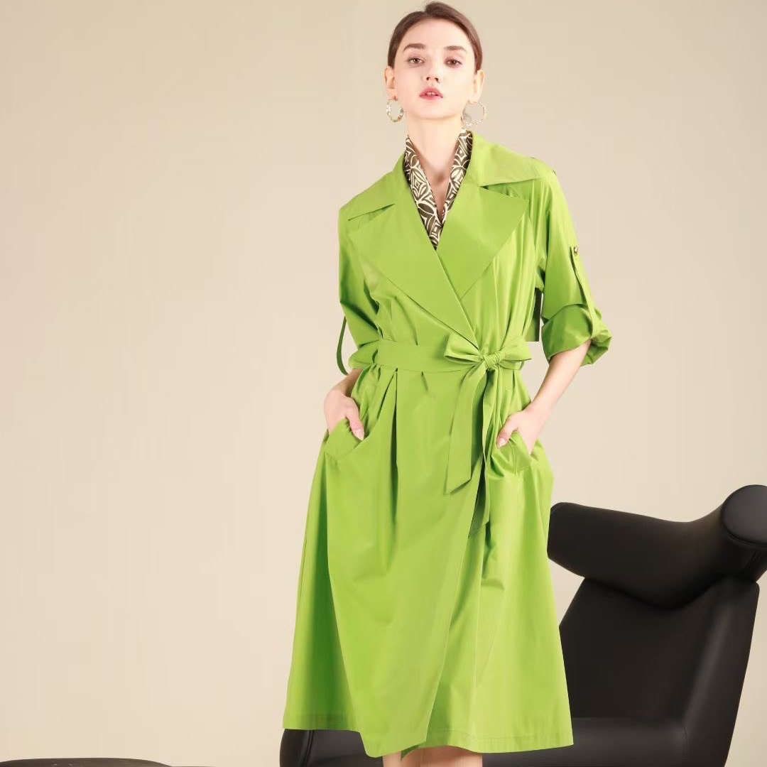 = 漆黑色、弗肯红色、青粲色风衣HJ1D03