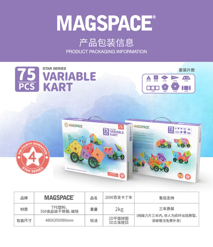 (Magspace) 75片百变卡丁车 四代软胶