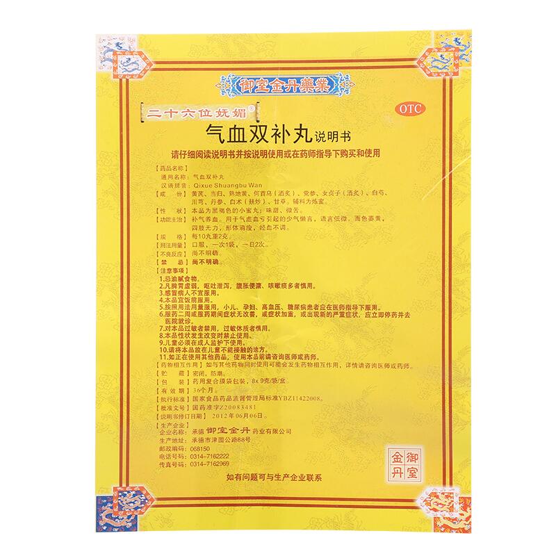 二十六位妩媚气血双补丸8袋补气养血气虚月经不调