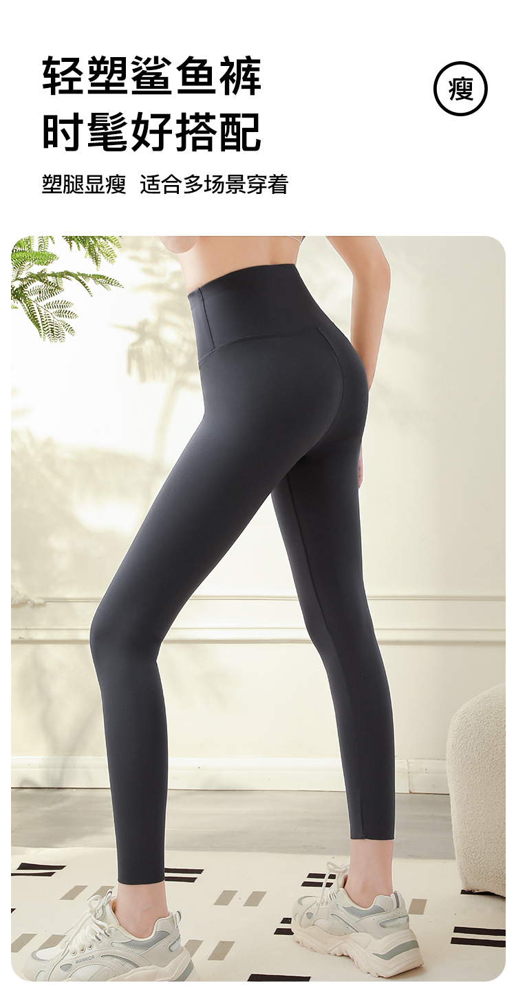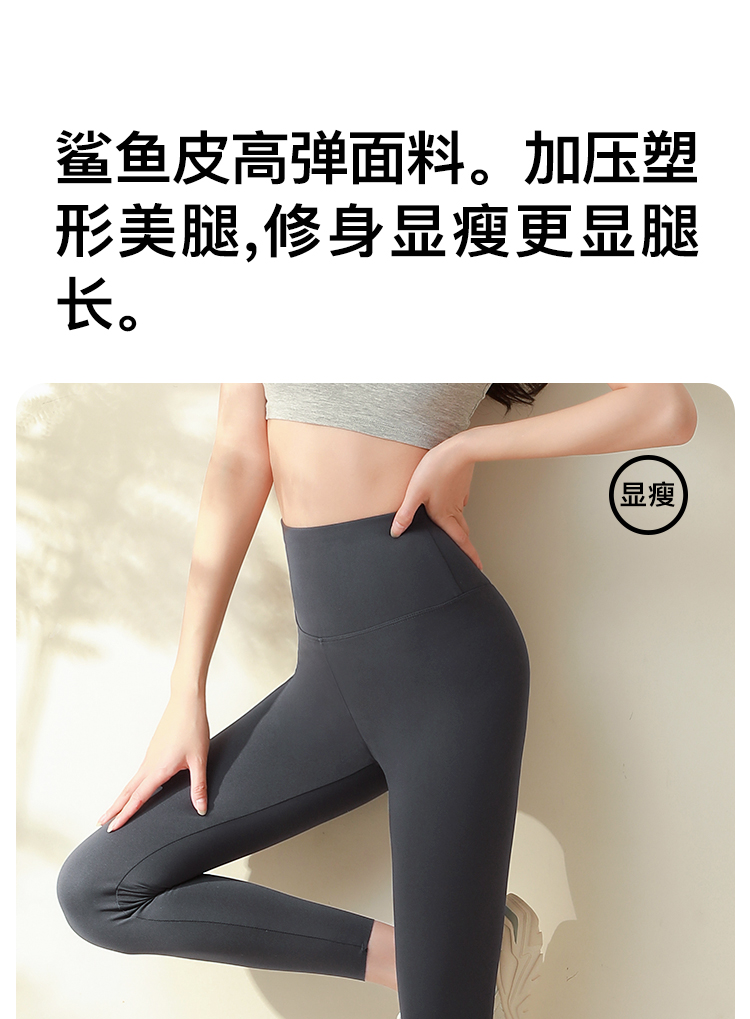 高腰提臀塑型显瘦显腿长鲨鱼裤健身瑜伽百搭修身打底裤长裤9023PD九分腰口印字鲨鱼皮