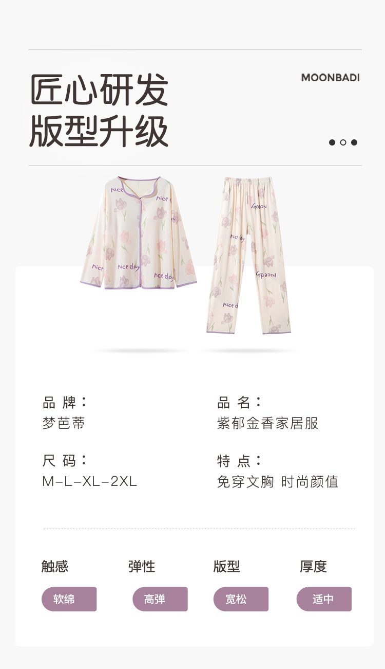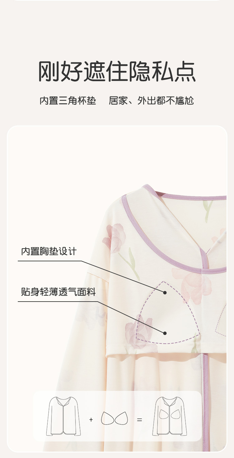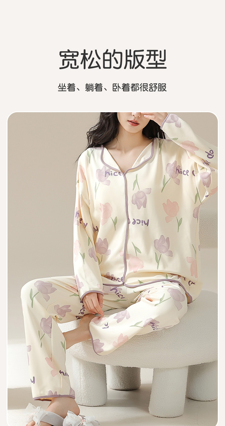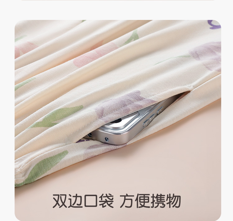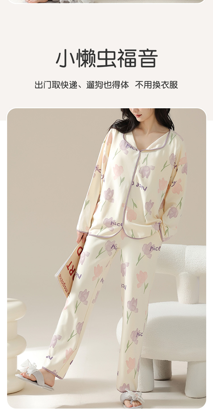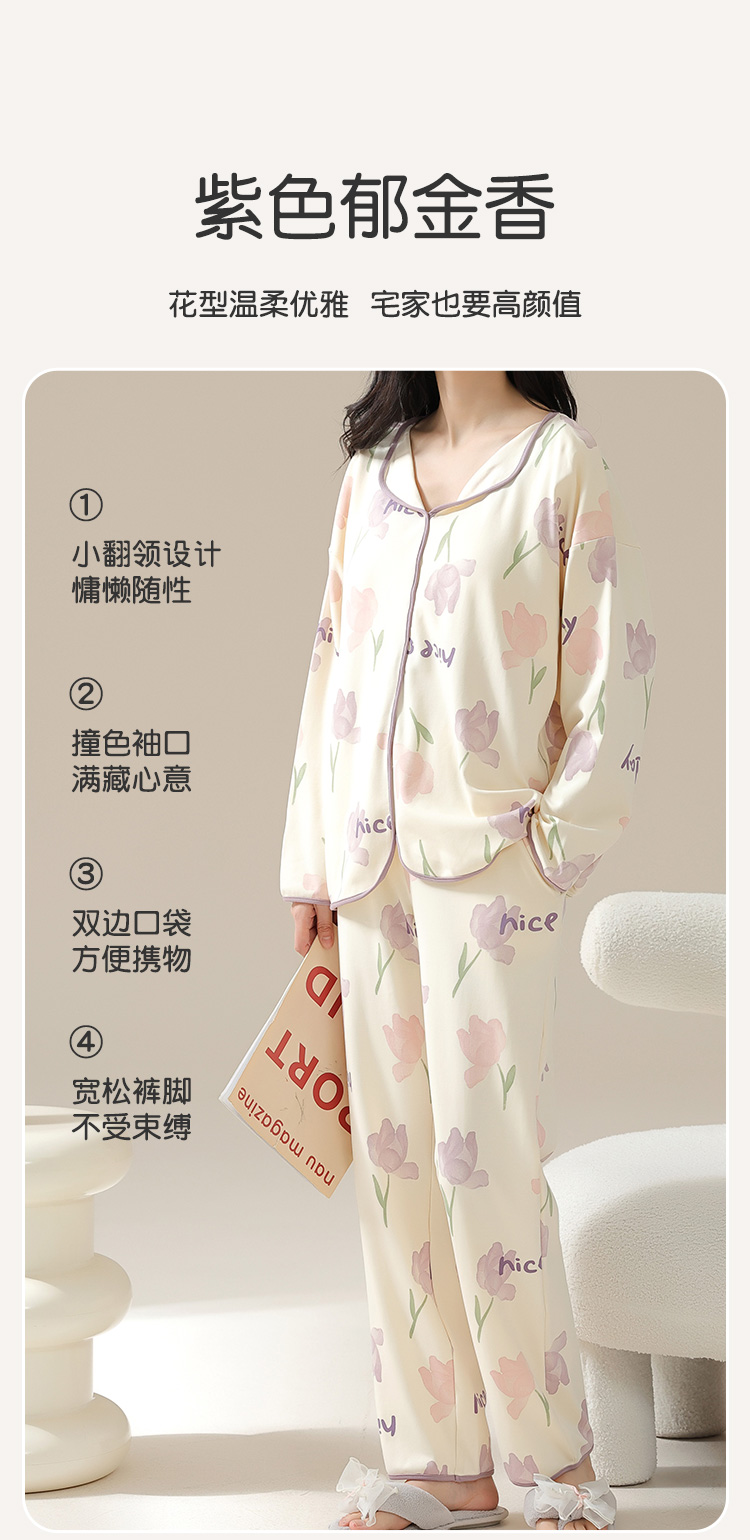 【免穿文胸 可外穿】时尚印花女士家居服套头宽松舒适有口袋睡衣紫郁金香家居服