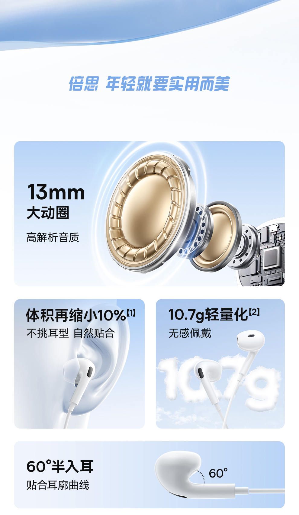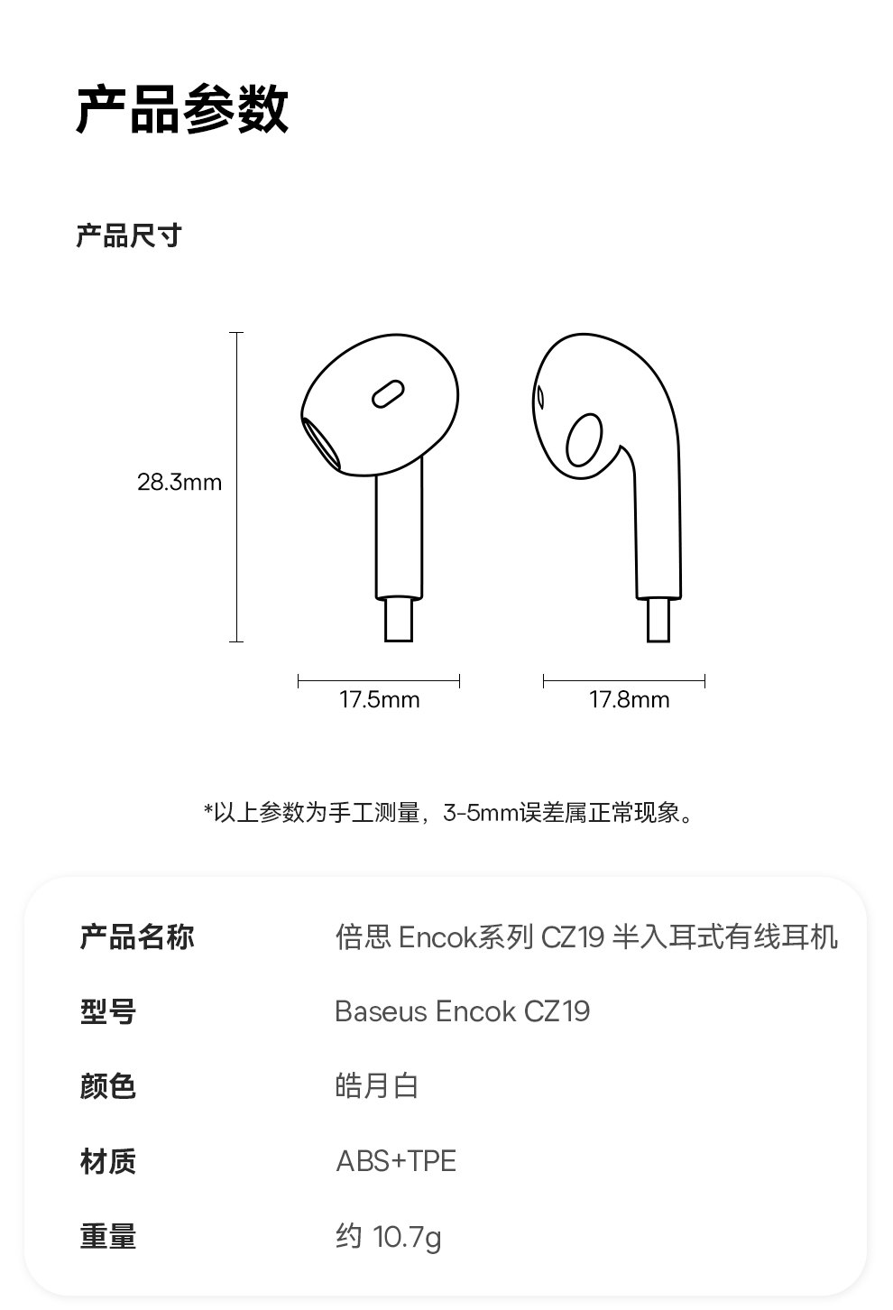 【69元3件】Encok系列 CZ19 线控耳机