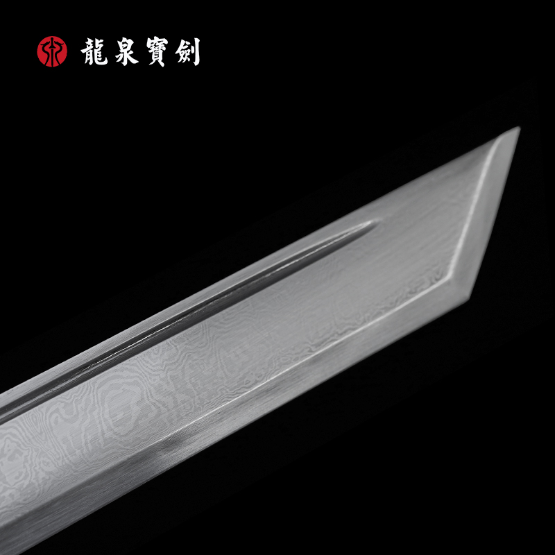 白虹唐刀 /唐剑 百炼折叠锻造花纹钢 覆土烧刃 精细研磨 黑檀木鞘 结实耐用 (未开刃)
