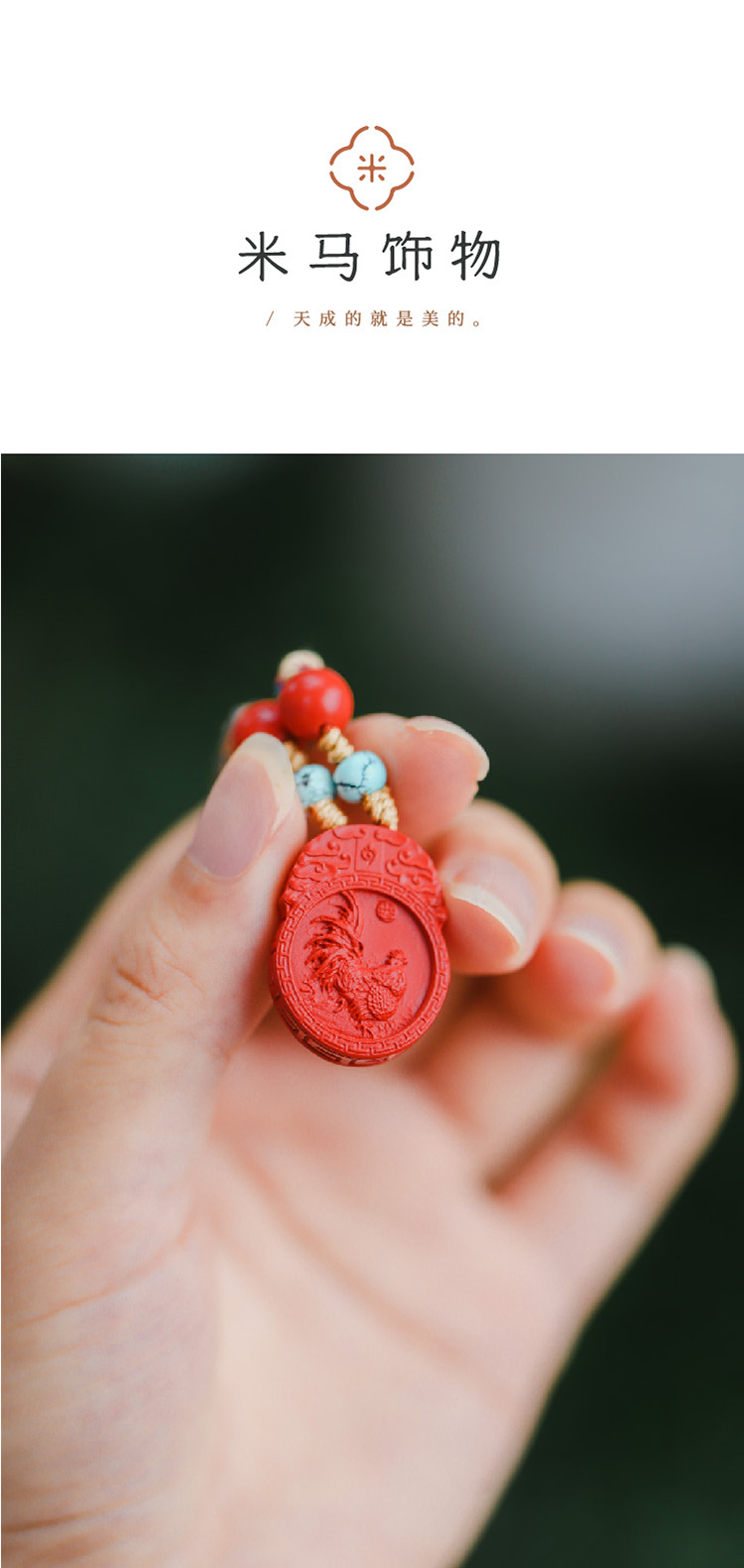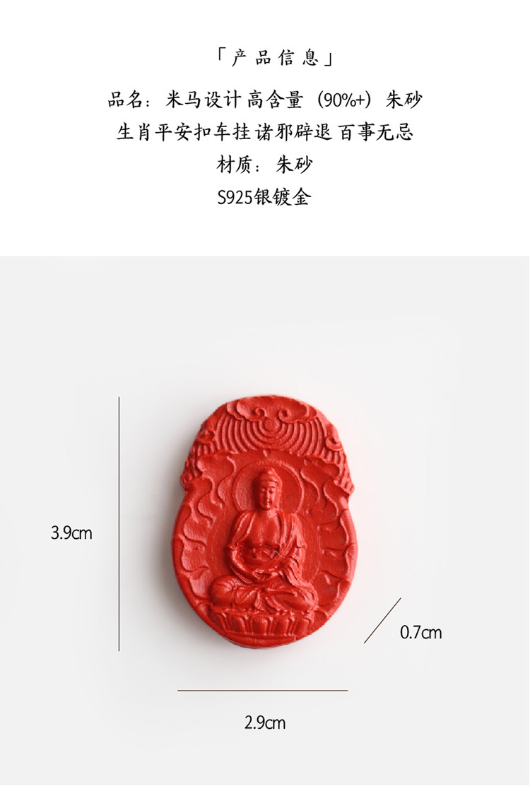 米马设计 高含量(90%+)朱砂生肖平安扣车挂 诸邪辟退 百事无忌