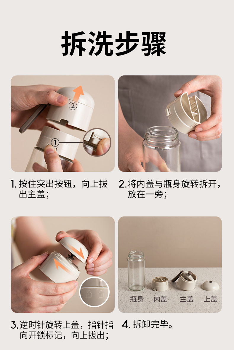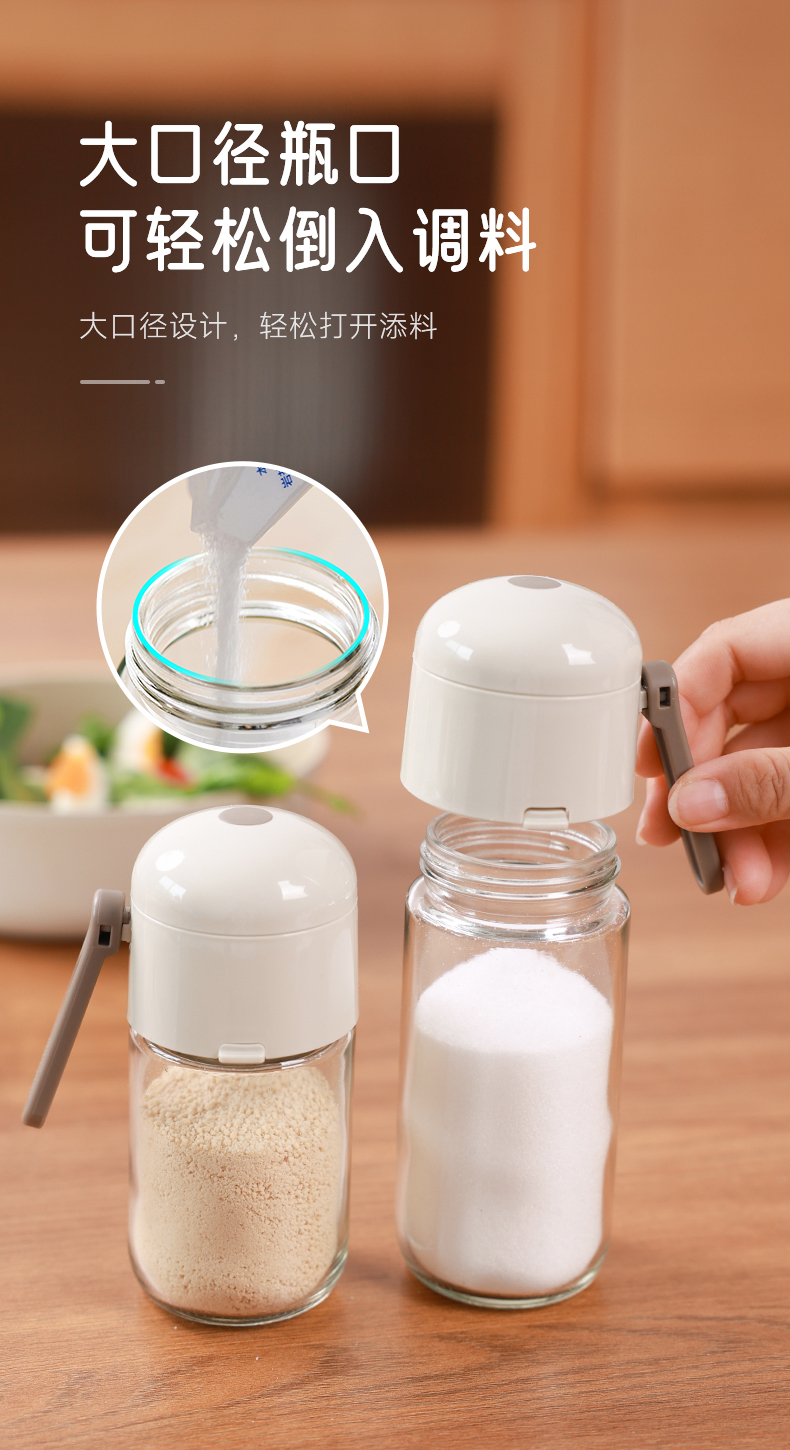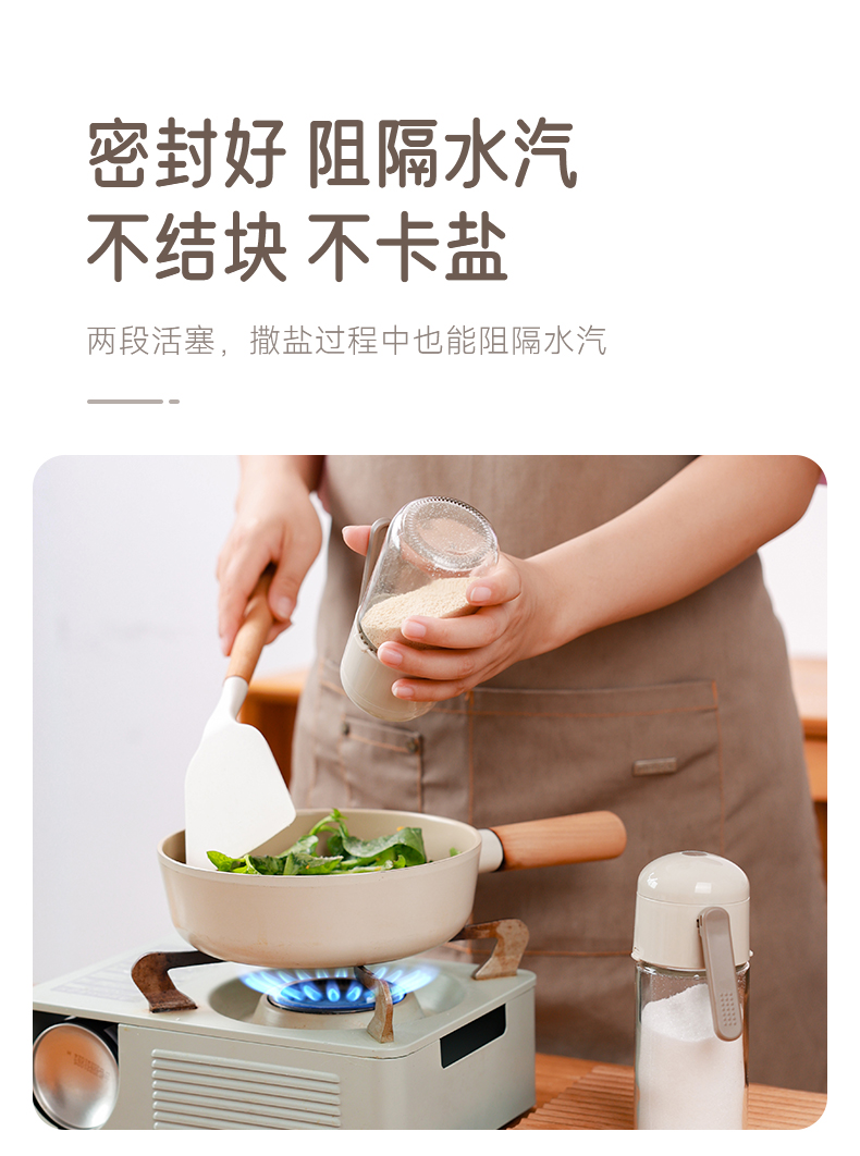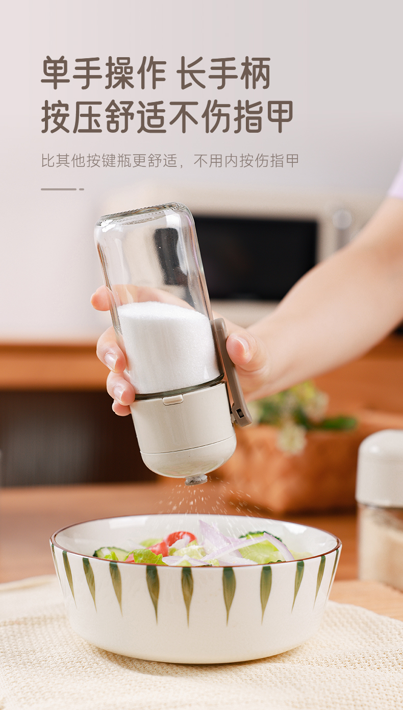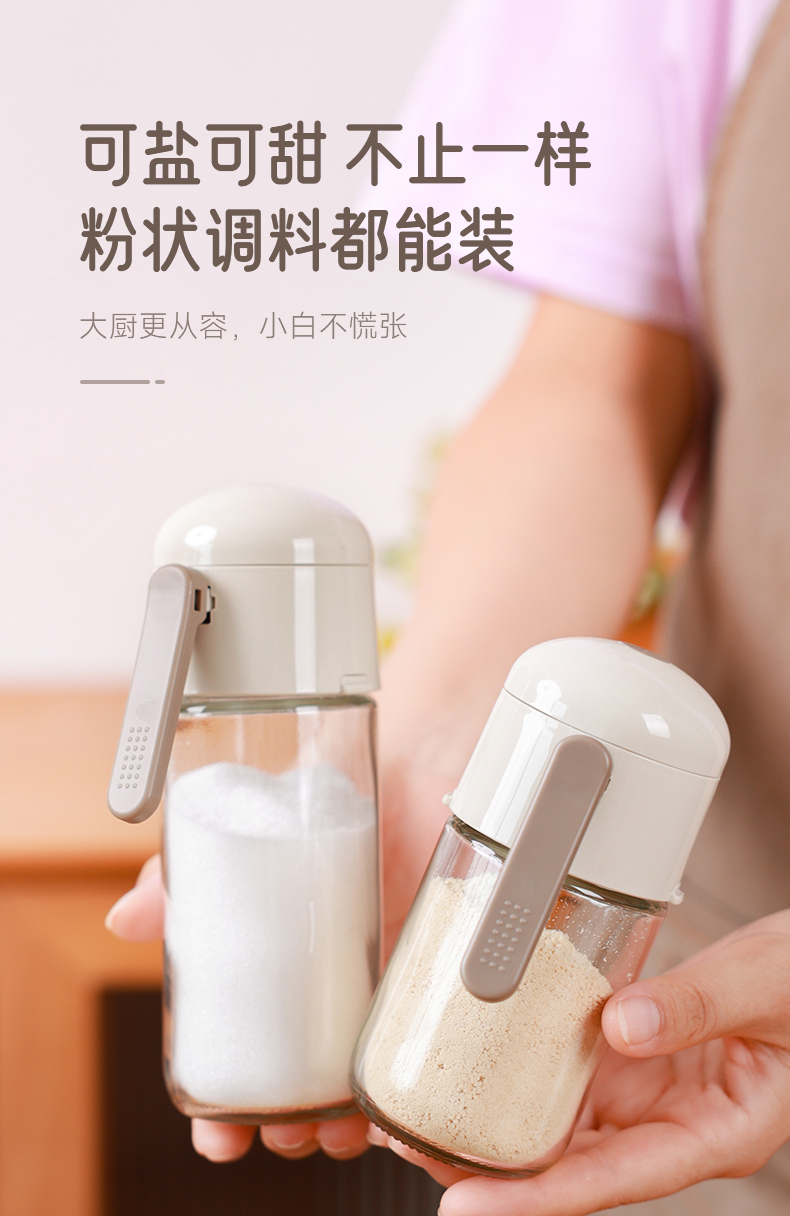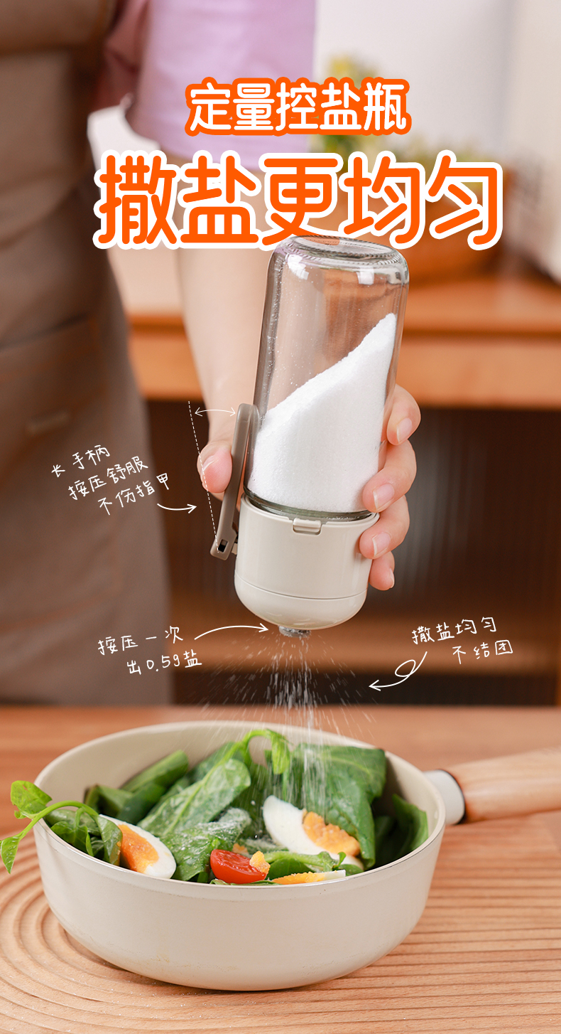 【简约定量调味罐】定量盐罐调料罐盐瓶可控按压式密封调料瓶计量玻璃密封调料器皿
