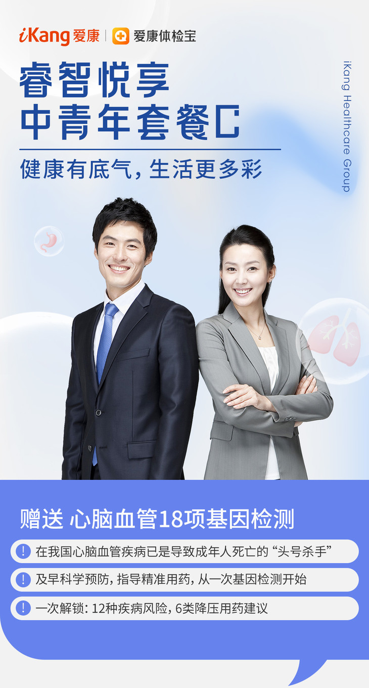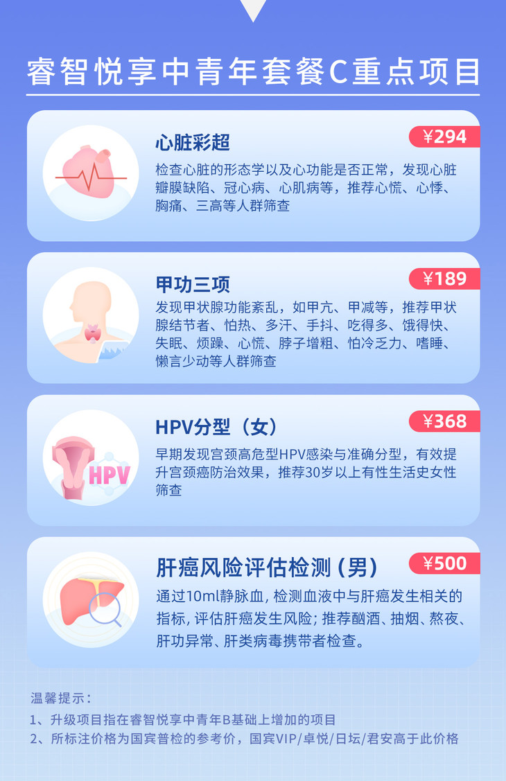 【升级心脏彩超+甲功三项+HPV分型/甘欣安】爱康 睿智悦享中青年体检C