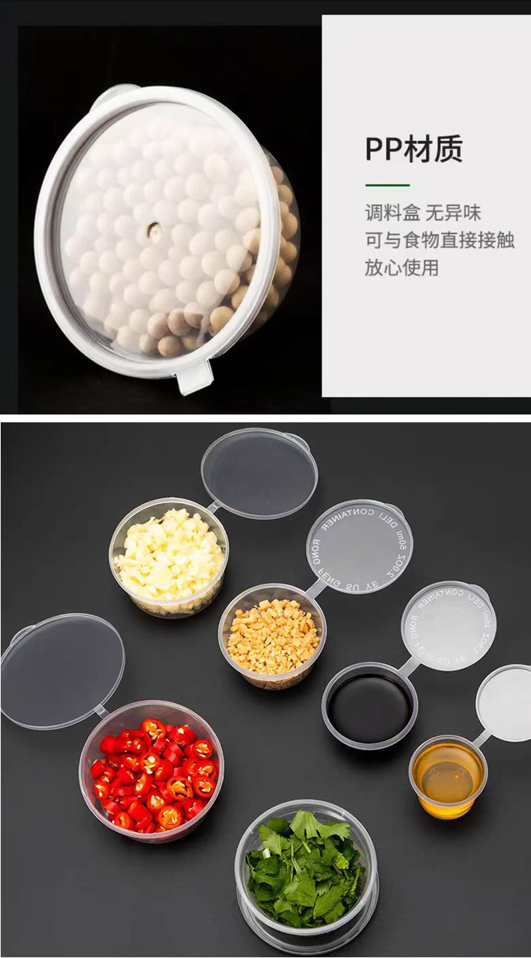 加厚一次性透明酱料盒 外卖打包塑料调料杯带盖密封盒醋酱油辣椒油分装盒1个