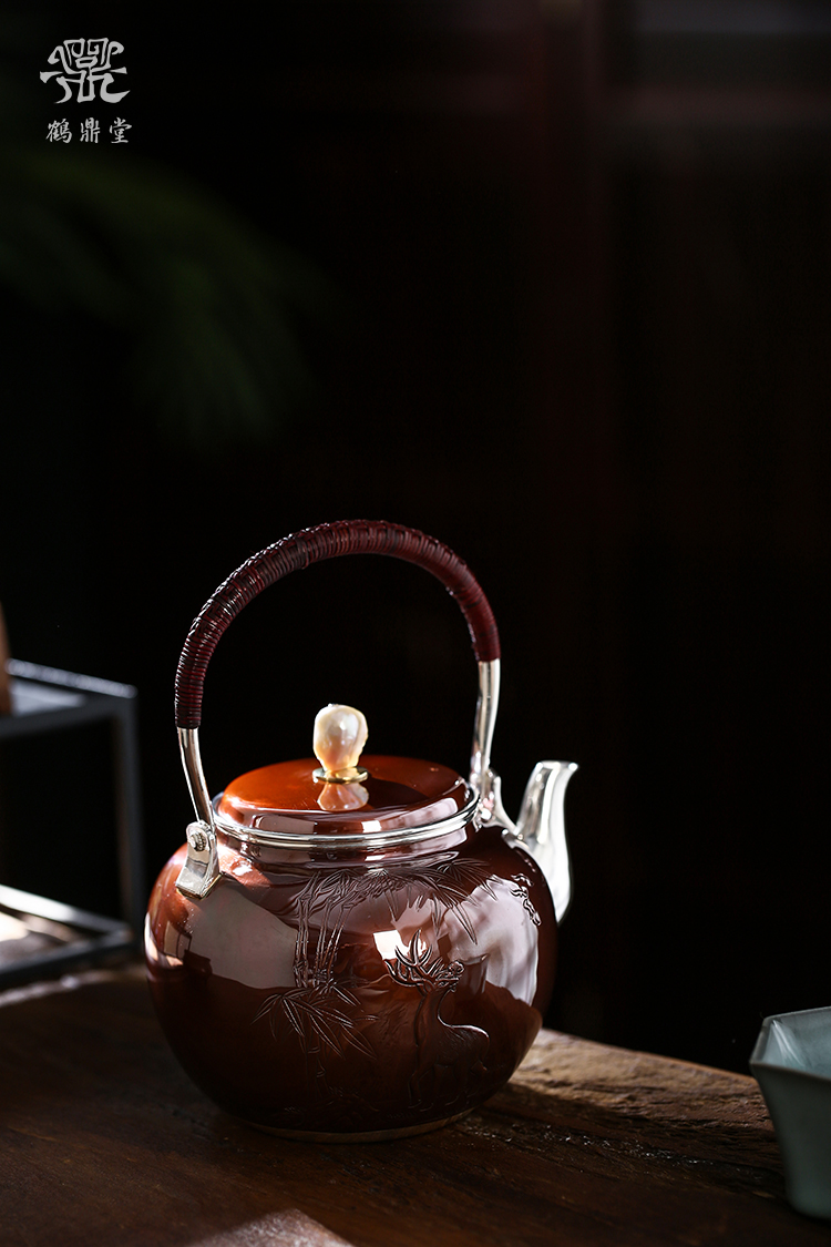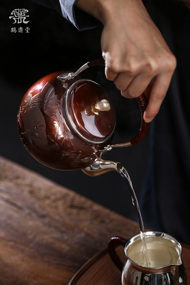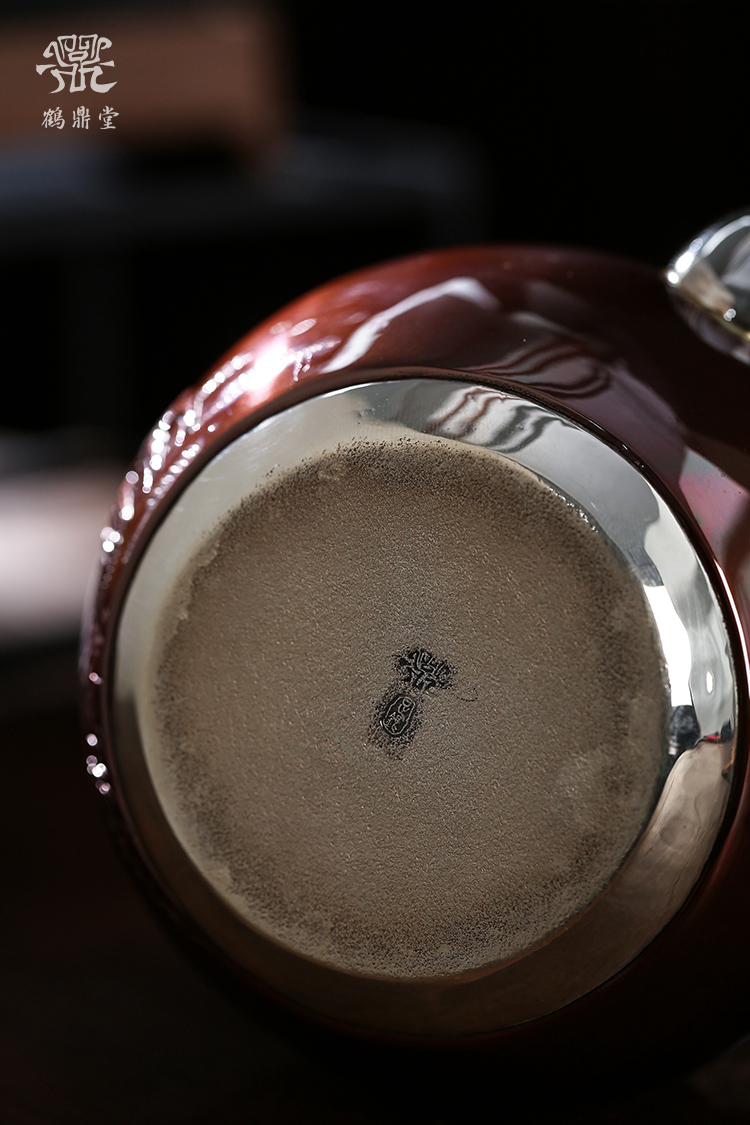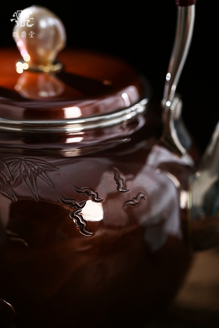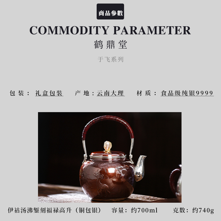 鹤鼎堂银壶于飞系列伊祜汤沸錾刻福禄高升(铜包银)(缺货)