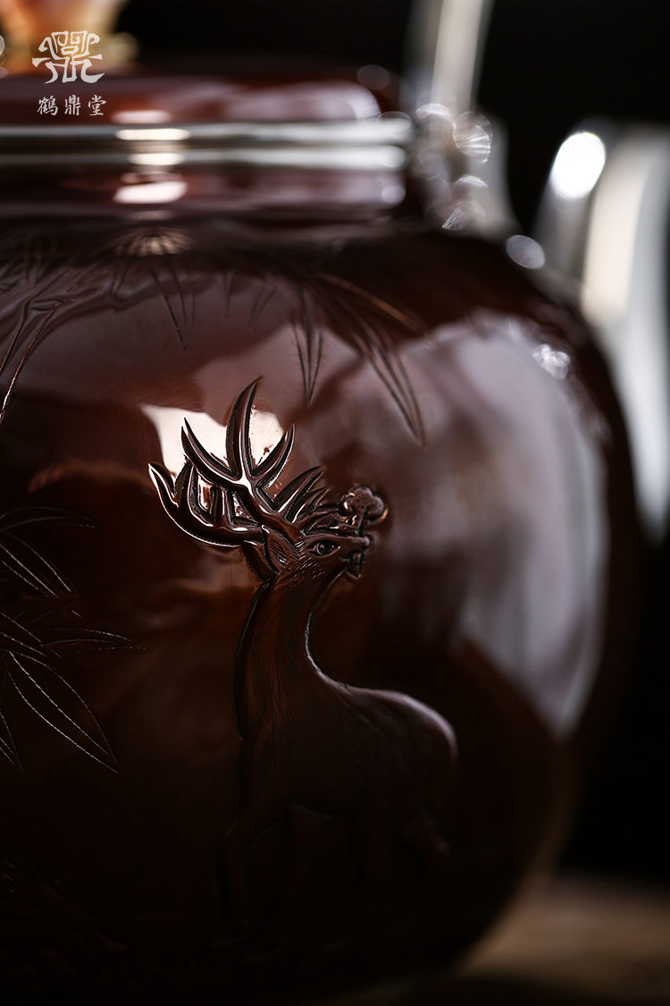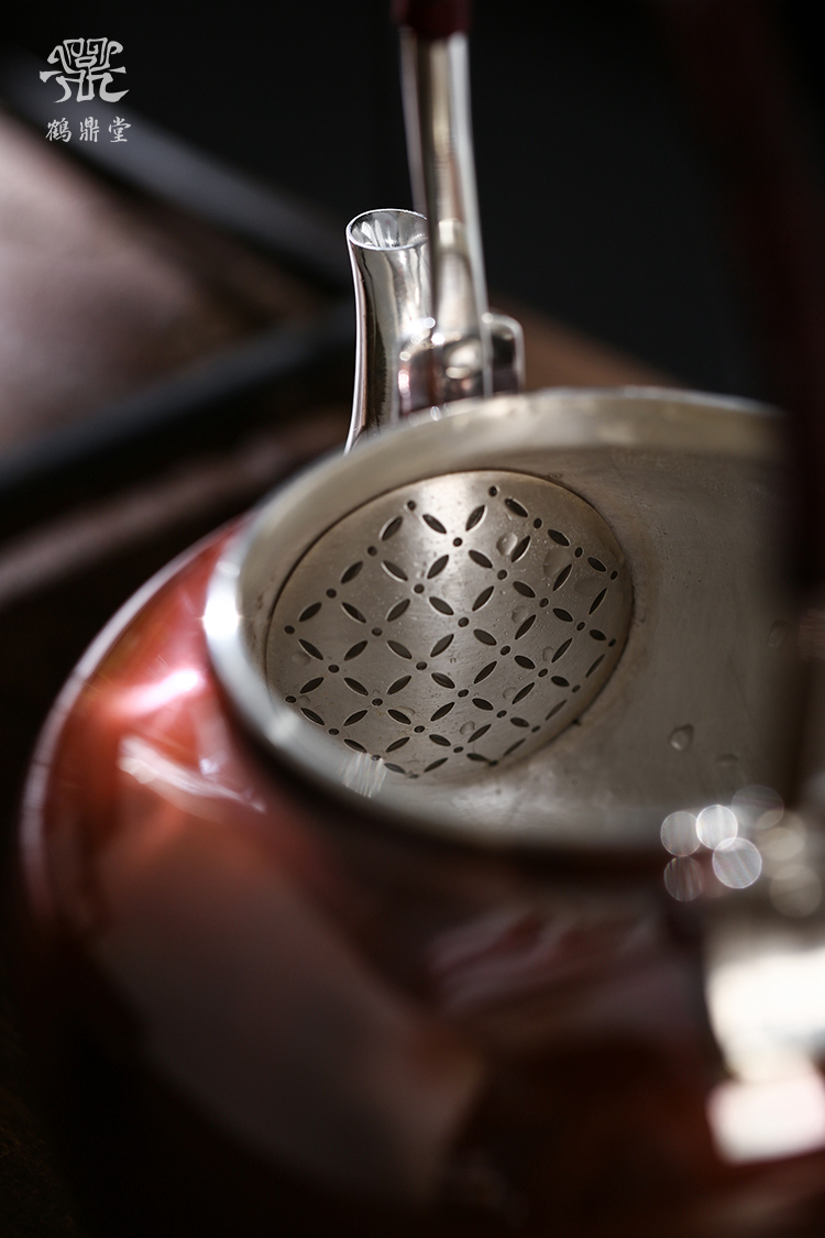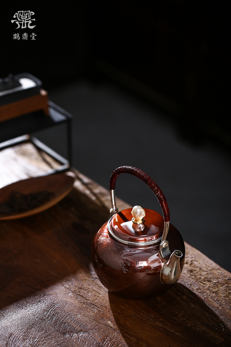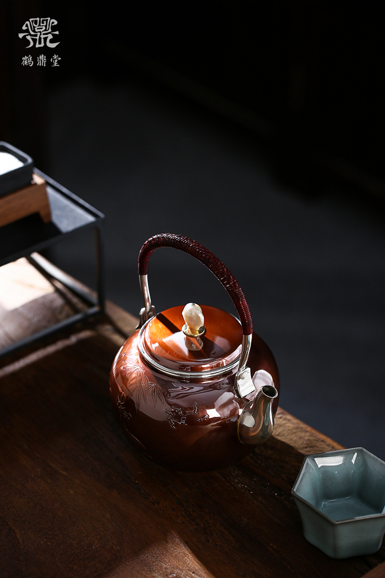 鹤鼎堂银壶于飞系列伊祜汤沸錾刻福禄高升(铜包银)(缺货)