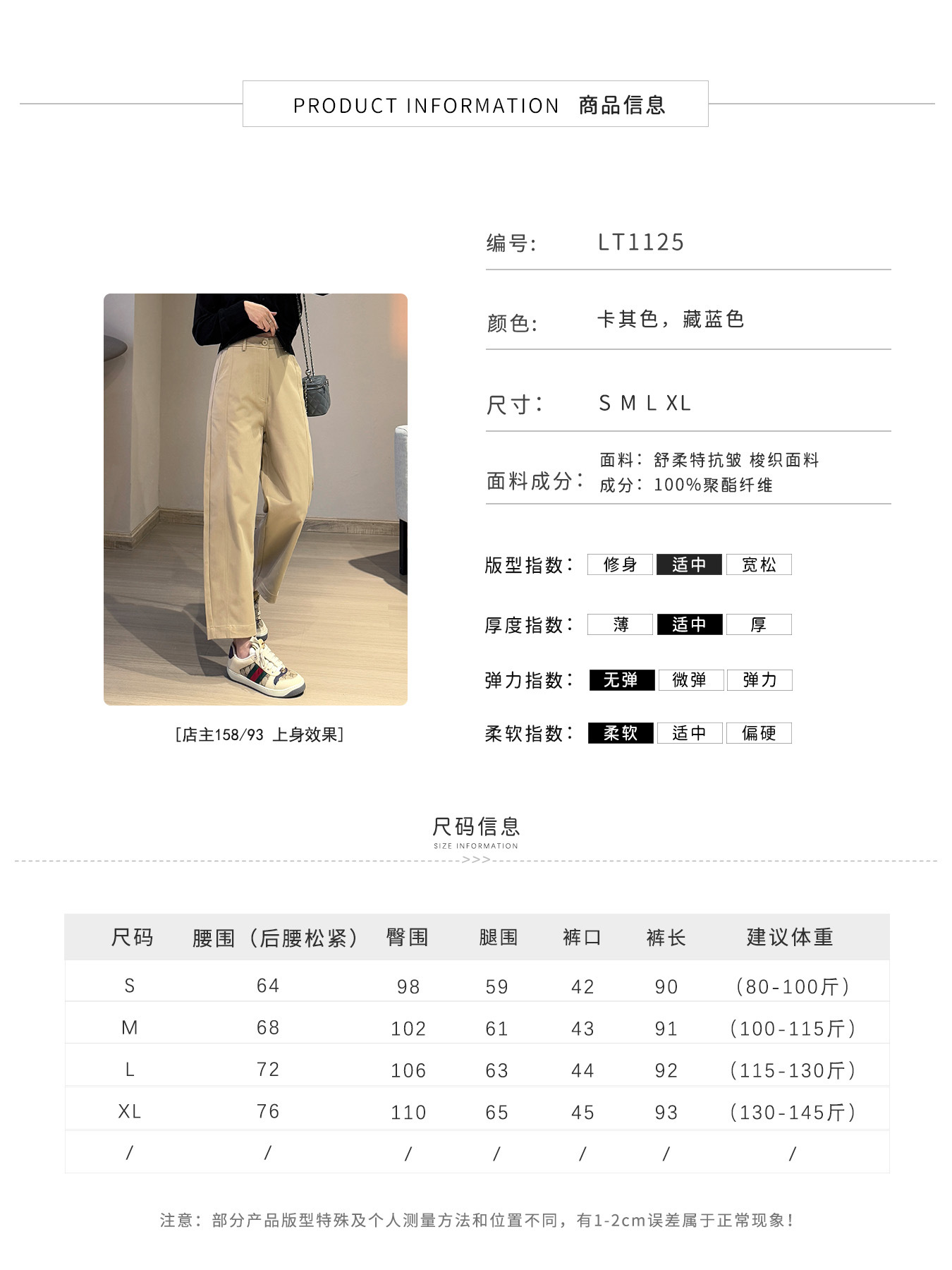 L 腰围72 臀围106 腿围63 脚口44 裤长92 建议体重115-130