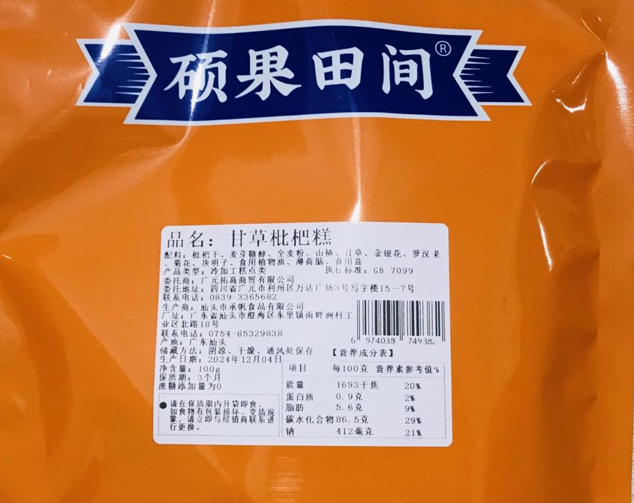 【品名】硕果田间 甘草枇杷糕 口感软糯 清凉酸甜可口 100g*4袋 【规格】100g*4袋 【产地】国内 【保质期】90天 【发货包装】独立包装 【发货地】广东 【发货快递】普通快递随机发 【不发货区域】新疆、西藏、港澳台 【补邮费地区】内蒙古、宁夏、甘肃、青海+5元 【发货时效】48-72小时,周末节假日顺延 |