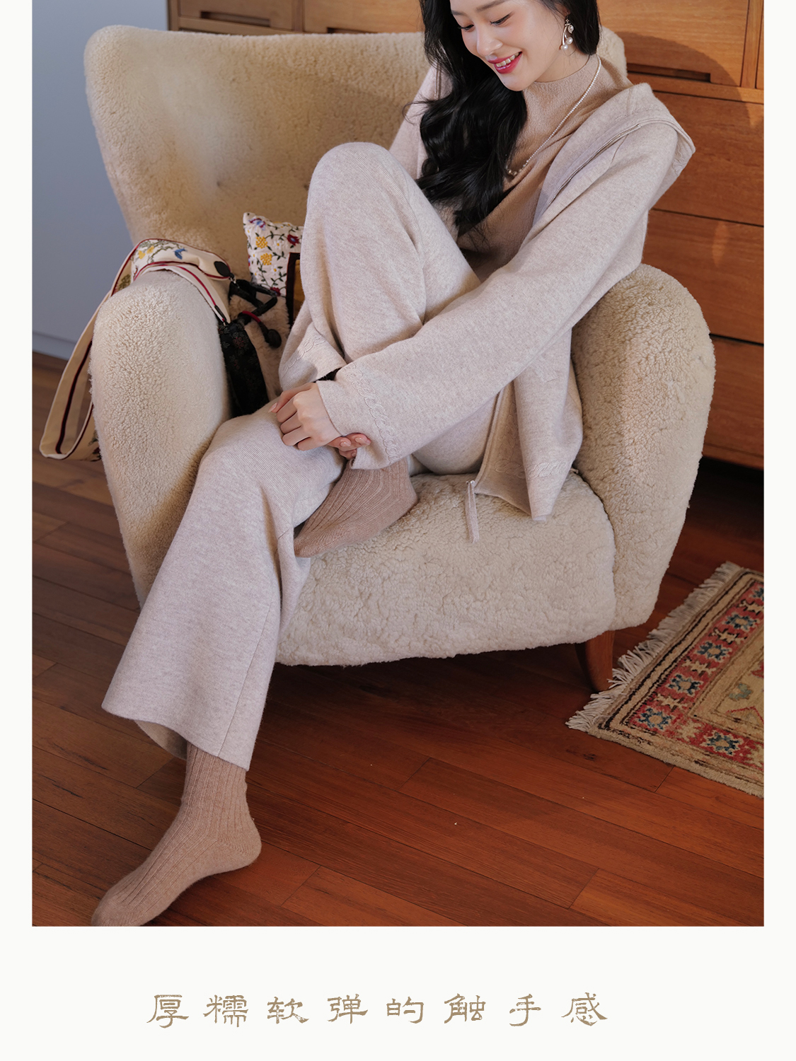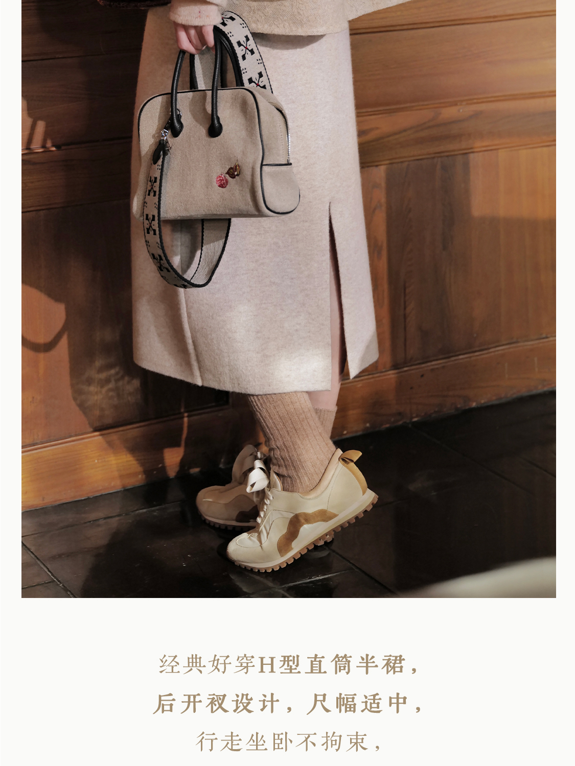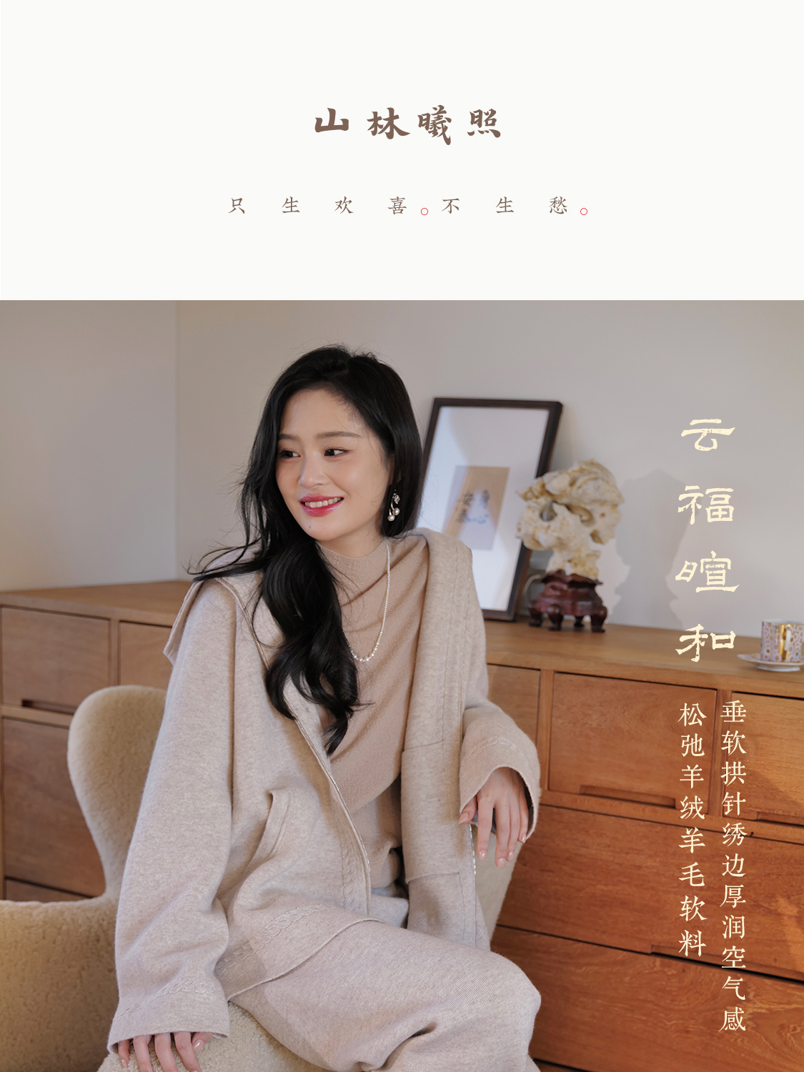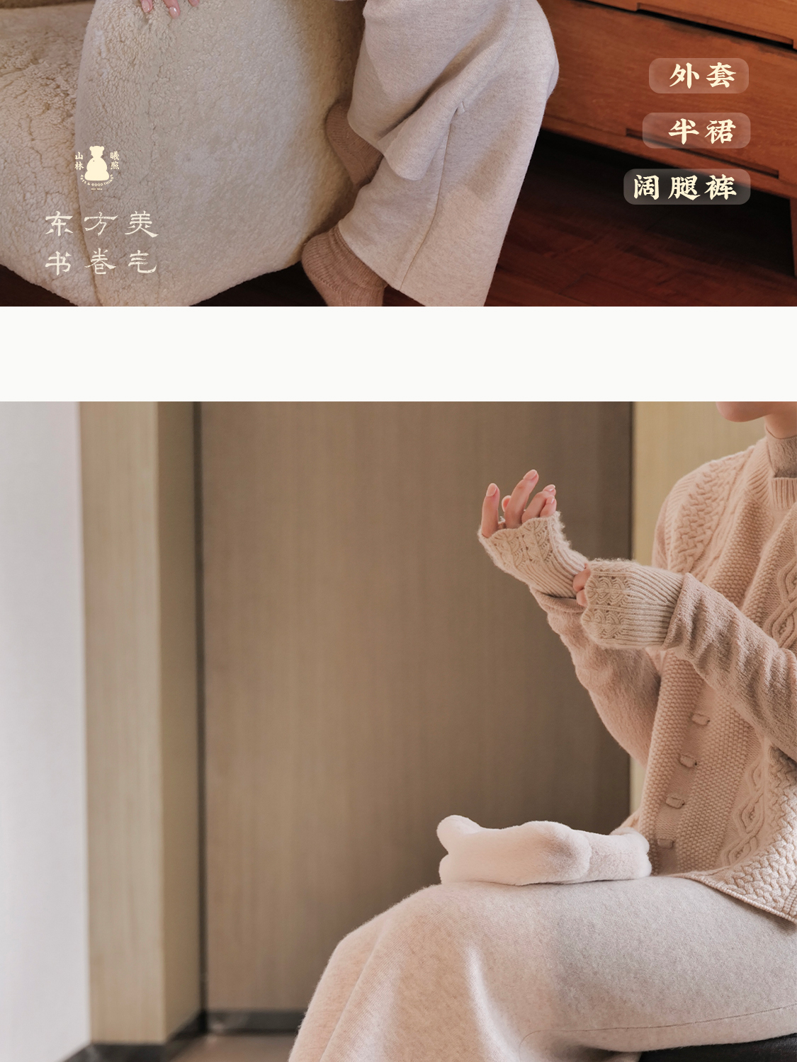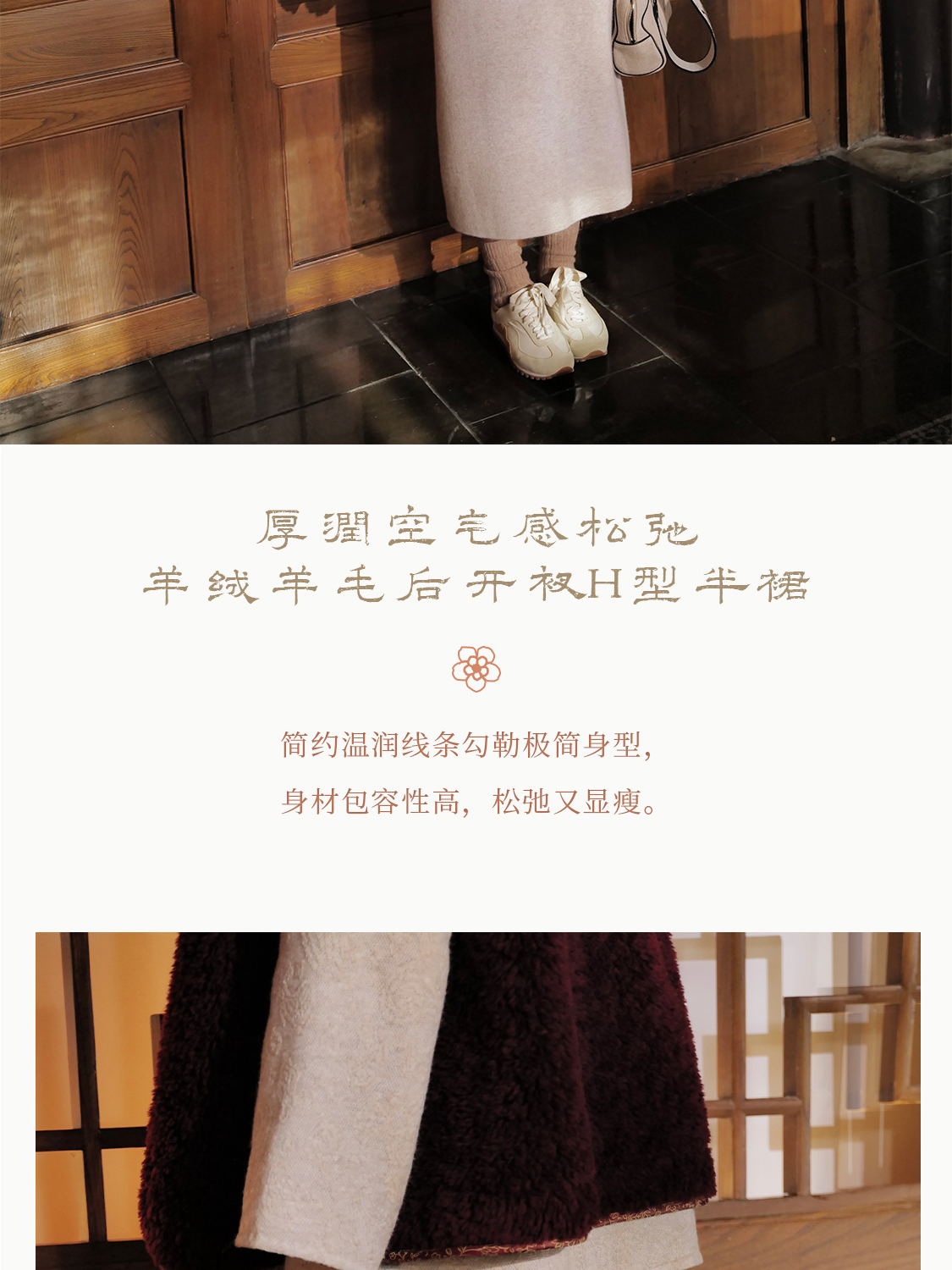 云福暄和垂软拱针绣边厚润空气感松弛羊绒羊毛软料外套半裙阔腿裤
