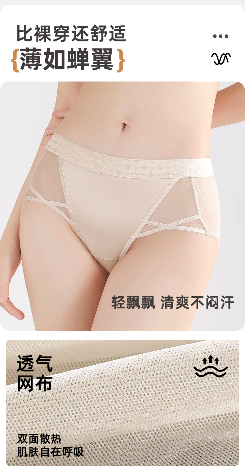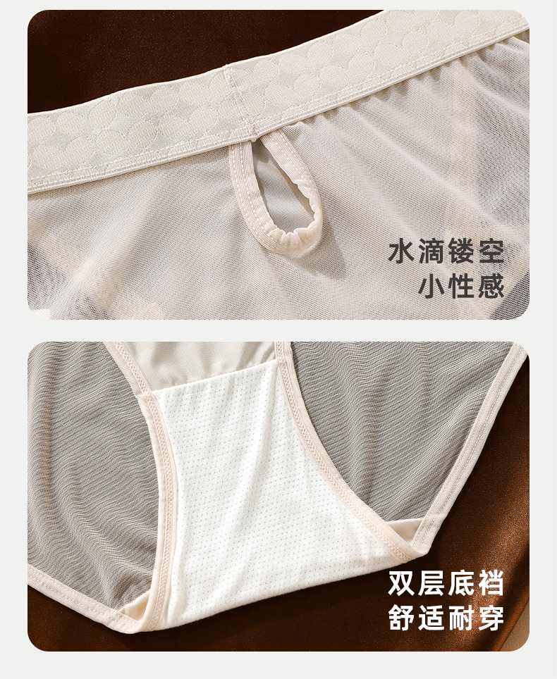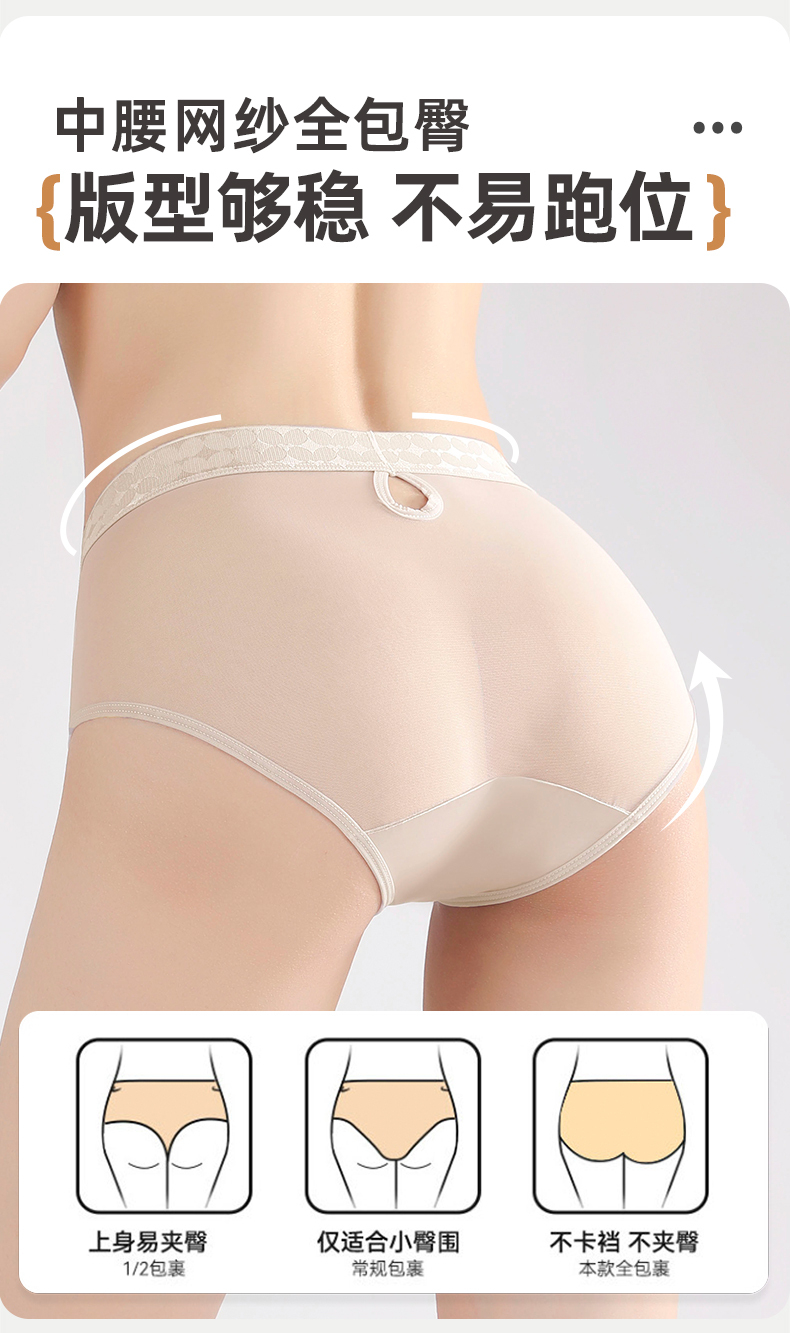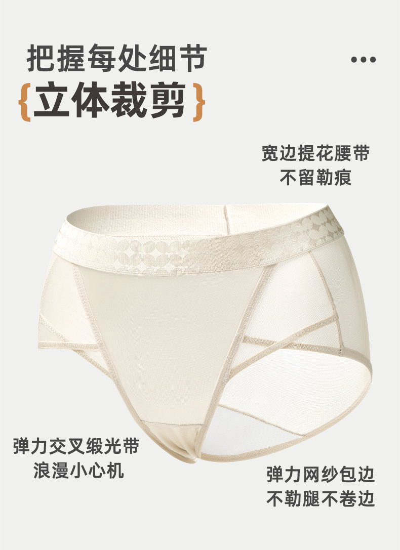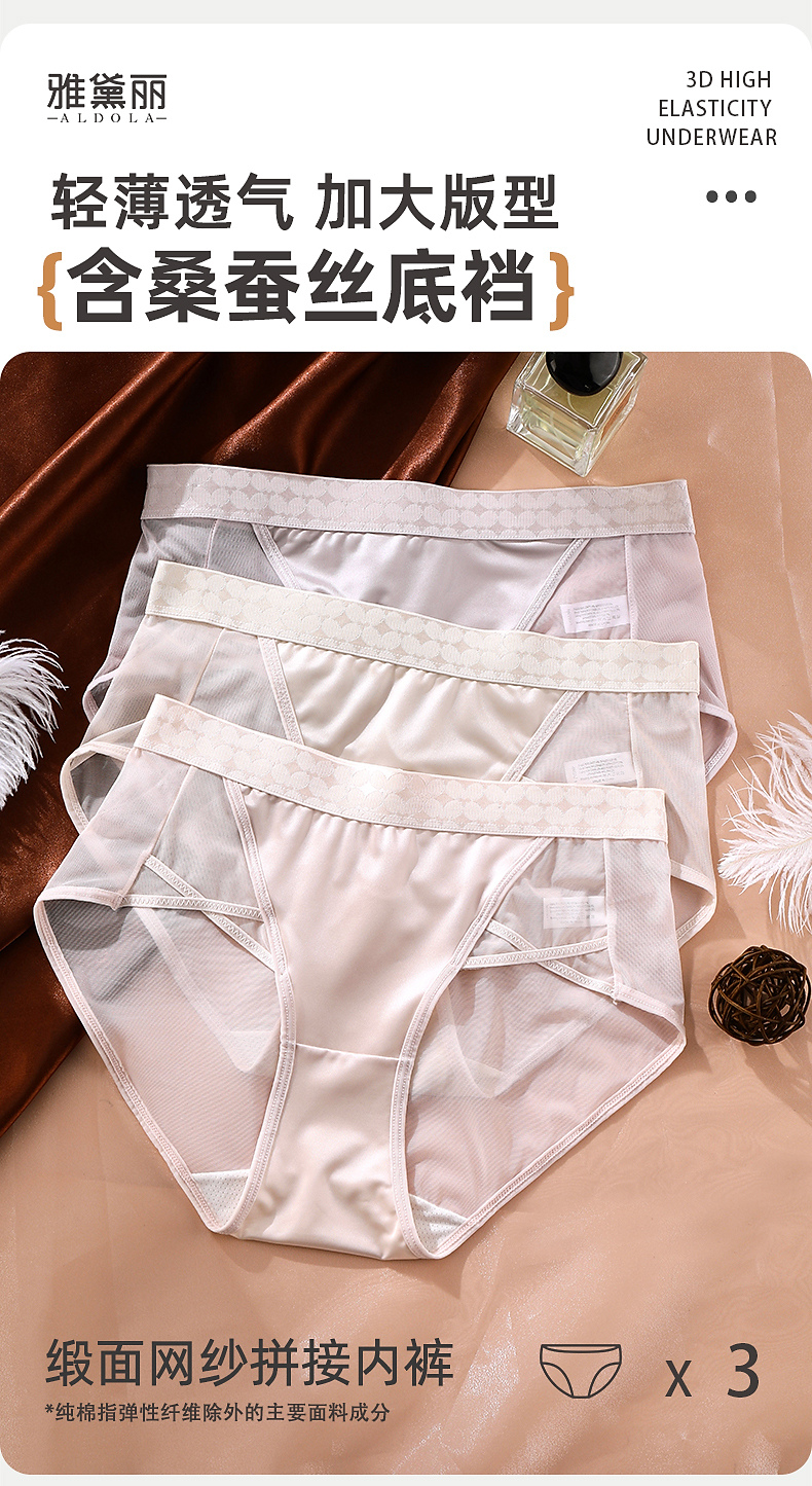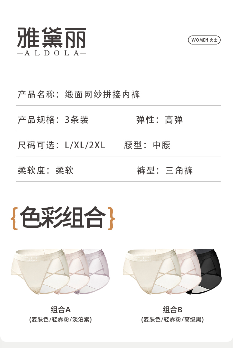 【3条装】雅黛俪女士内裤性感蕾丝缎面中腰三角裤加长抑菌裆底裤头