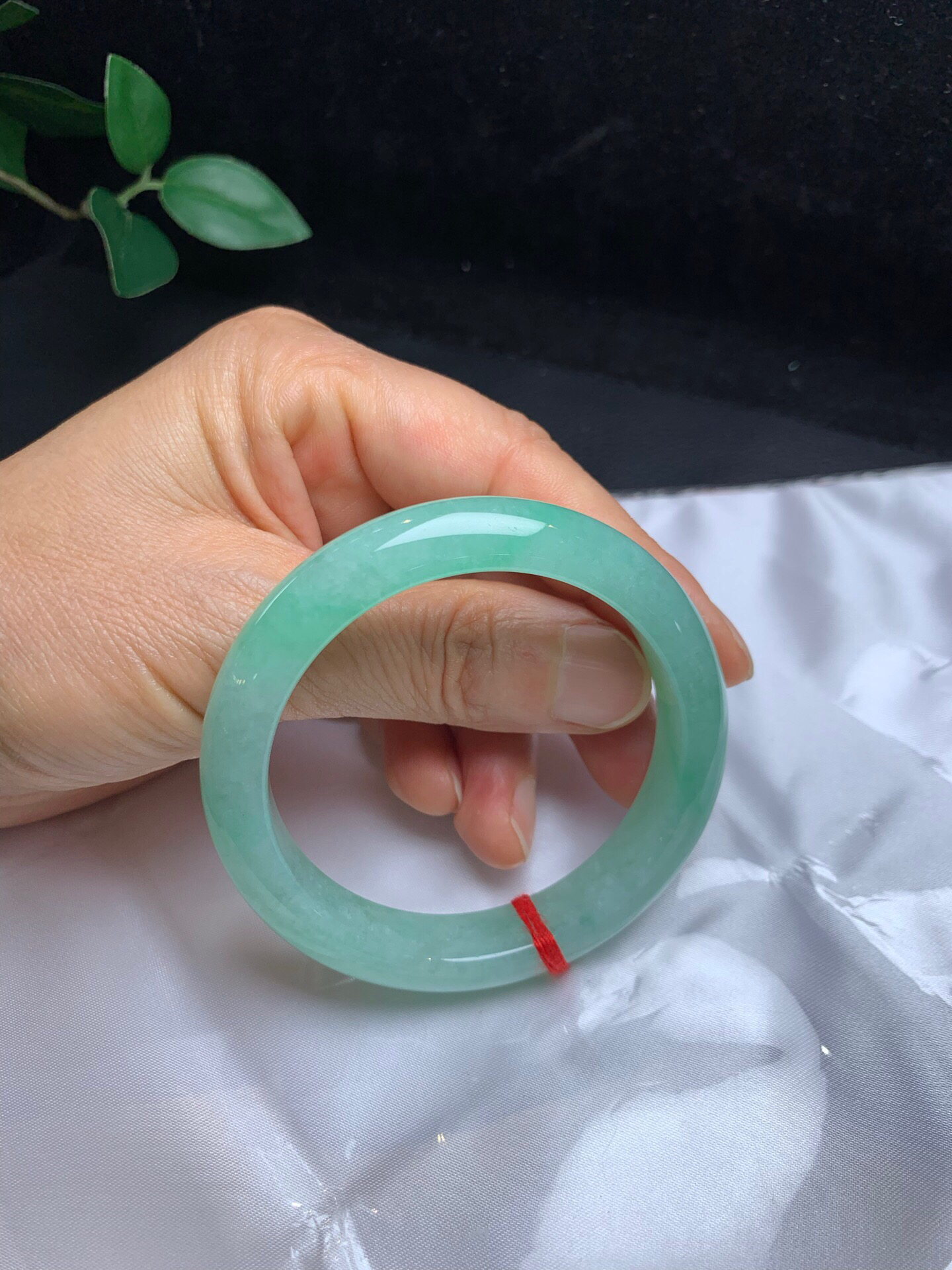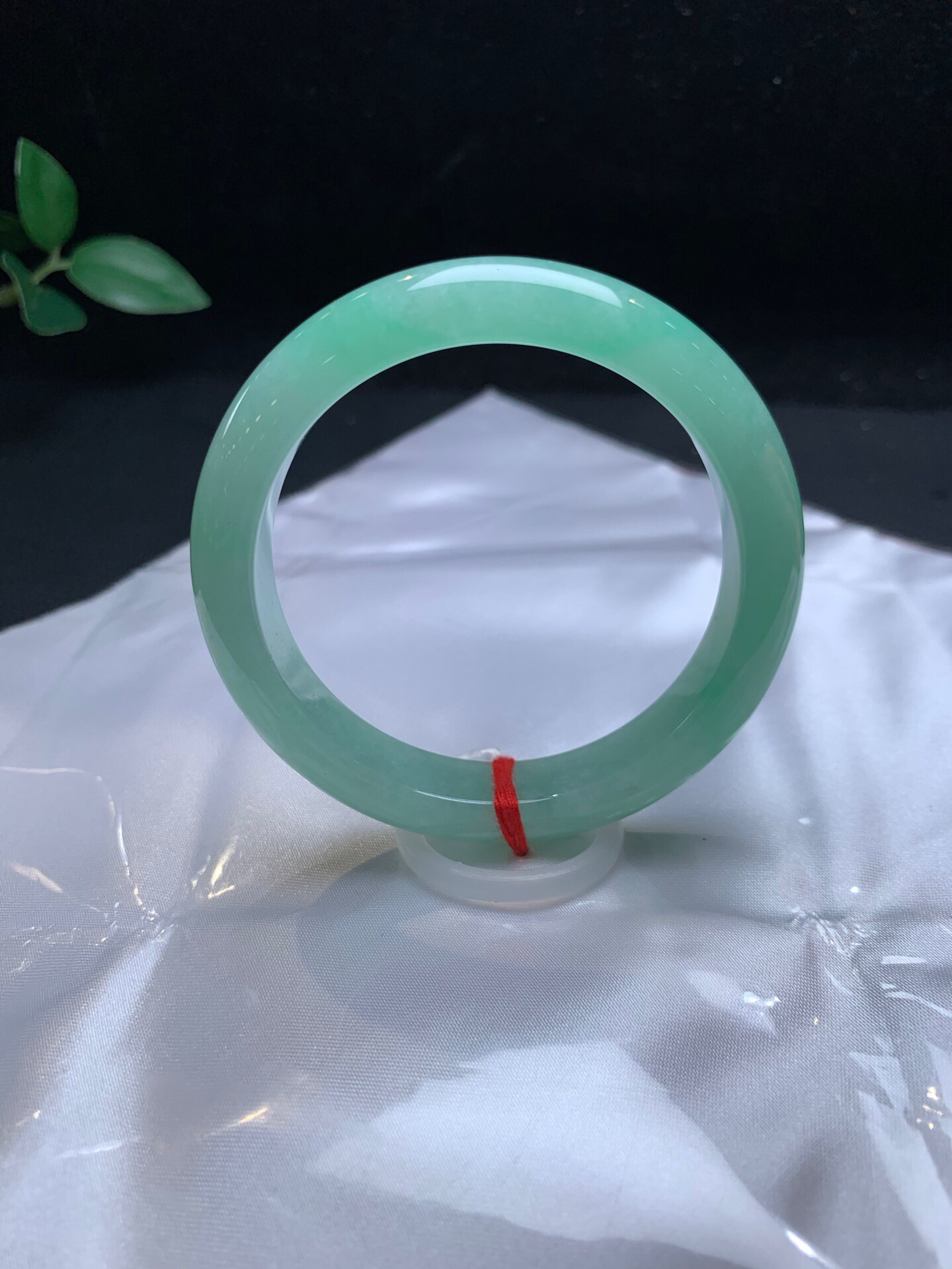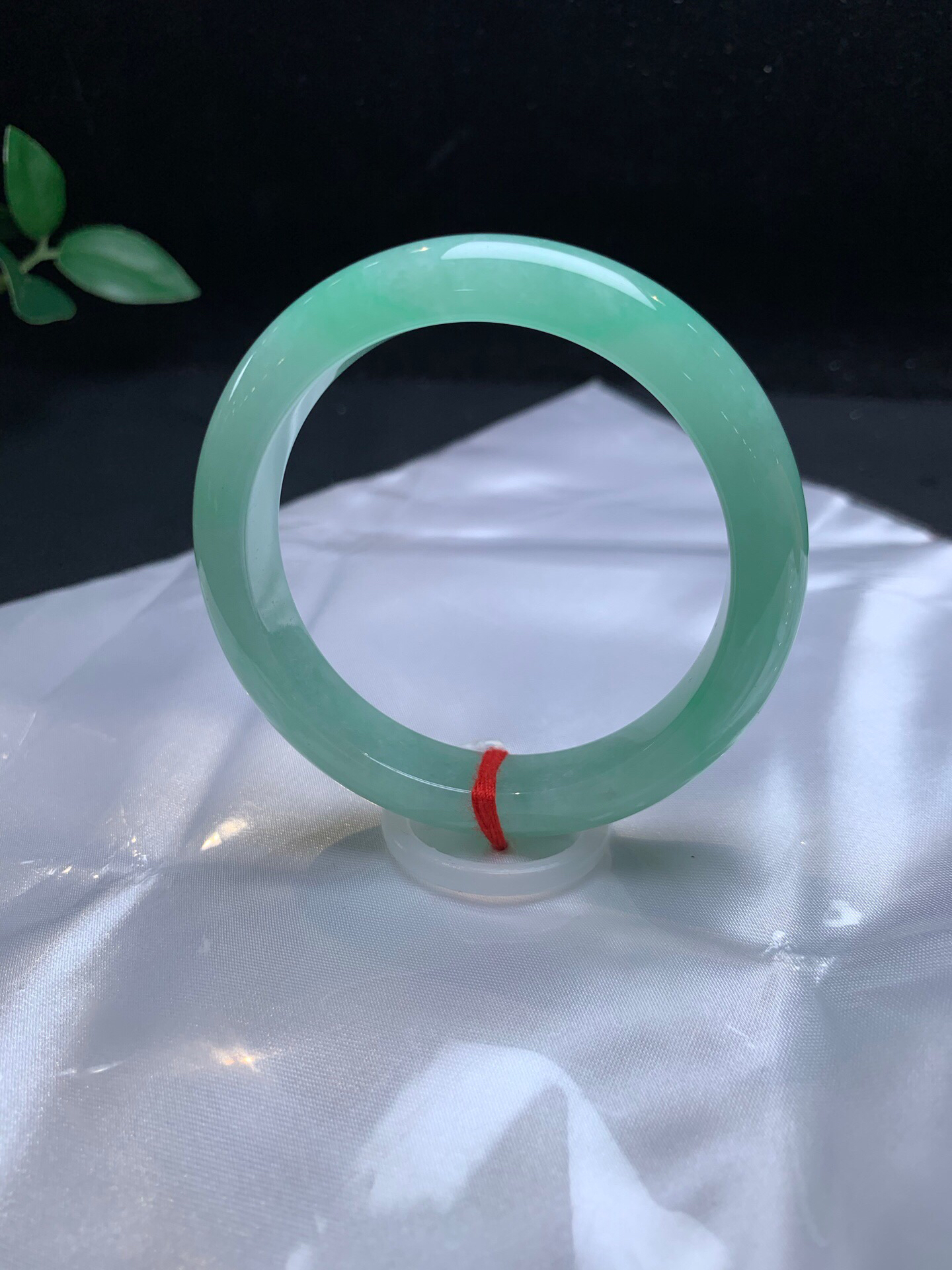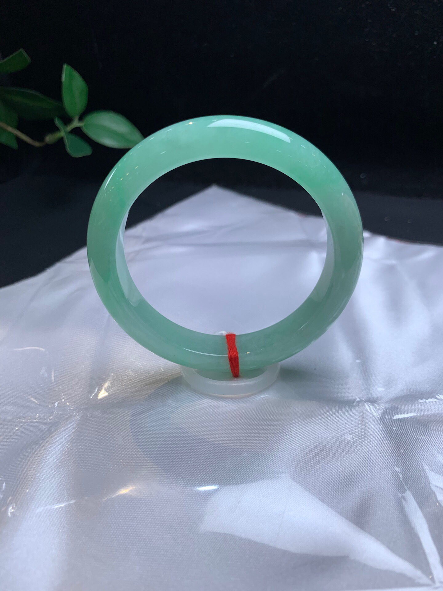 612895,52.5甜绿底手镯,11.6-7.8mm,整体带绿底色,小清新款,润润的,清新秀美。上手漂亮,超值价💰60800 #优石客珠宝#香玉荟萃