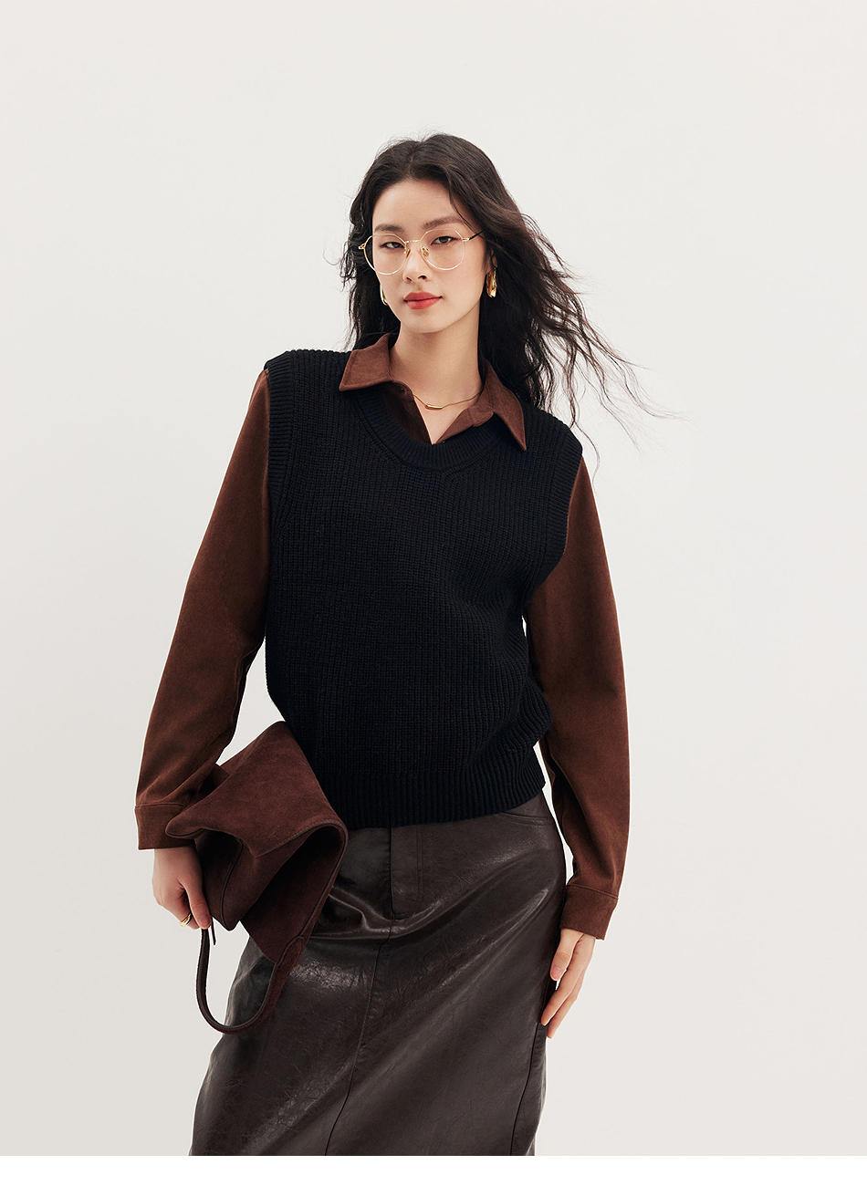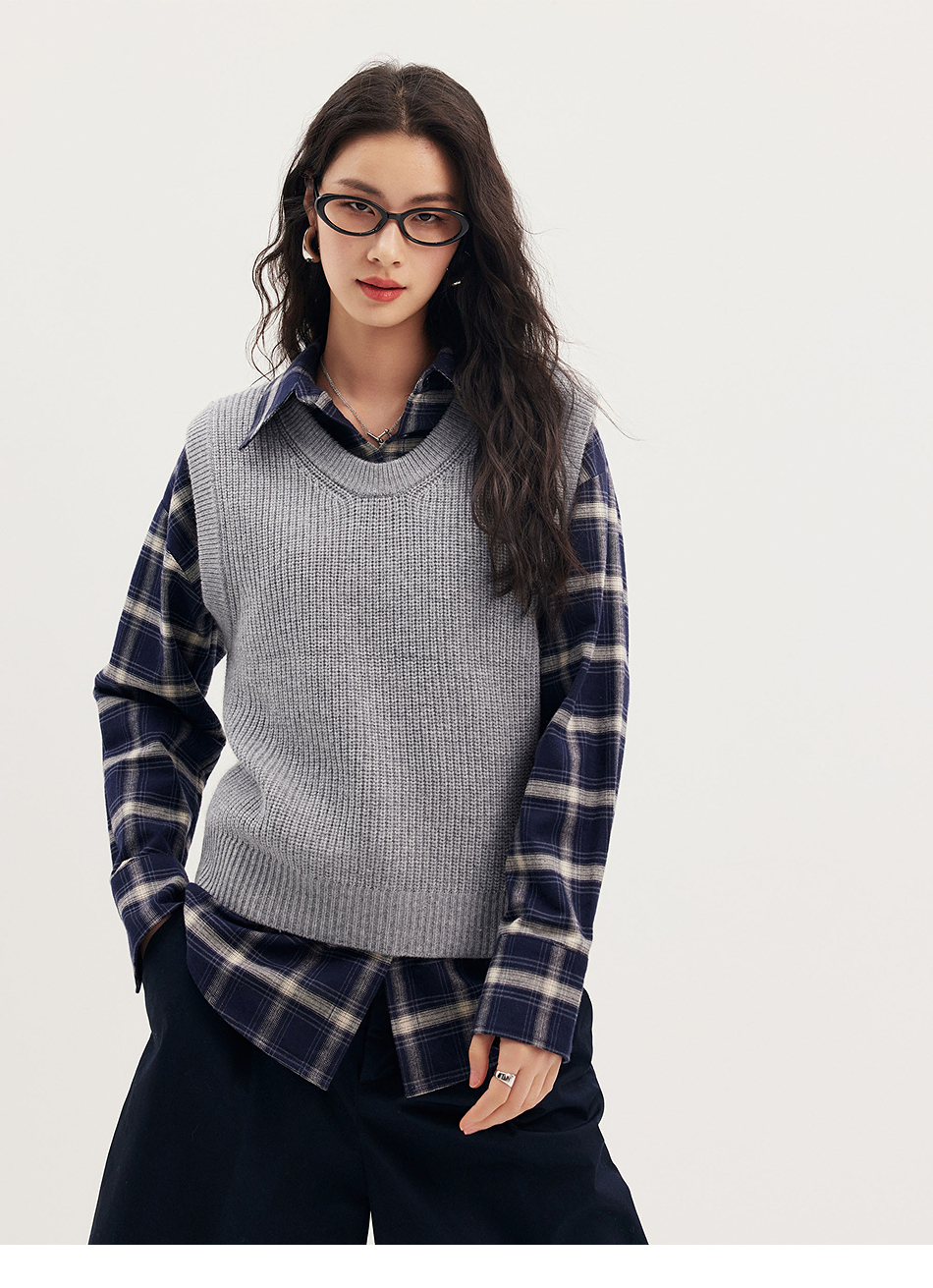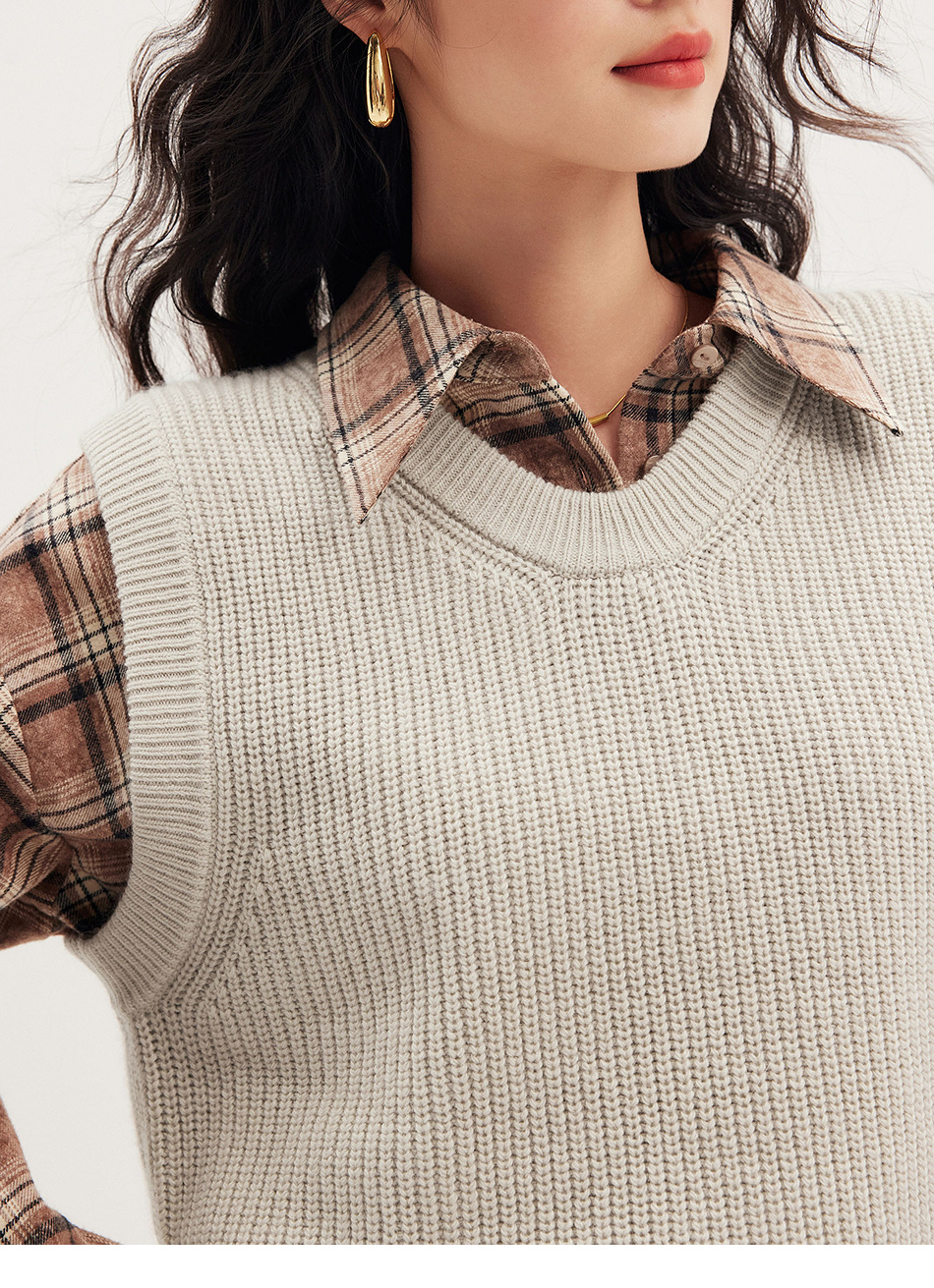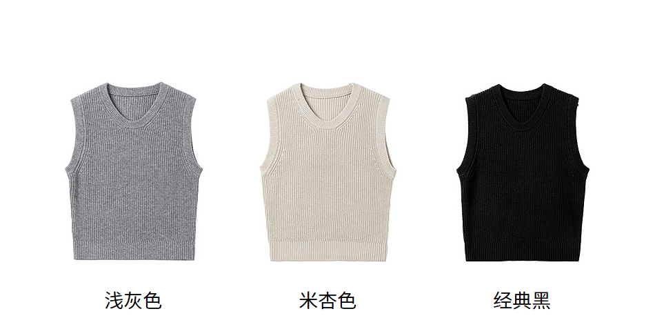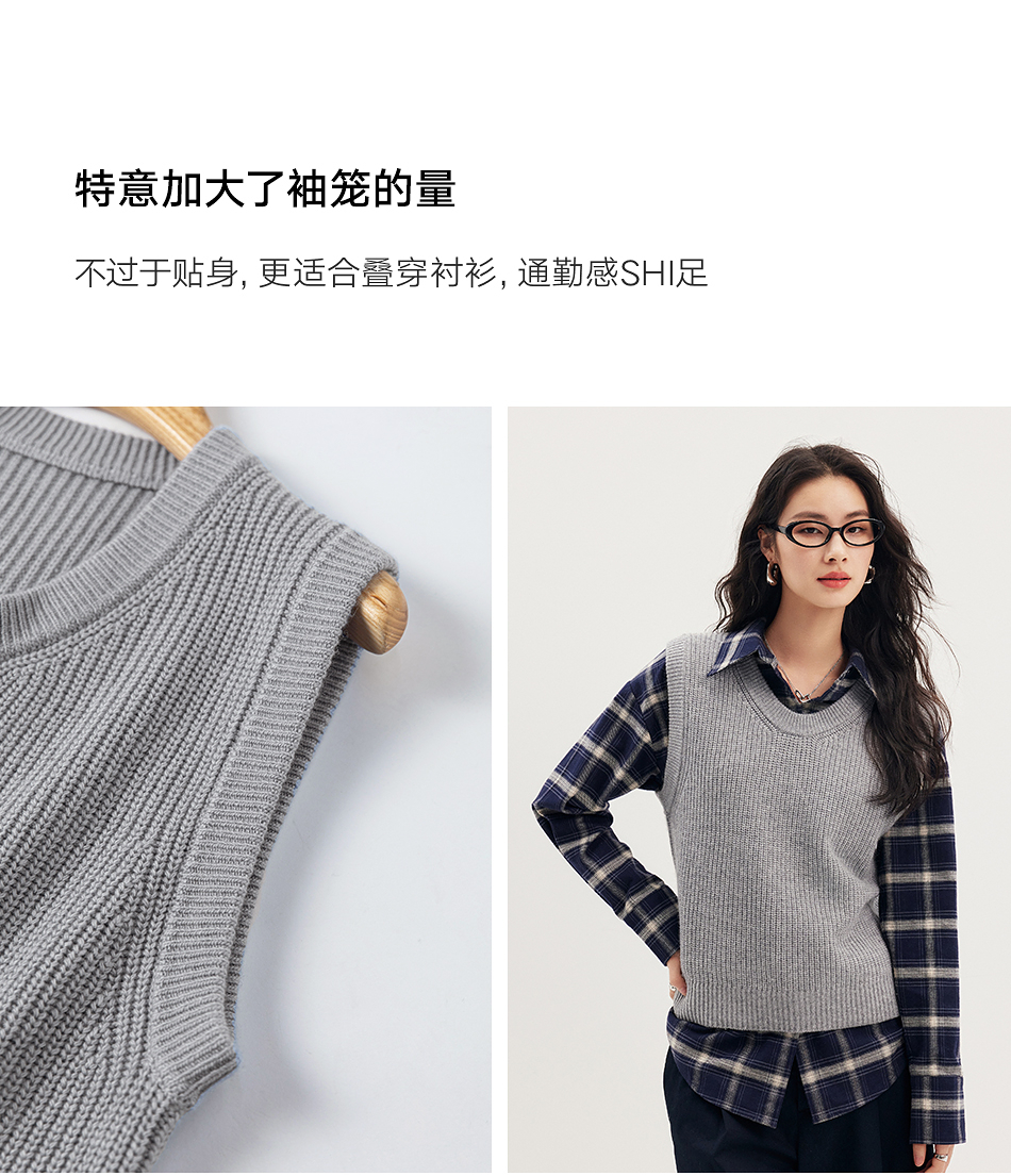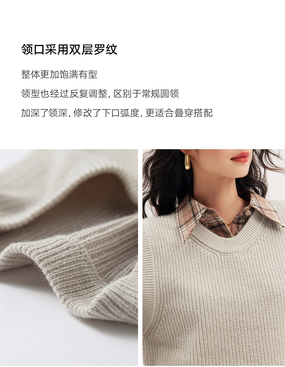 棉仓346699004-vip初棉方圆领羊毛混纺薄款马甲