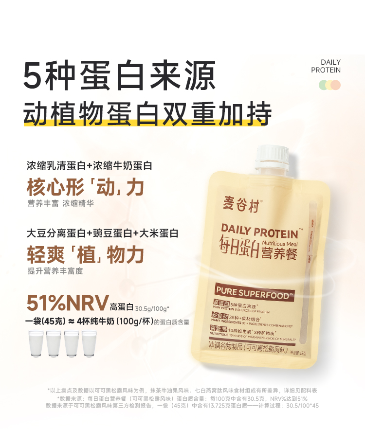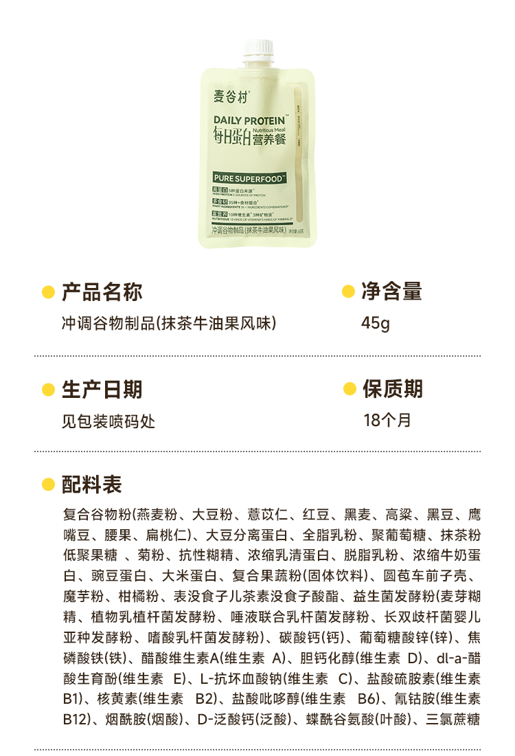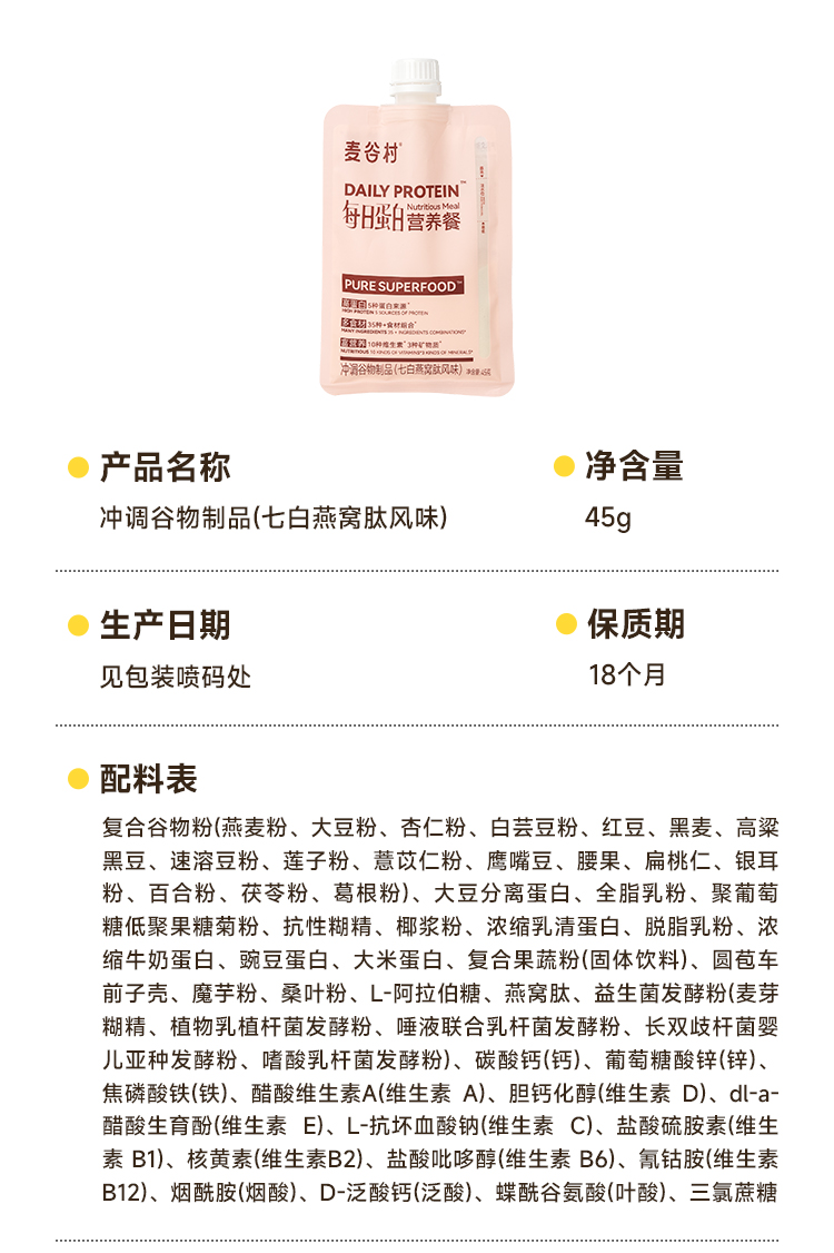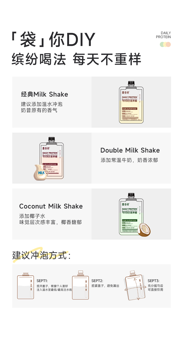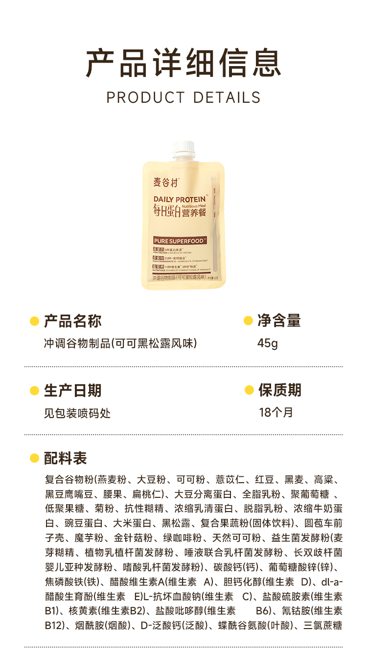 麦谷村爆料超模代餐奶昔粉蛋白代餐饱腹食品营养主食轻食代餐粉 45g/袋
