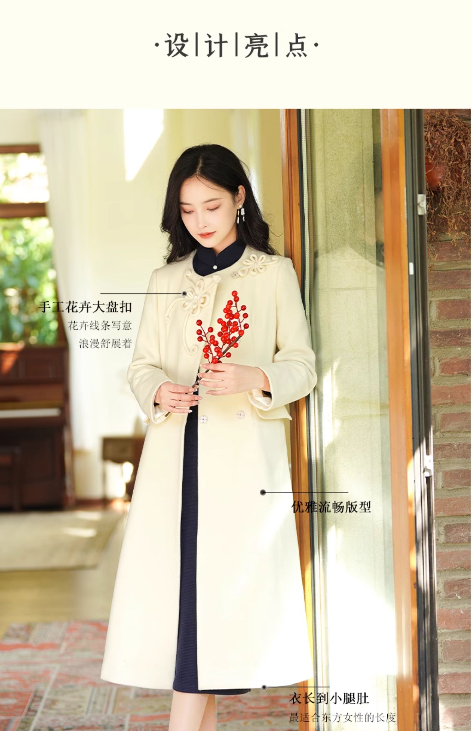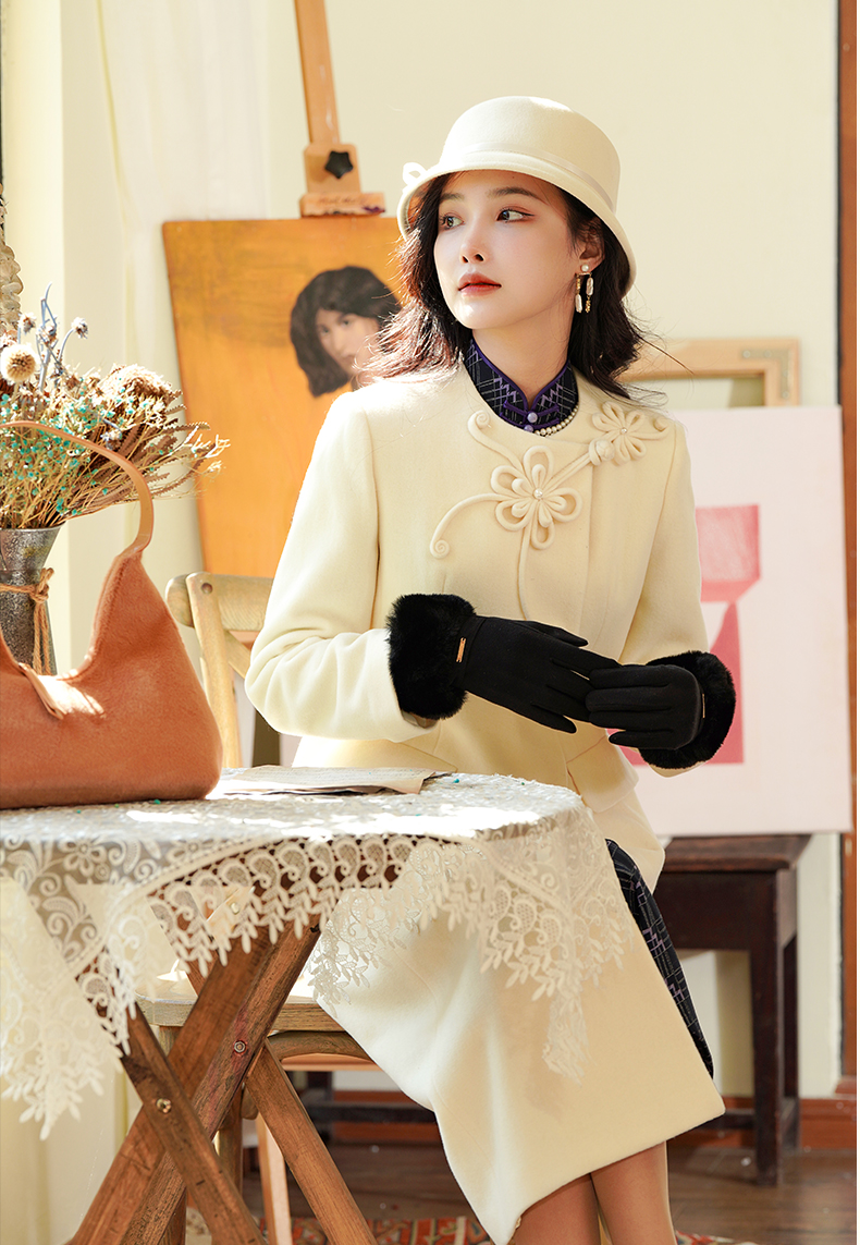逸红颜 风禾 2025秋新品纯羊毛大衣新中式外套旗袍外搭