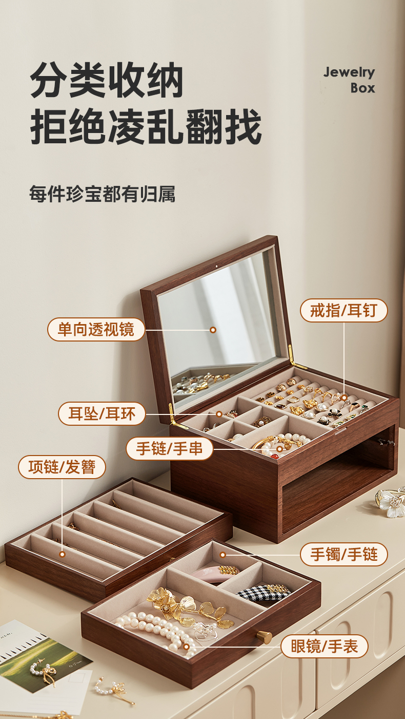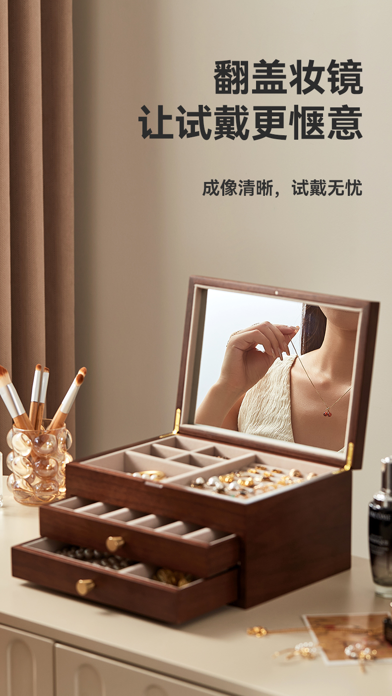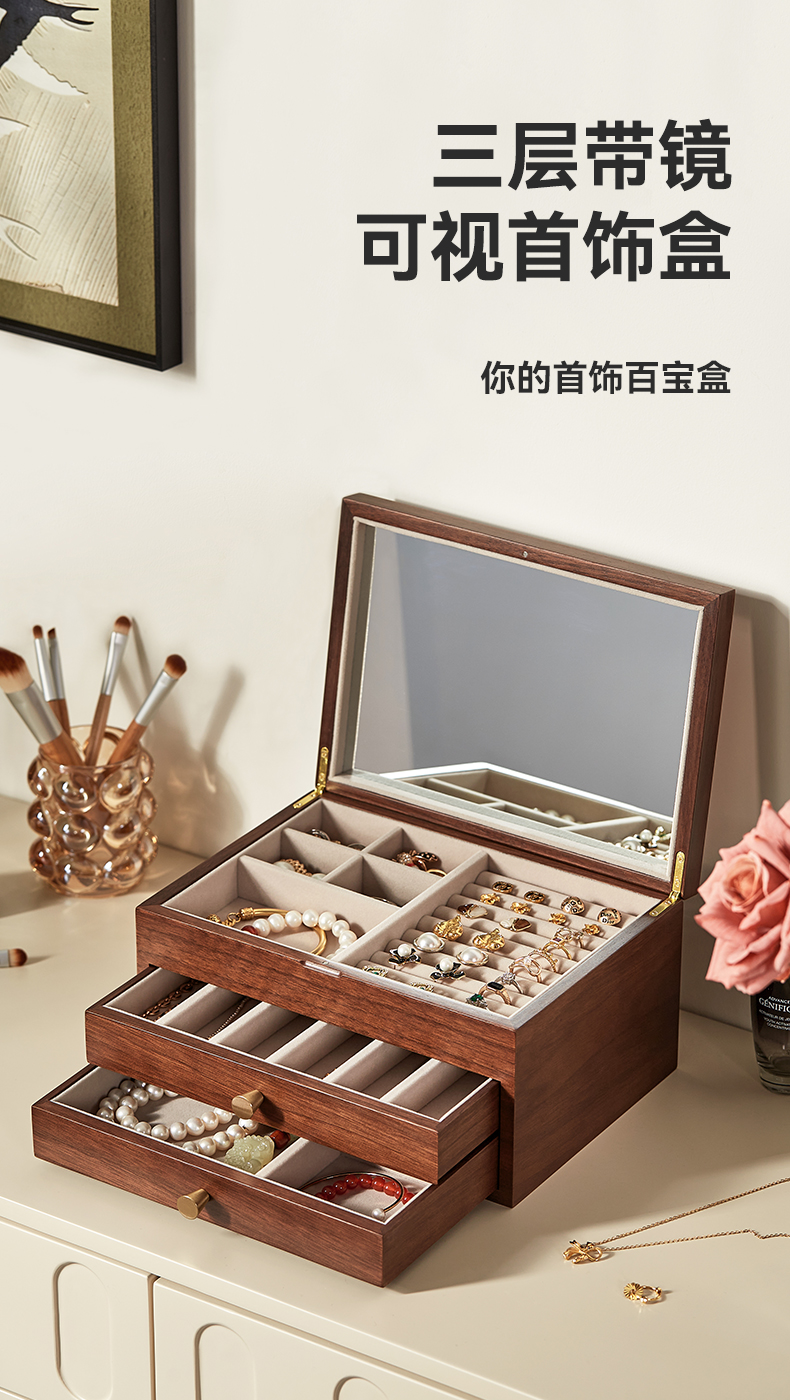初心| 半透视三层带镜首饰盒
