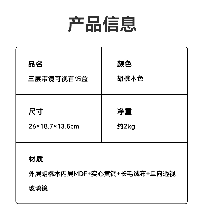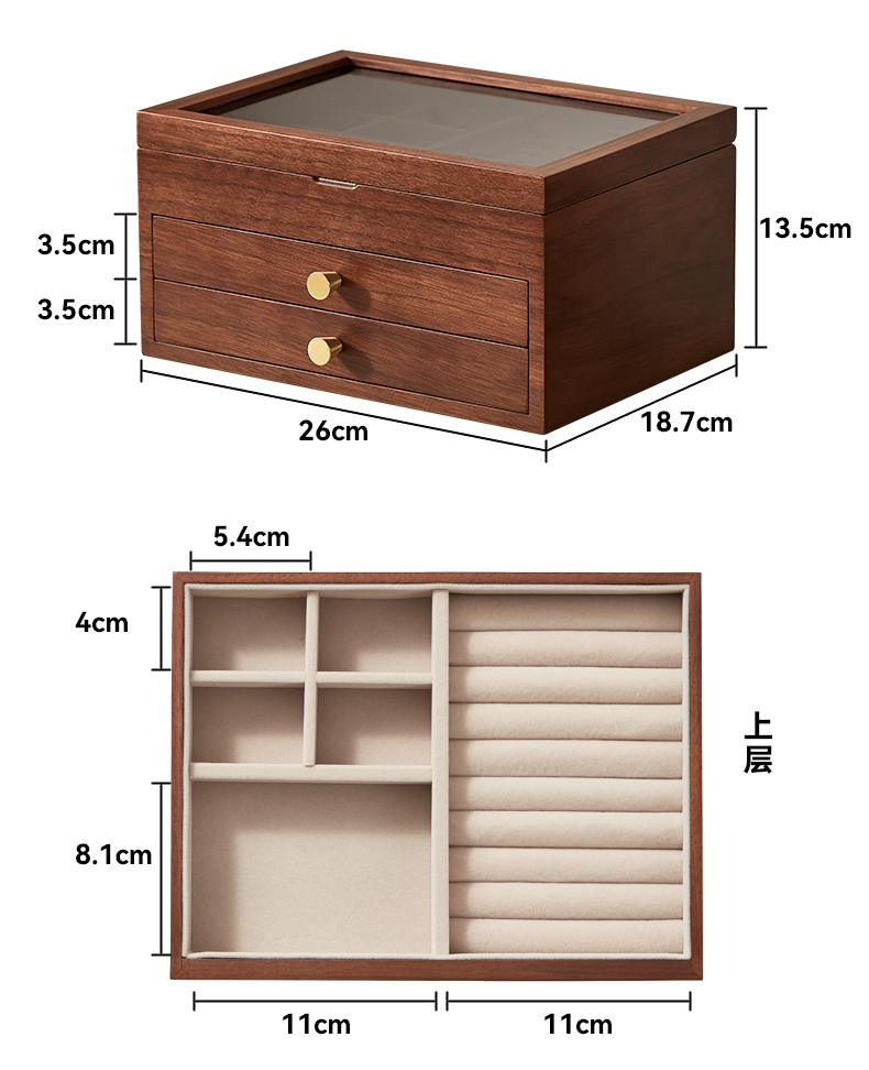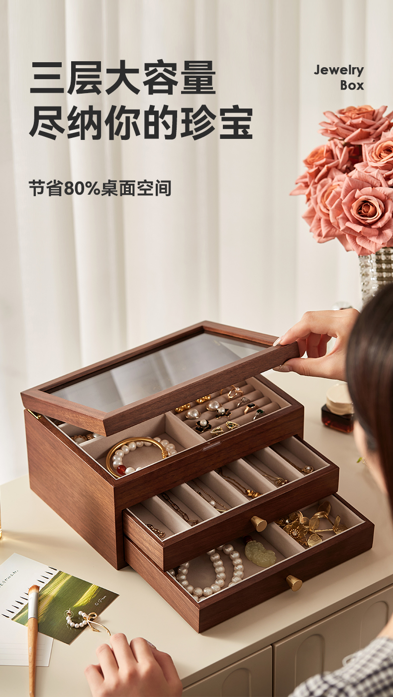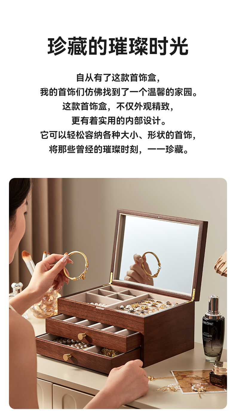 初心| 半透视三层带镜首饰盒