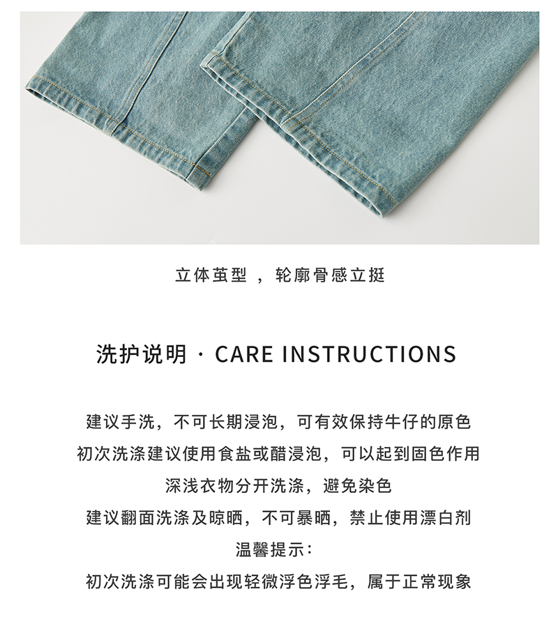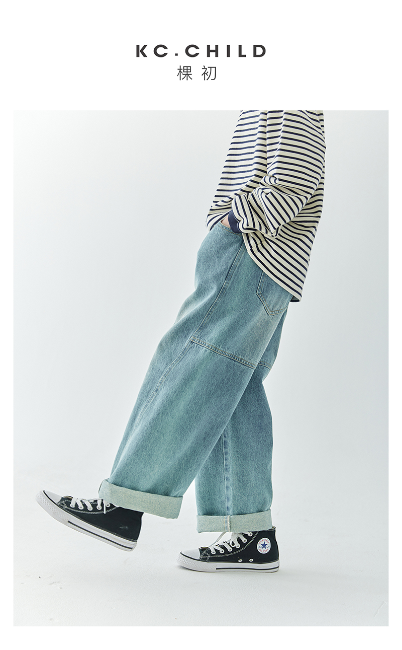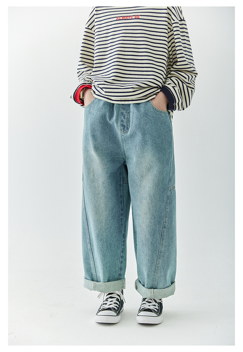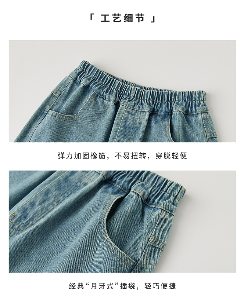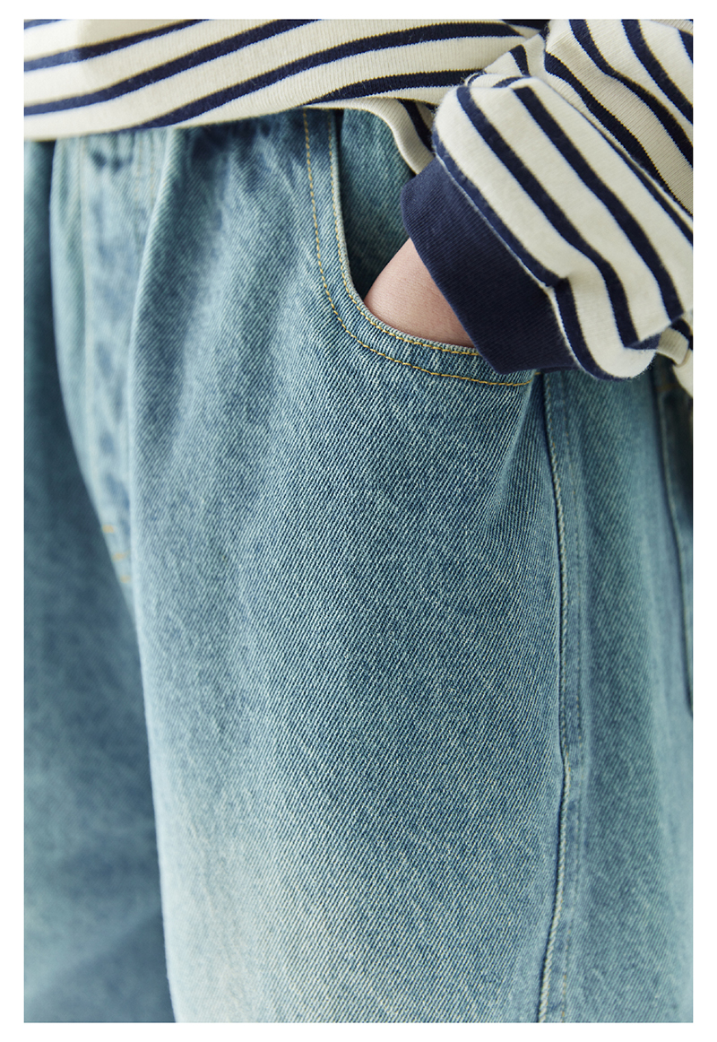 棵初2024秋季新品儿童分割造型牛仔裤亲子装茧型慵懒宽松百搭长裤