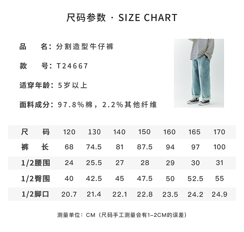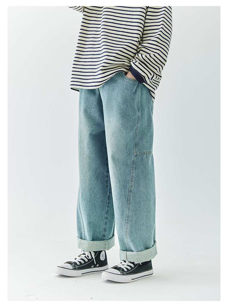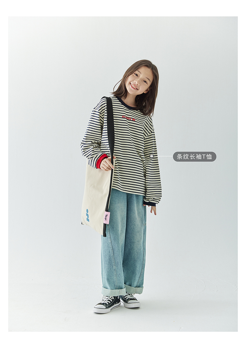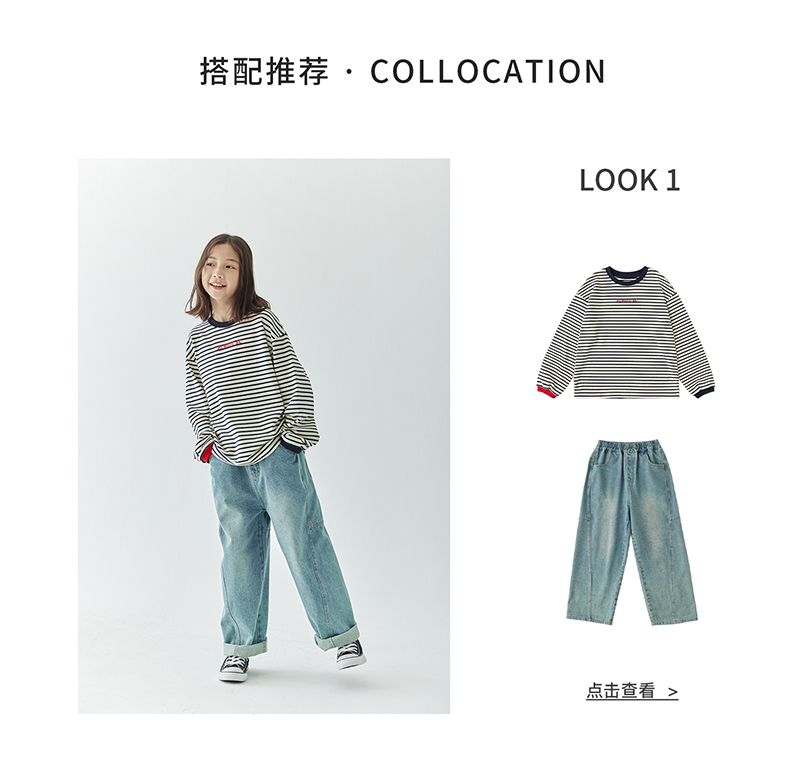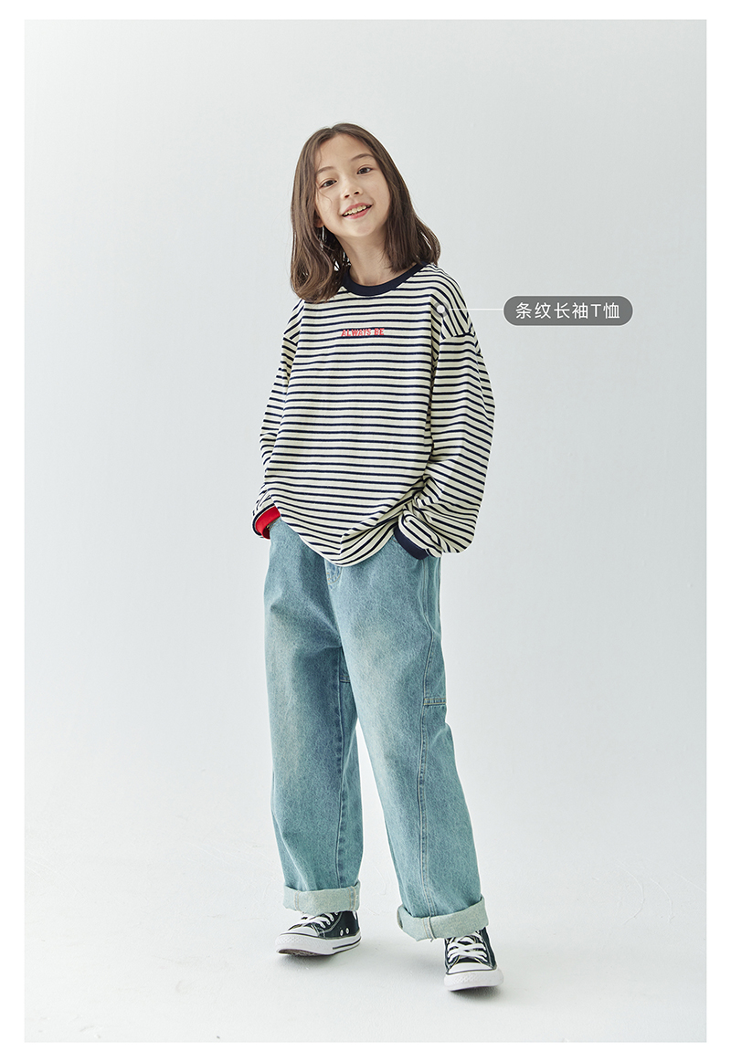 棵初2024秋季新品儿童分割造型牛仔裤亲子装茧型慵懒宽松百搭长裤