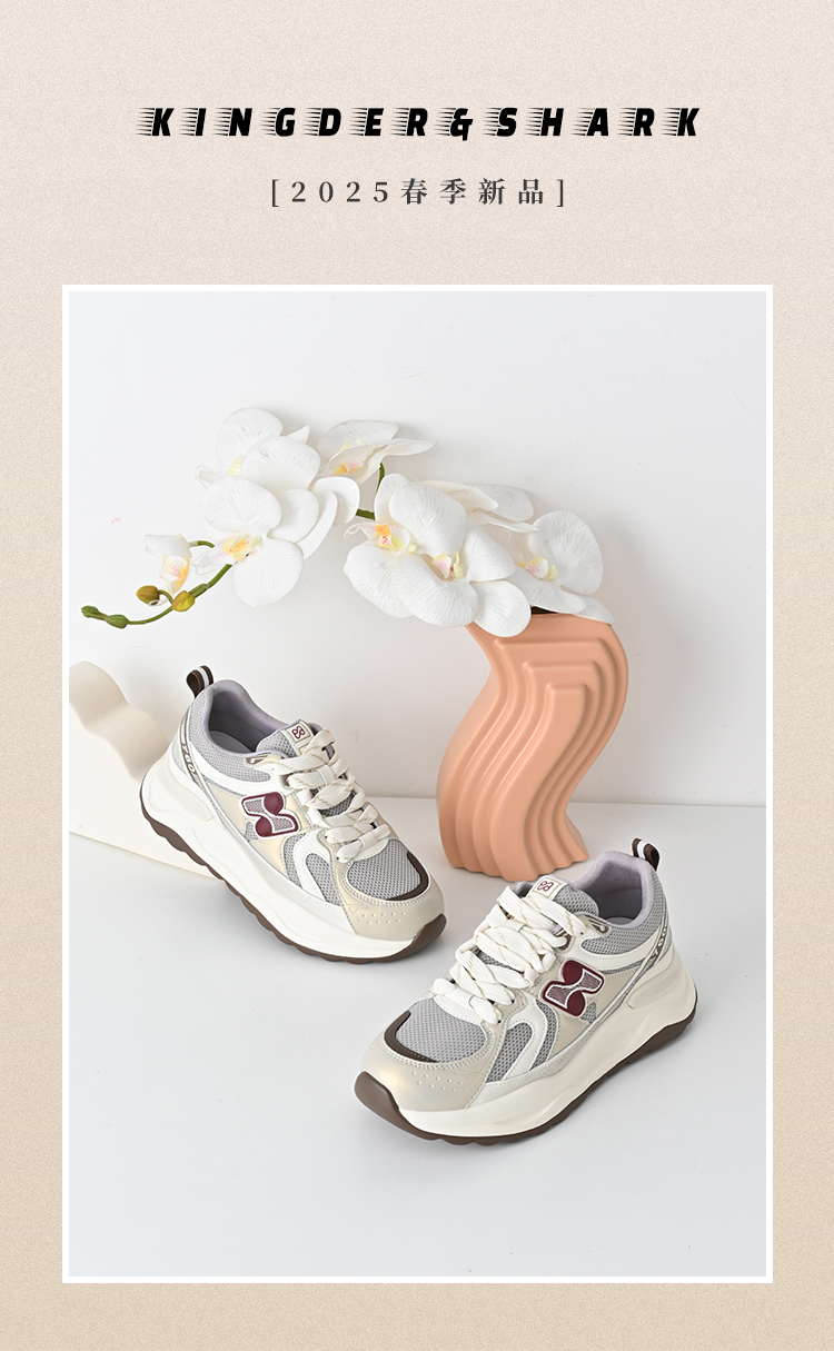 经典鲨2025年春季新款韩版时尚拼色系带跑步运动休闲鞋子女KW219-517021