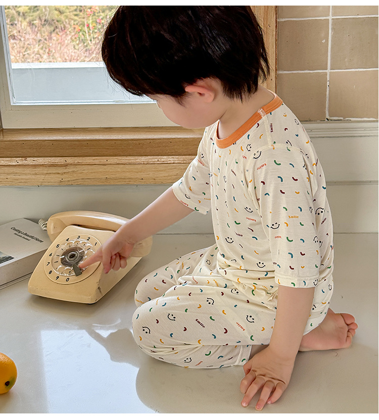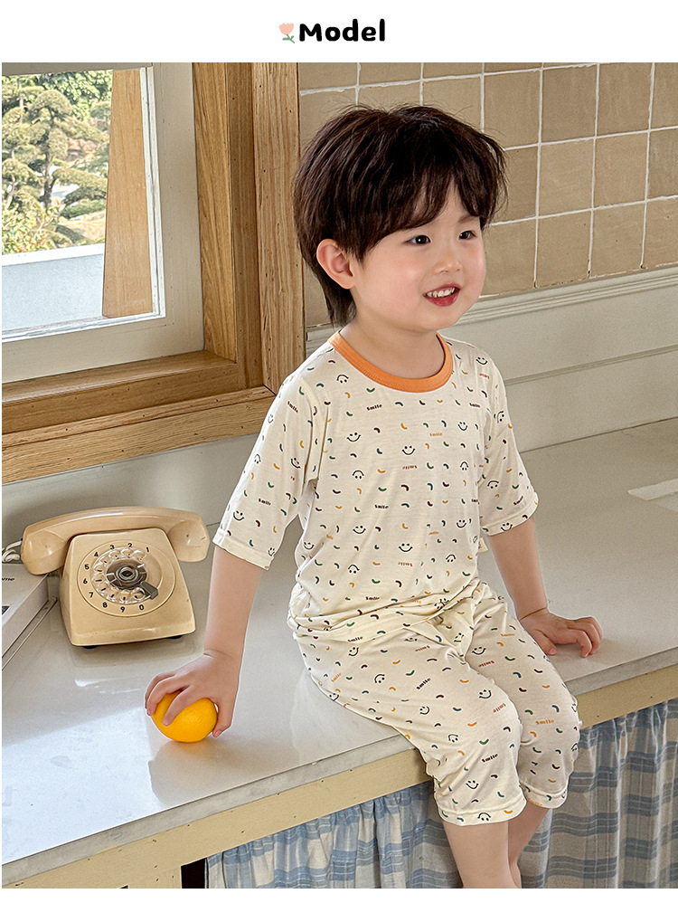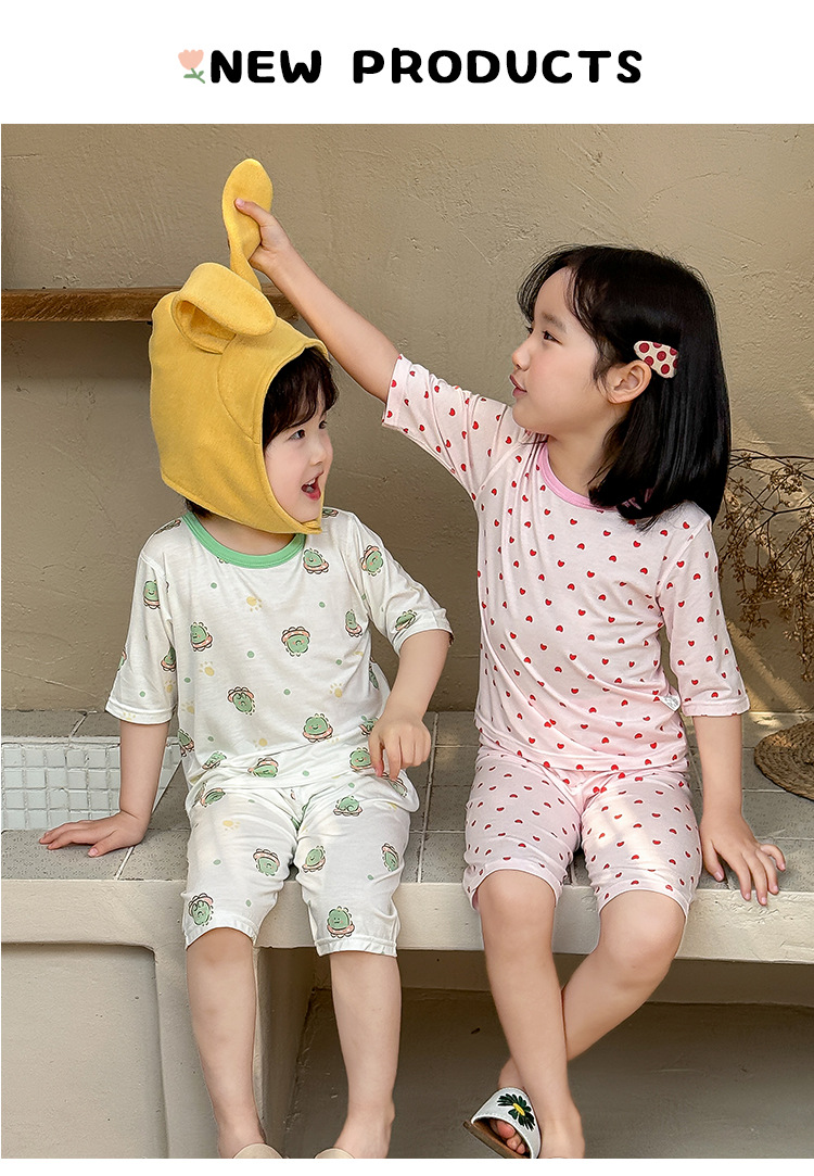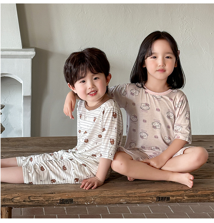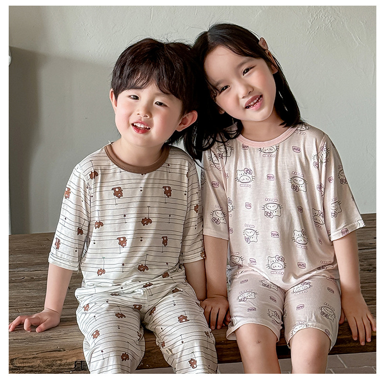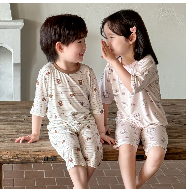 【a类新款冰丝儿童睡衣】儿童睡衣男孩夏季薄款,天丝莱赛尔面料舒适柔软透气,2025新款冰丝a类七分袖套装女童宝宝空调服QQ