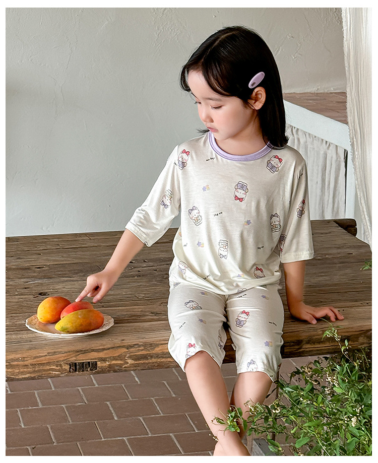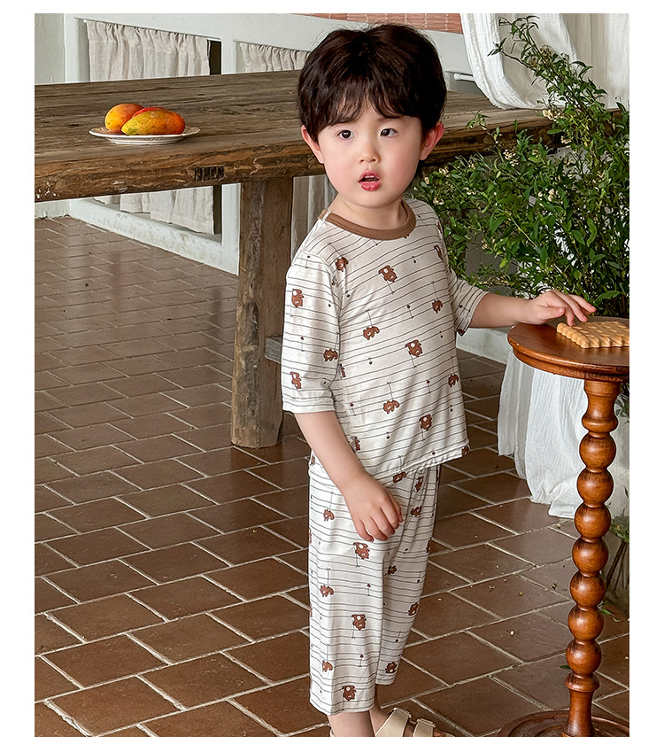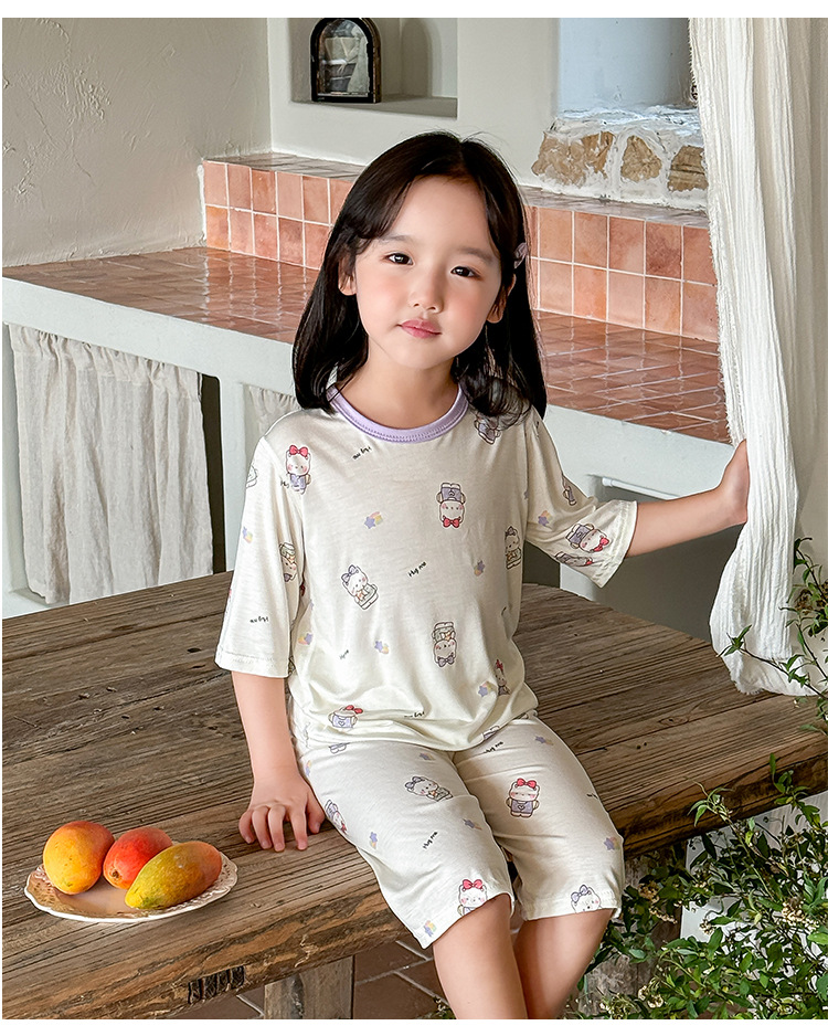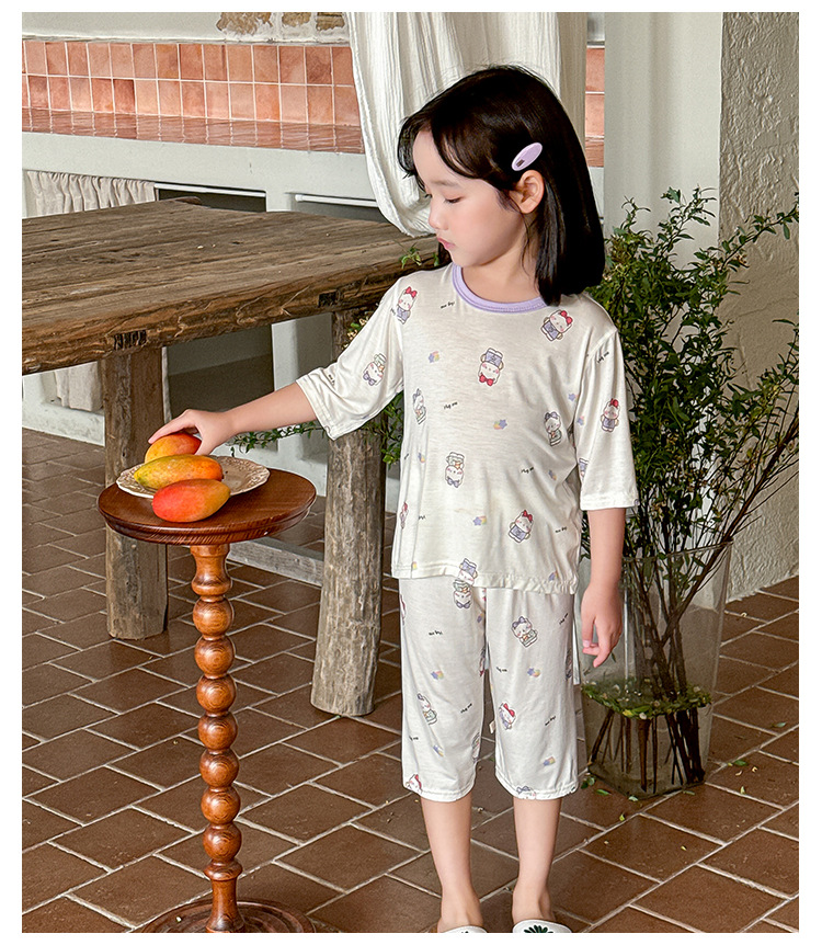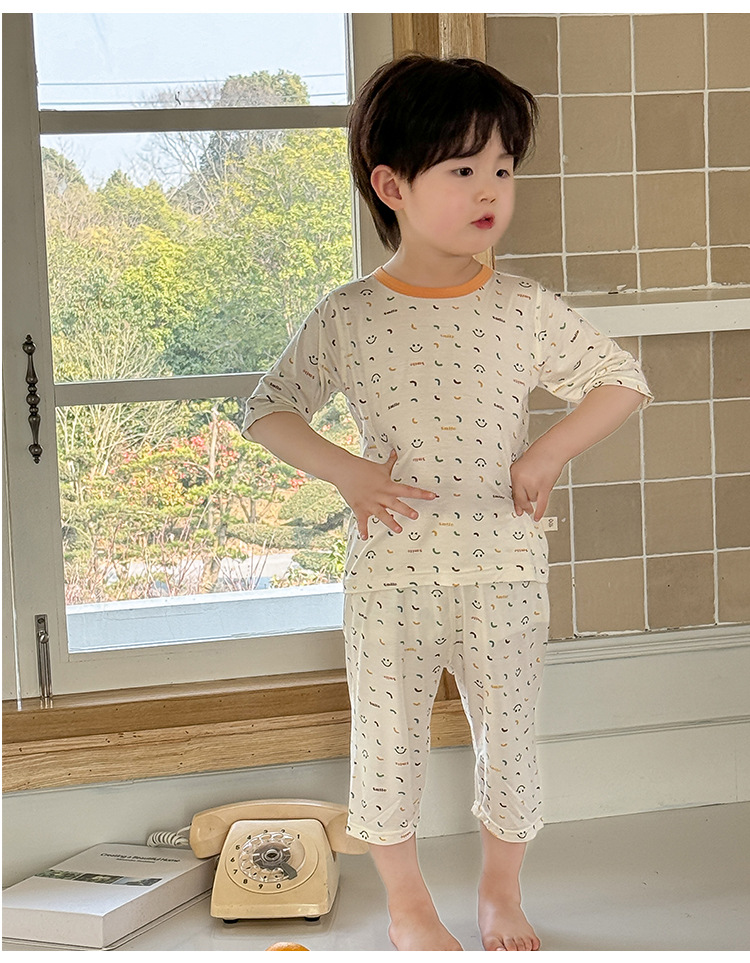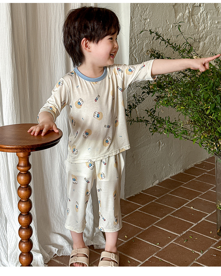 【a类新款冰丝儿童睡衣】儿童睡衣男孩夏季薄款,天丝莱赛尔面料舒适柔软透气,2025新款冰丝a类七分袖套装女童宝宝空调服QQ