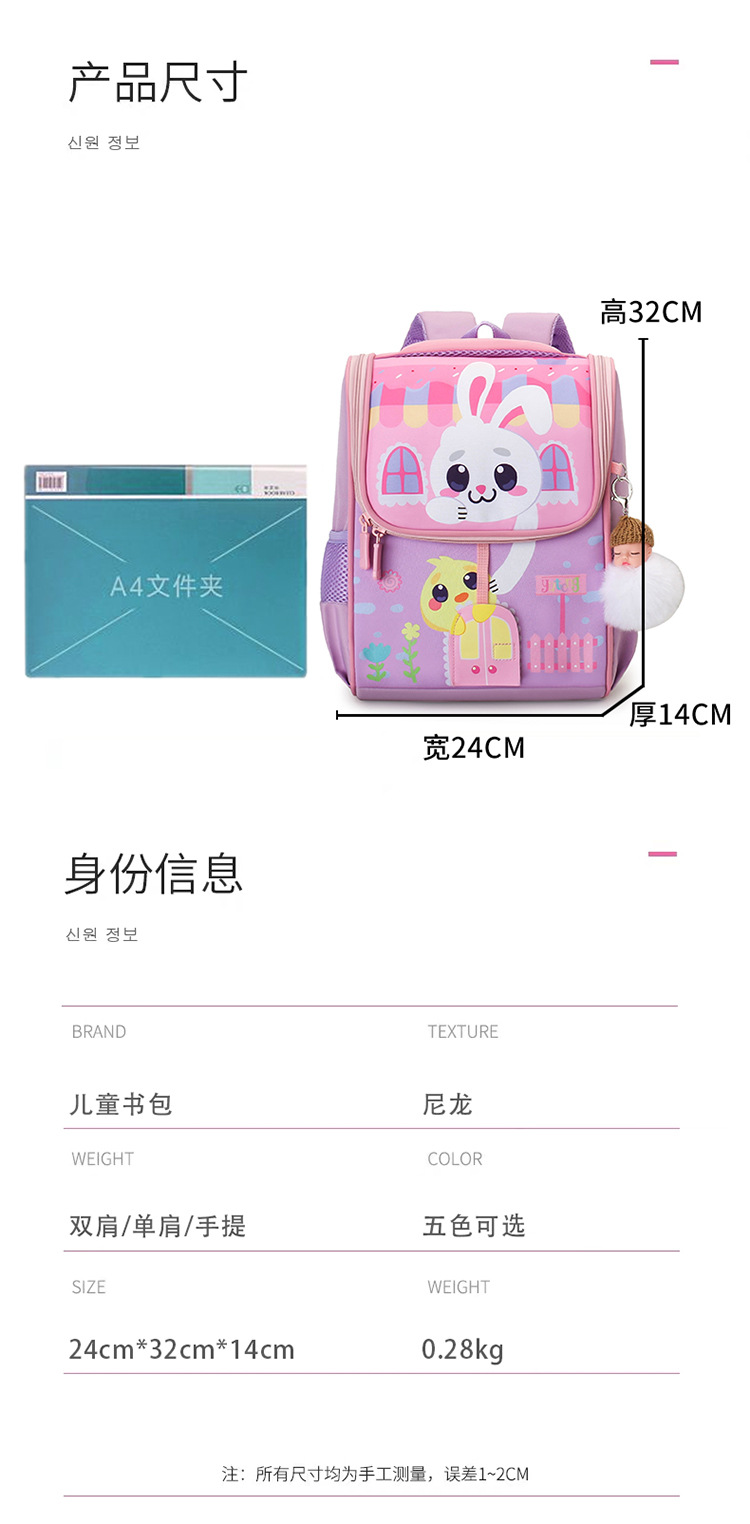 【萌趣相伴!幼儿园卡通小书包】呵护宝宝脊椎健康,致力轻盈减负,有效减轻背包负担,超轻小童大班女童3-5岁,幼儿园开学季书包3-5岁L