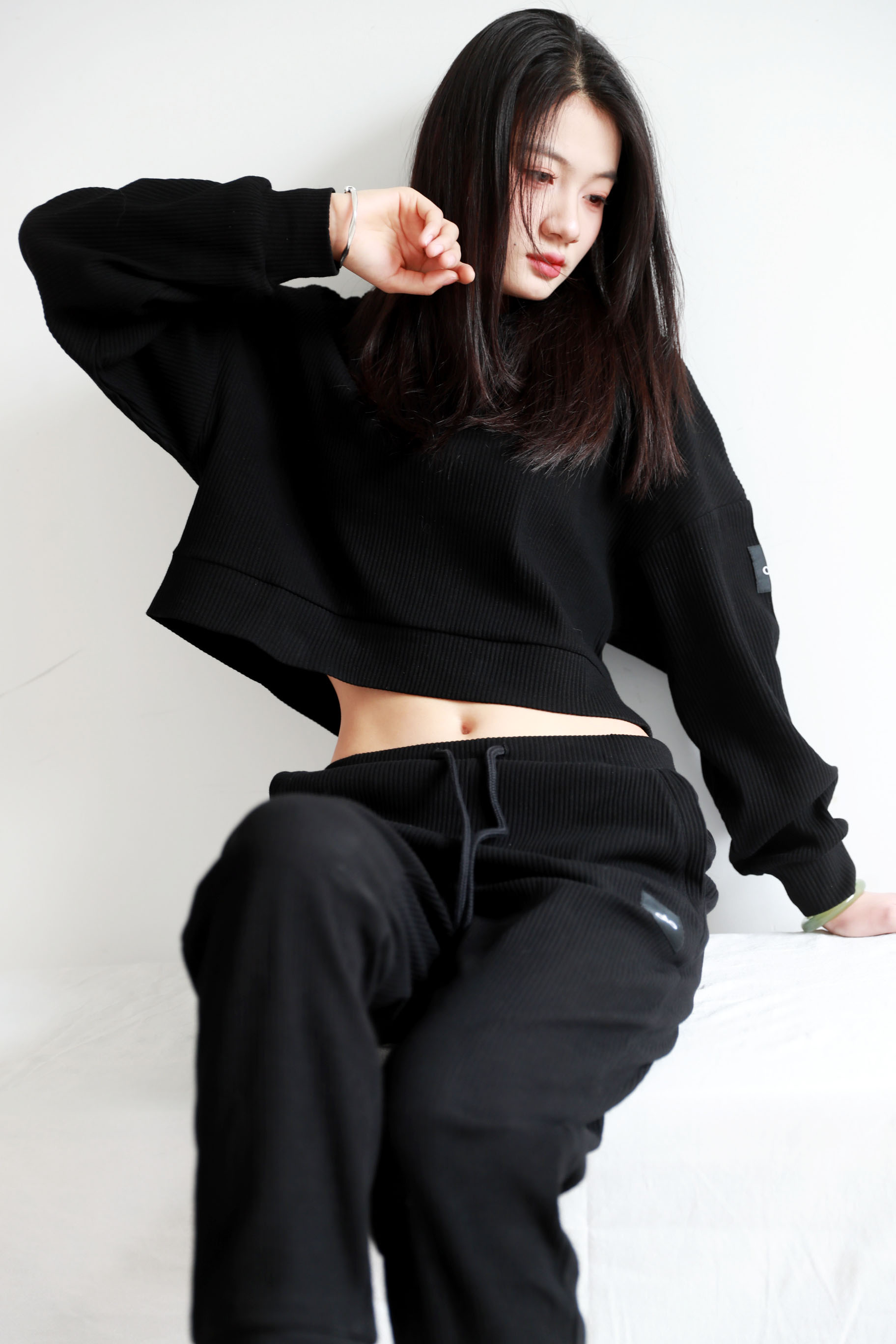 小方标瑜伽套,上衣+裤子一起。肌理感跑步运动瑜伽套装女E031558