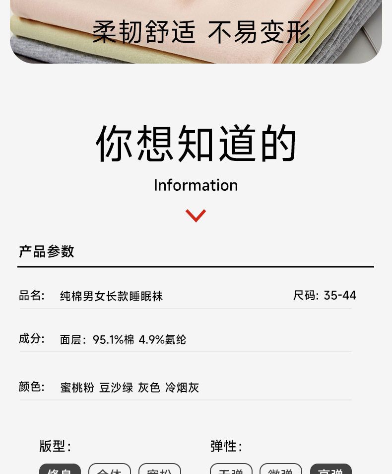 睡眠袜纯棉全棉睡觉穿的袜子女空调房袜套儿童夏季宽松长中筒袜男