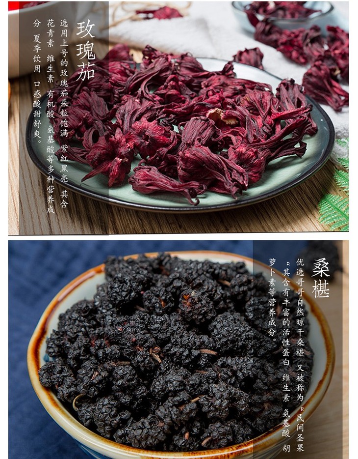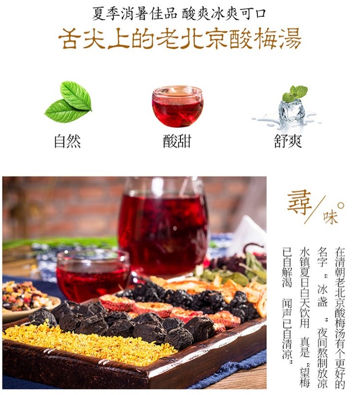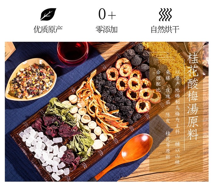 【配料】乌梅、山楂、玫瑰茄、桑葚、橘皮、甘草、薄荷叶、冰糖、桂花。