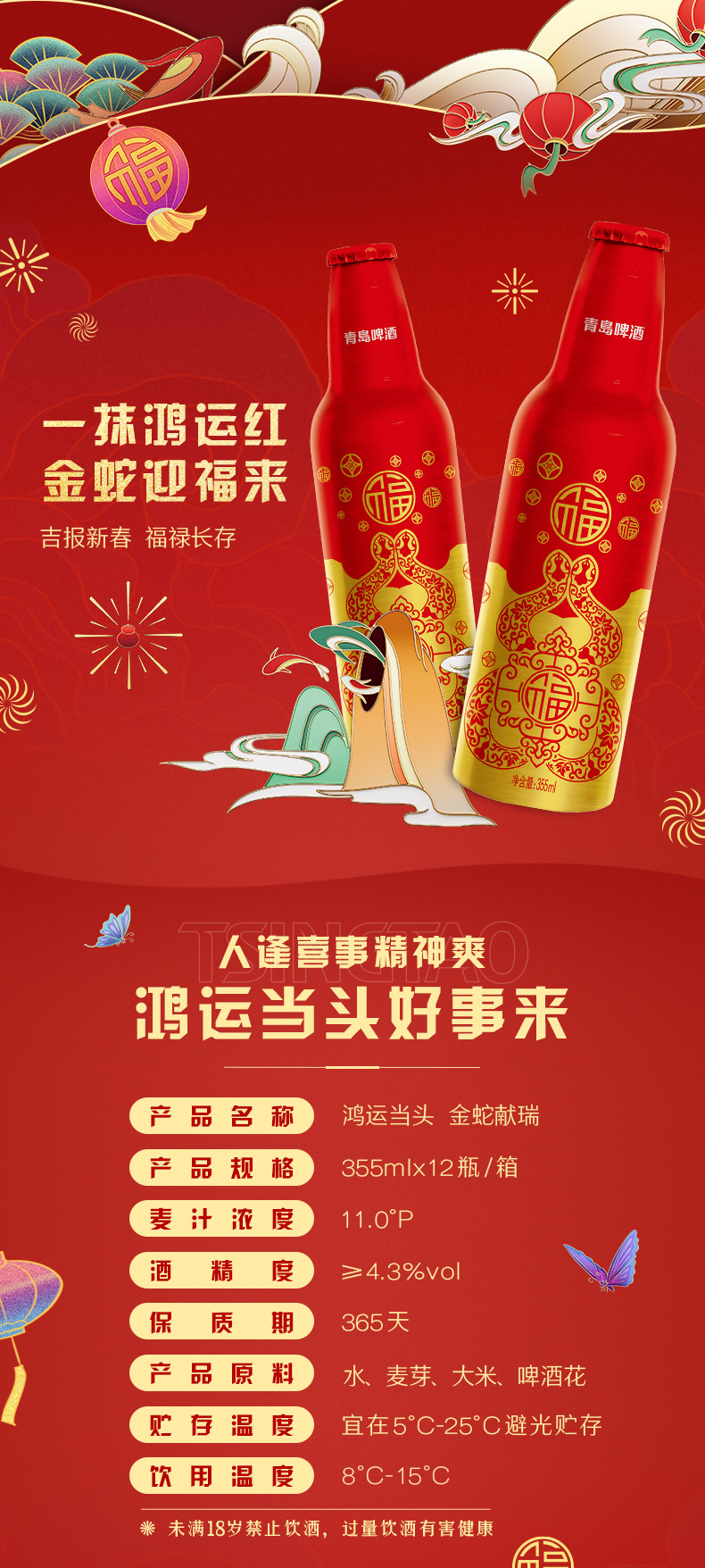 青岛啤酒鸿运当头 铝瓶限量版 355ml*12瓶 啤酒 青岛发货